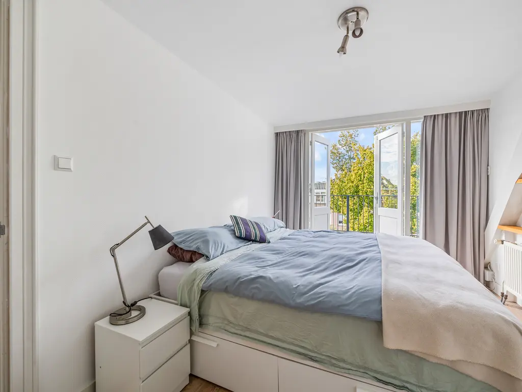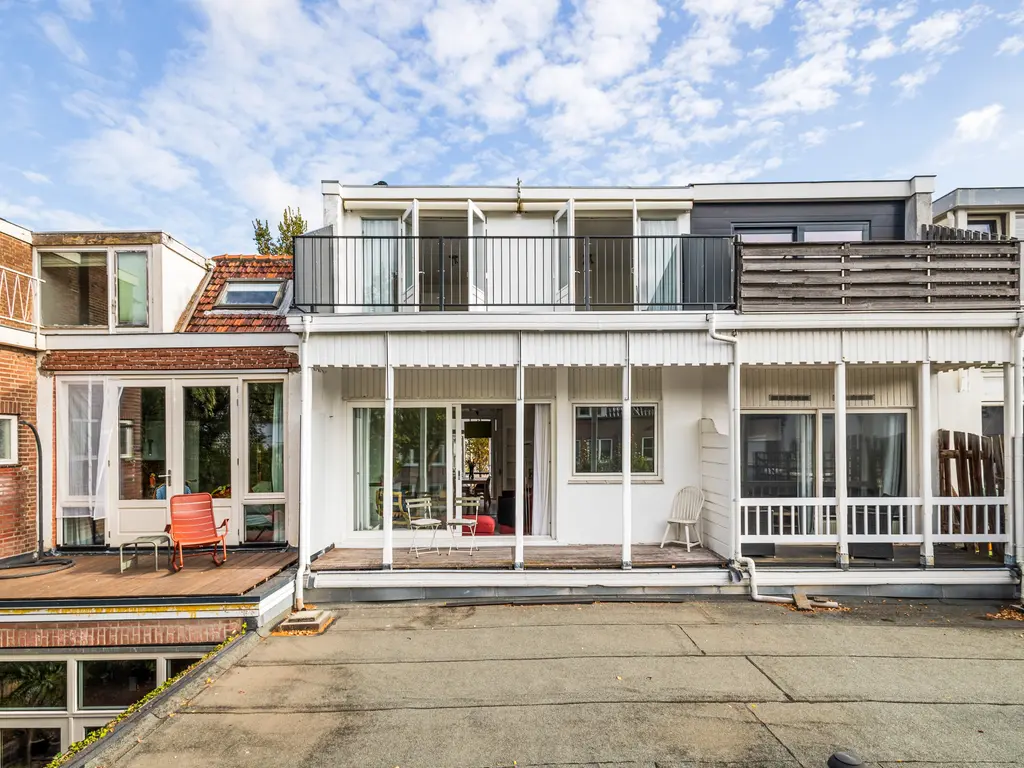 Centraal gelegen monumentaal dubbele bovenwoning met woonkamer en suite, drie slaapkamers, veranda, terras en separate berging