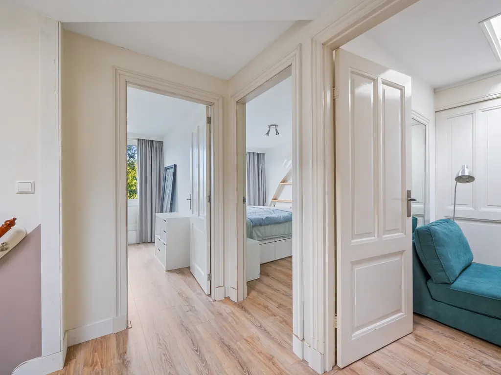 Vloeren eerste verdieping zijn van hout, tweede verdieping laminaat (drempelloos)