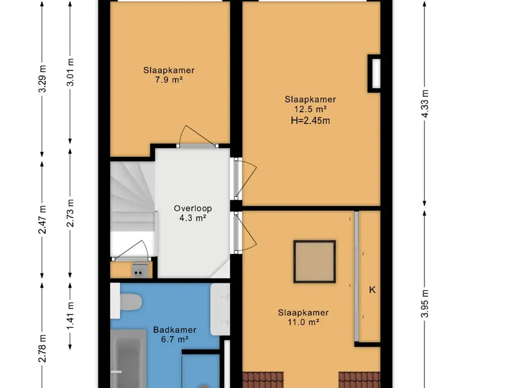 Slapen en wassen: indeling tweede verdieping