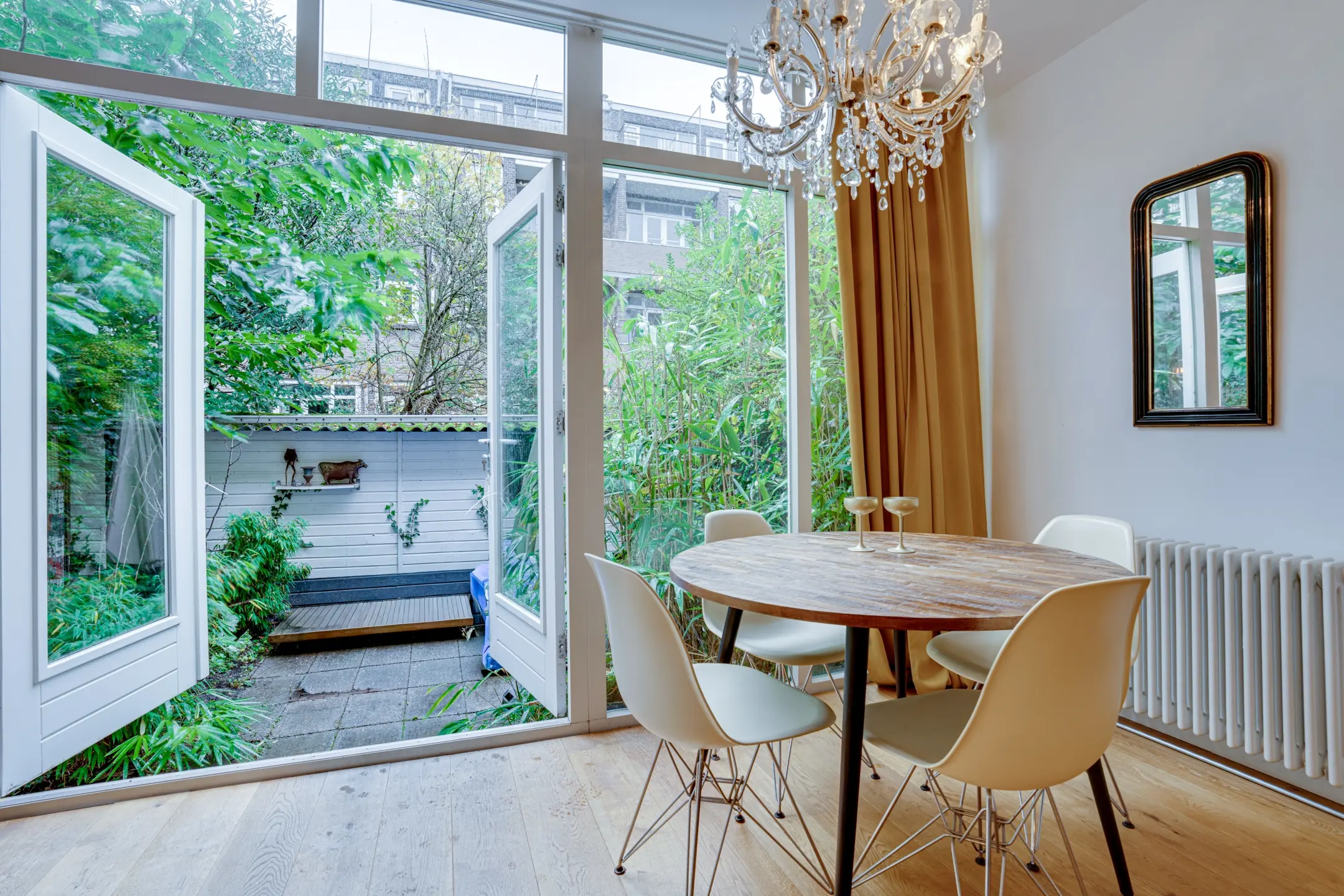 Charming two-bedroom ground-floor apartment with original details, a backyard, and a storage shed in a quiet, leafy street, ideal for those seeking ambiance and comfort.