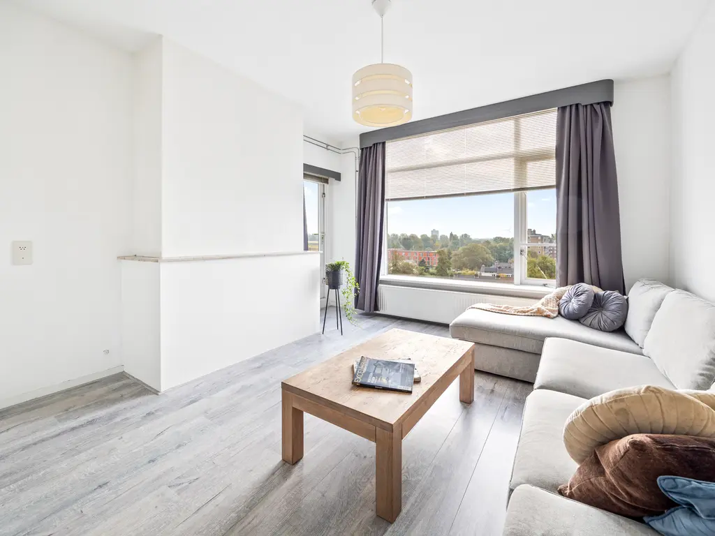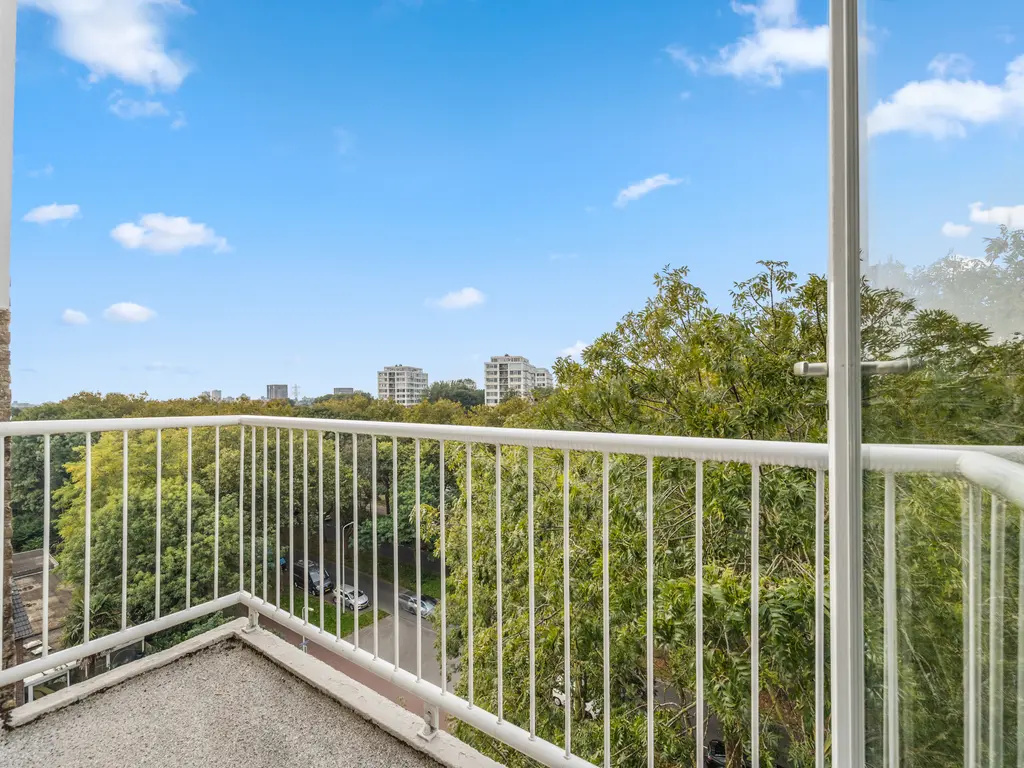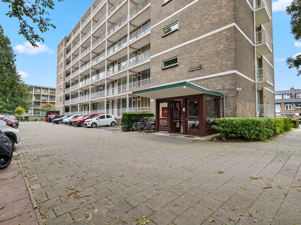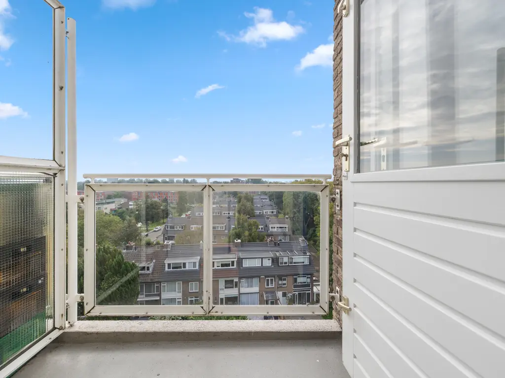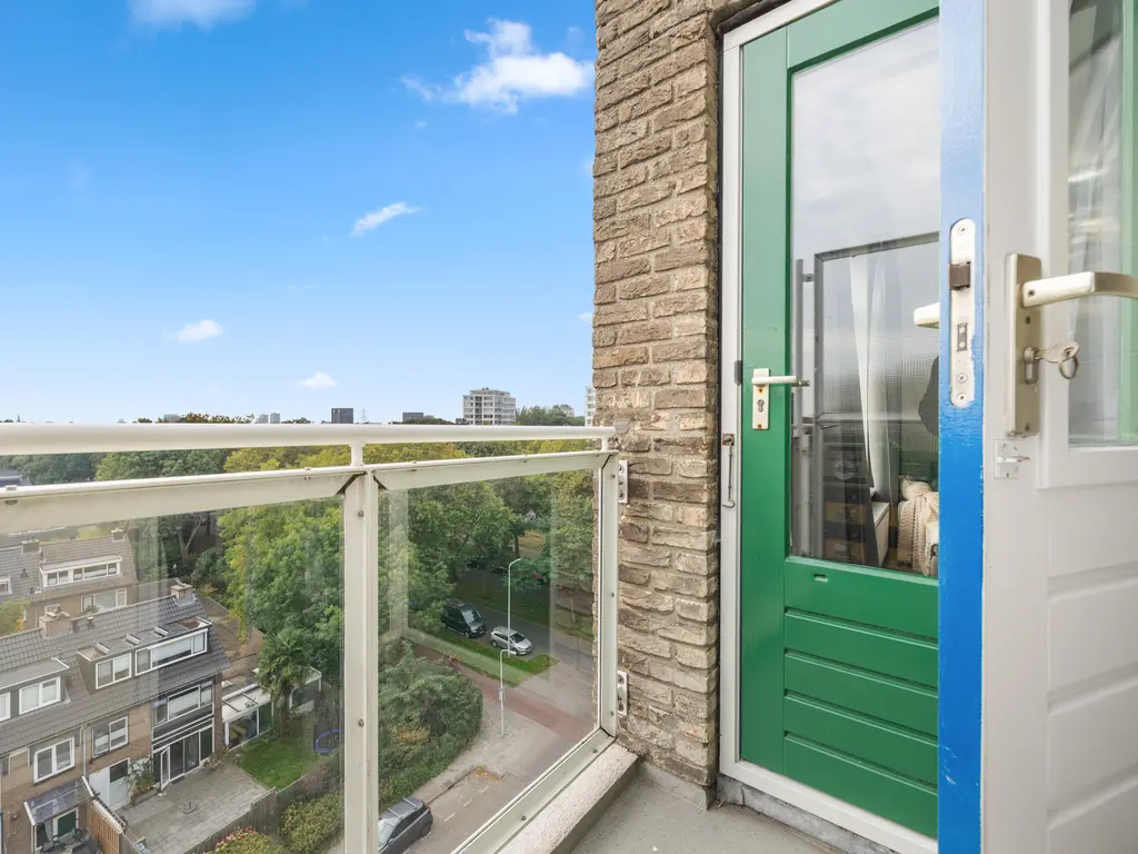 Dit knusse tweekamer appartement ligt op de 6e verdieping van een kleinschalig goed onderhouden appartementencomplex (1960) en heeft een woonoppervlakte van 49m². Vanwege de hoekligging beschikt het appartement over twee zonnige balkons met weids uitzicht op groen. De moderne keuken is 3 jaar oud, toilet en badkamer zijn dit jaar gerenoveerd. Parkeren kan op eigen (afgesloten) terrein.