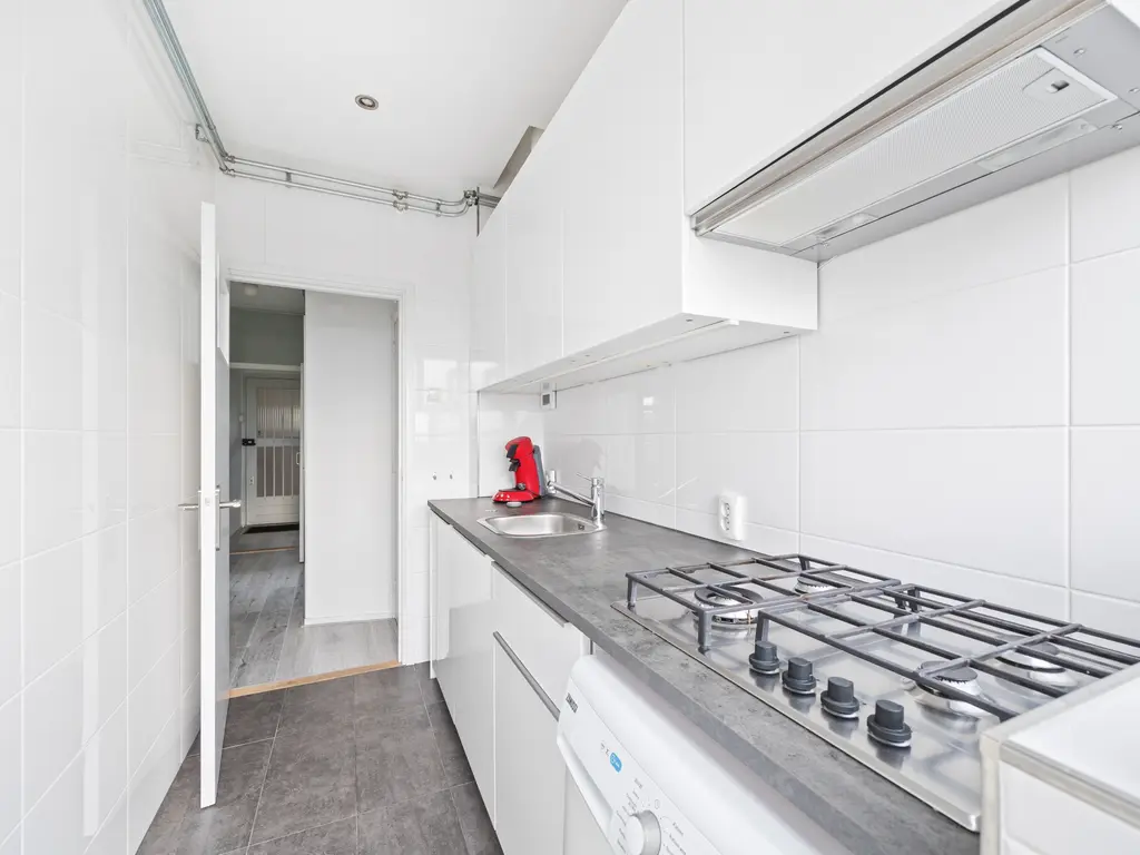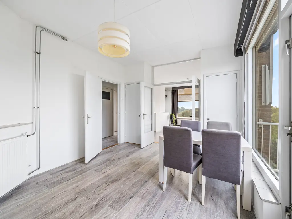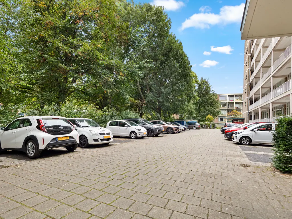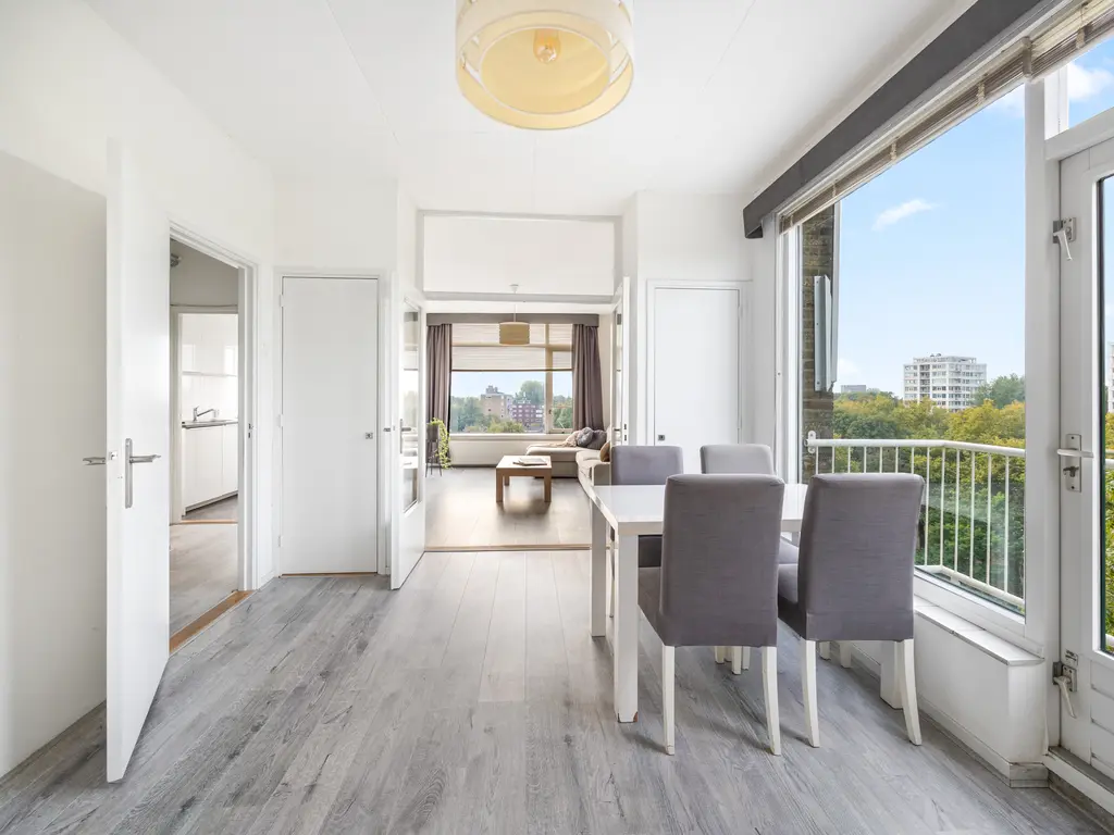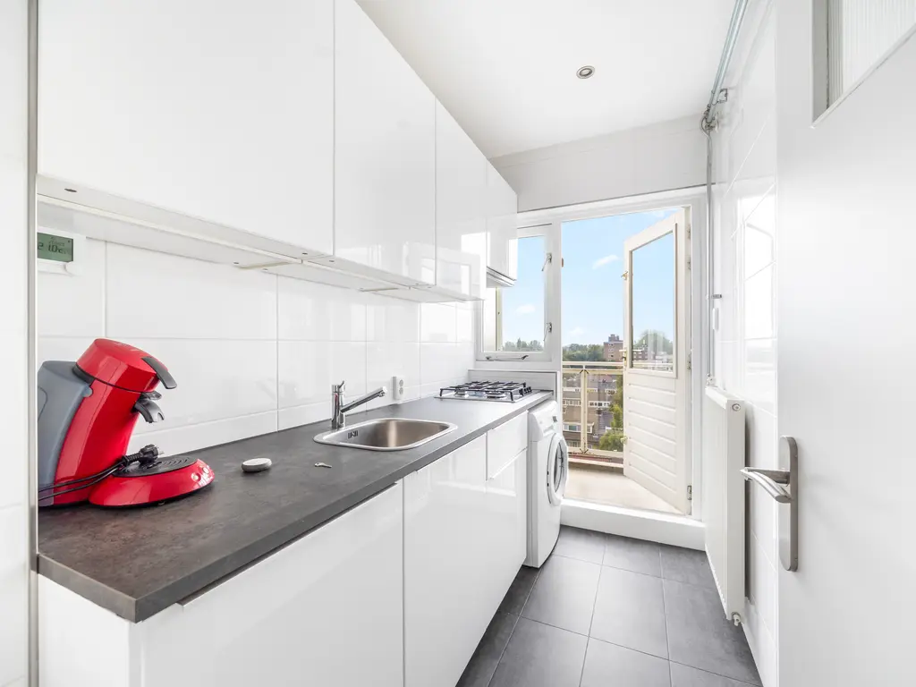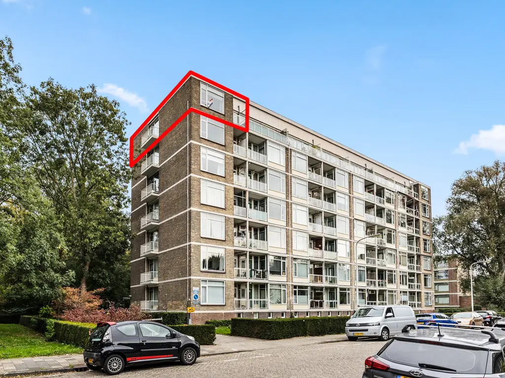 Dit knusse tweekamer appartement ligt op de 6e verdieping van een kleinschalig goed onderhouden appartementencomplex (1960) en heeft een woonoppervlakte van 49m². Vanwege de hoekligging beschikt het appartement over twee zonnige balkons met weids uitzicht op groen. De moderne keuken is 3 jaar oud, toilet en badkamer zijn dit jaar gerenoveerd. Parkeren kan op eigen (afgesloten) terrein.