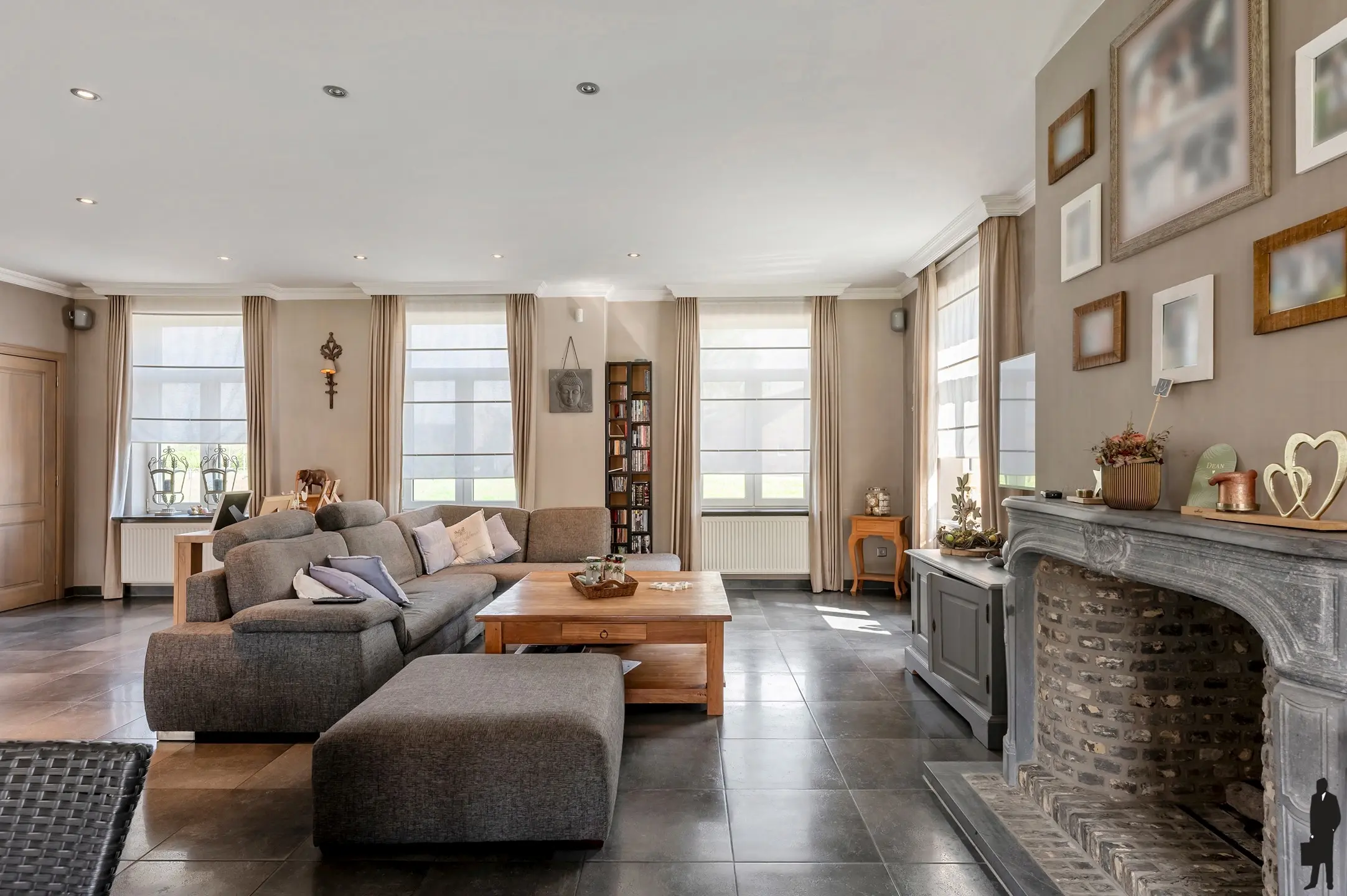 Op het gelijkvloers bevindt zich een zeer ruime (ca. 60 m²) en lichtrijke woonkamer met zitgedeelte en eethoek.