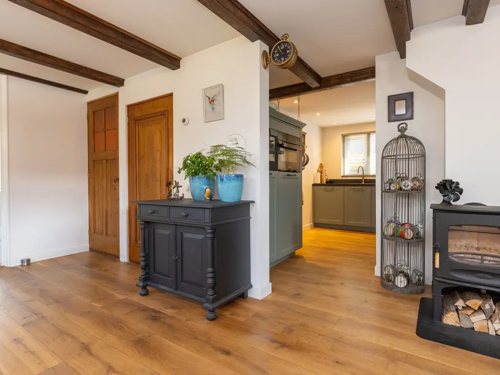 U betreedt de woning via de poort van de achtertuin. Direct bij binnenkomst in de tuin ervaart u de rust en de ruimte. Hier hoort u de vogels nog fluiten! Grenzend aan de tuin treft u aan de ene zijde het woonhuis en aan de andere zijde het multifunctionele bijgebouw. De huidige eigenaren hebben de woning en bijgebouw met respect voor de oude ziel van het woonhuis volledig onder handen genomen. Zo zijn de keuken en badkamer beide van 2023! Er liggen 10 zonnepanelen, alle binnenwanden zijn vervangen en isolatie en elektra is vernieuwd.