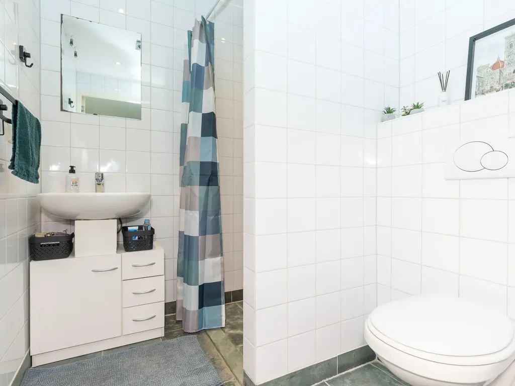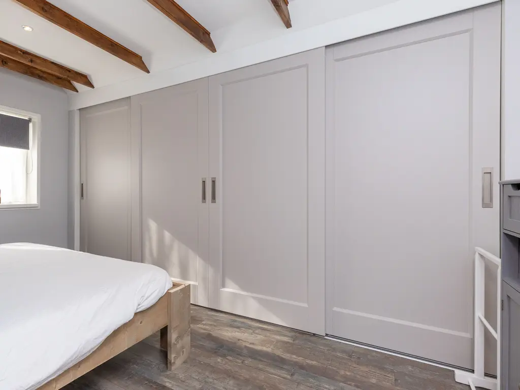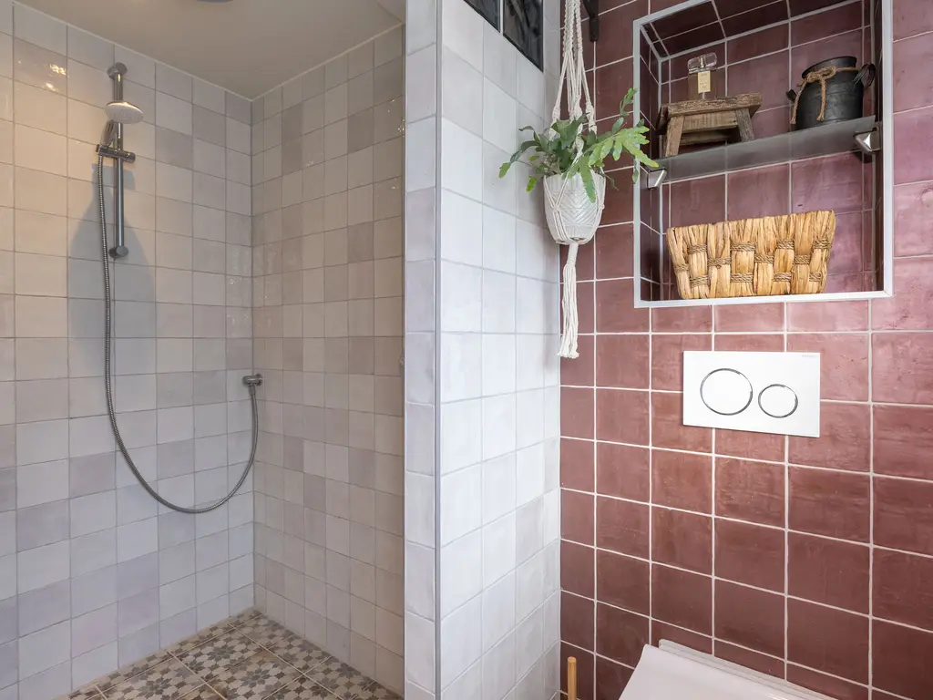 De nieuwe badkamer is voorzien van vloerverwarming, een ruime inloopdouche, een toilet en een dubbele wastafel en bevind zich tevens op de begane grond. Op de eerste verdieping van het woonhuis treft u twee slaapkamers, veel opbergruimte en een tweede toilet.