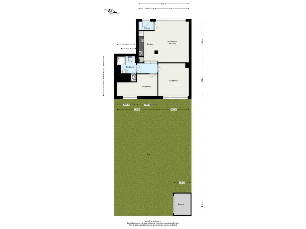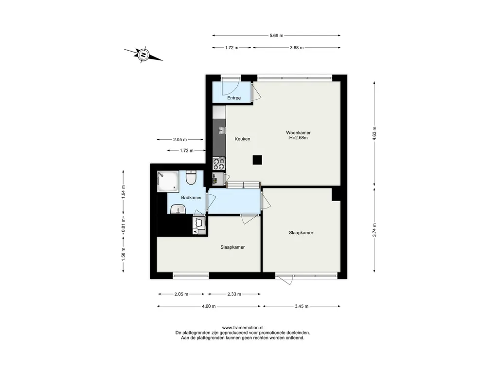 -Circa 57 m2 woonoppervlak