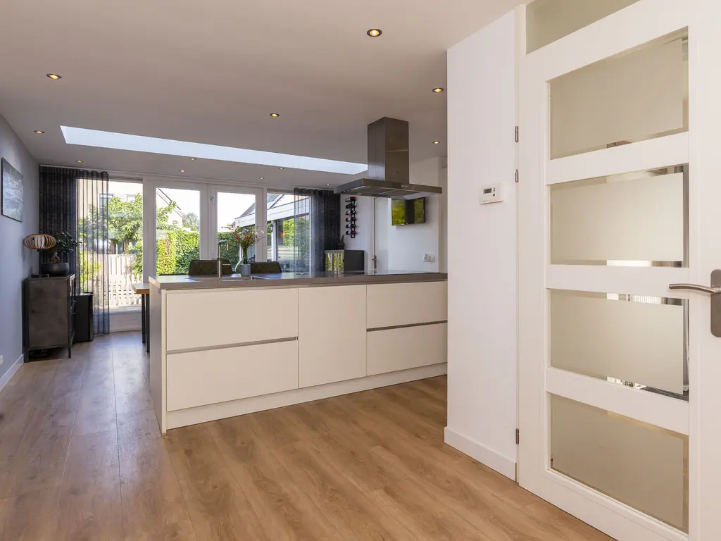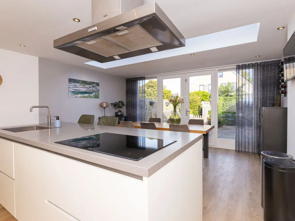 In 2018 is de woning aan de achterzijde uitgebouwd, waardoor een royale leefruimte is ontstaan. De moderne open keuken, eveneens vernieuwd in 2018, is voorzien van een kook- en spoeleiland en diverse inbouwapparatuur. Dankzij de dubbele tuindeuren loopt u zo de tuin in, waar u optimaal kunt genieten van de zon en het uitzicht op het water. De begane grond is afgewerkt met een stijlvolle pvc vloer en voorzien van vloerverwarming.