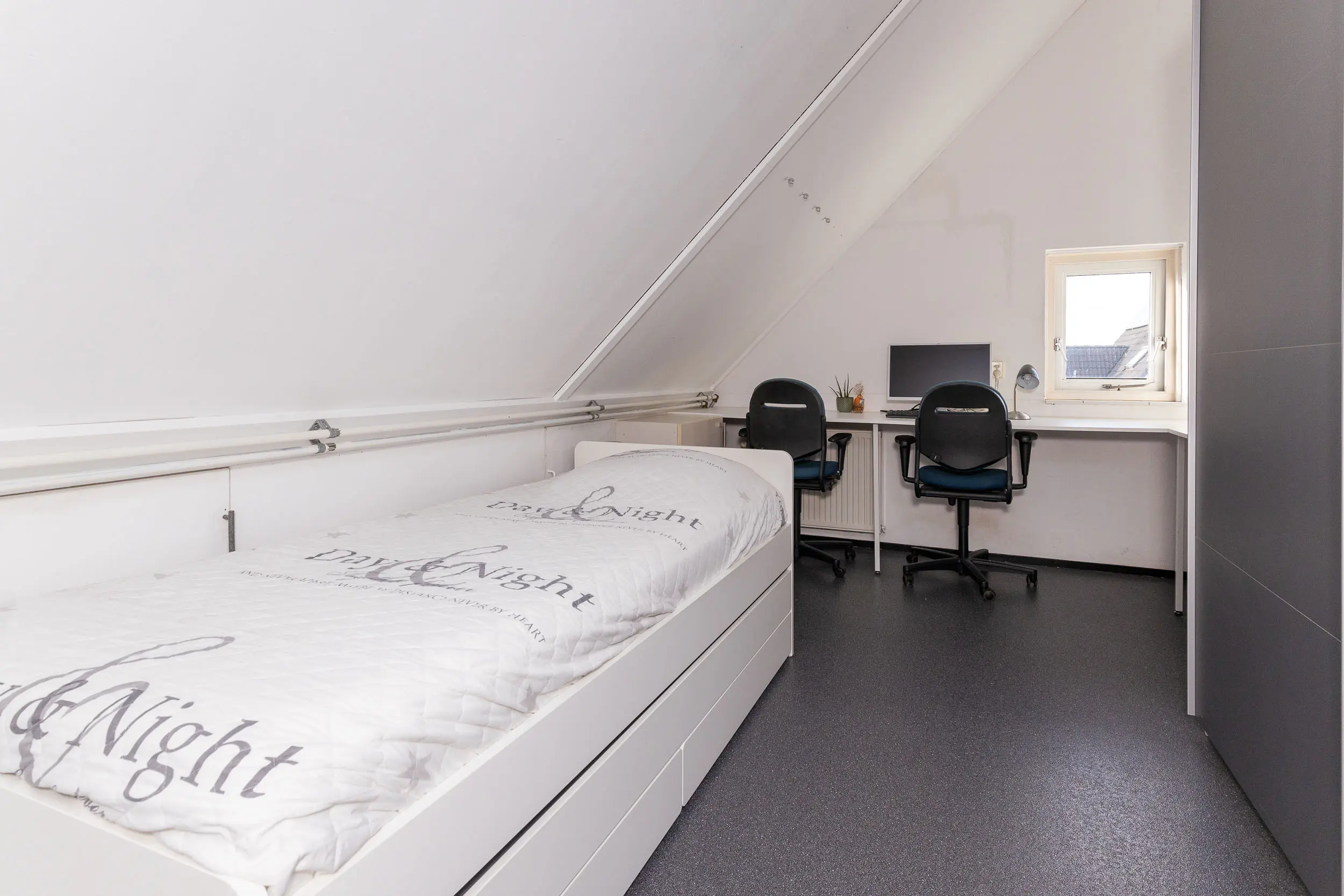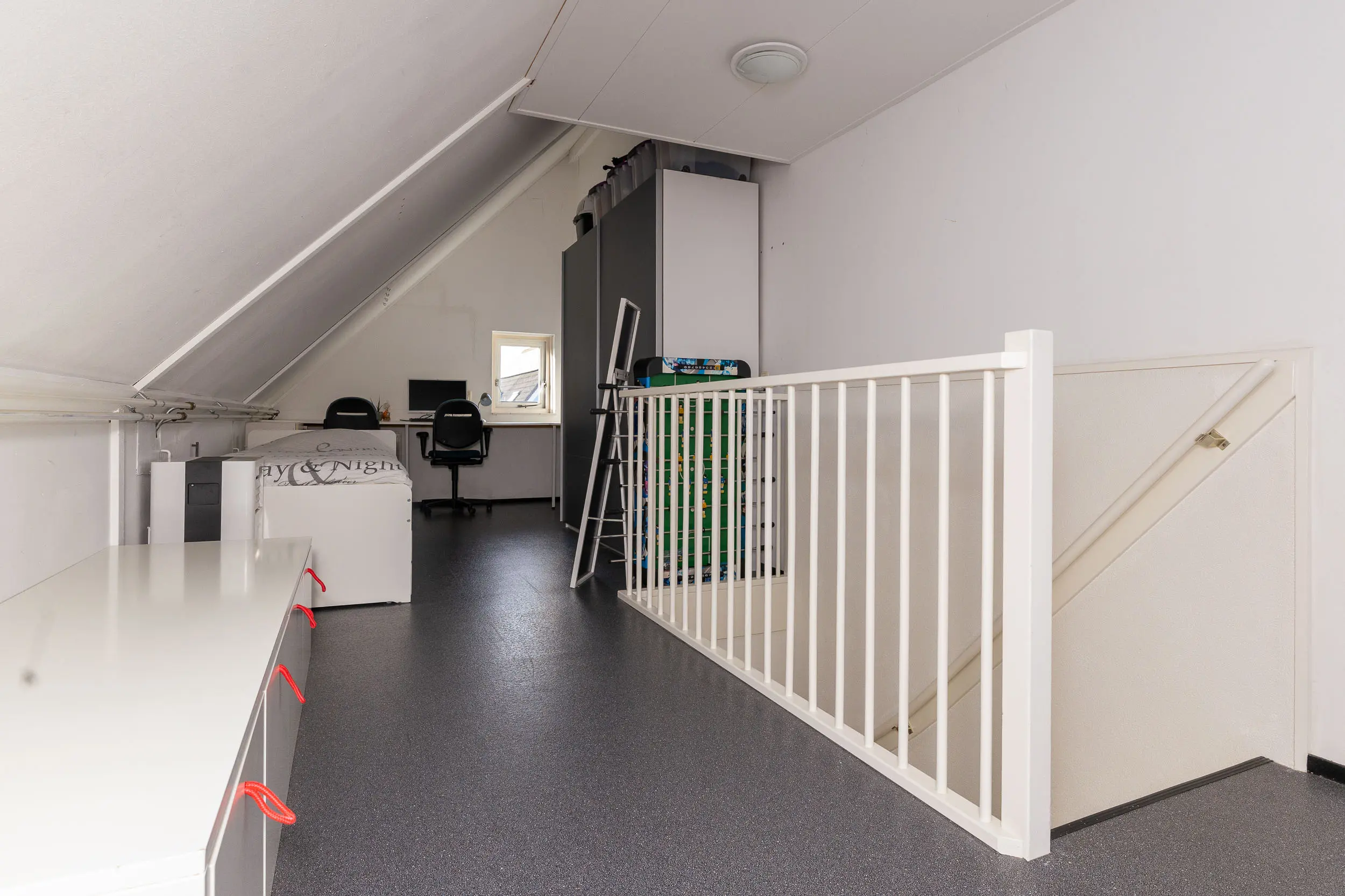 Via een vaste trap bereikt u de zolderverdieping met de opstelling van de cv-ketel en een vierde slaapkamer/werkkamer.