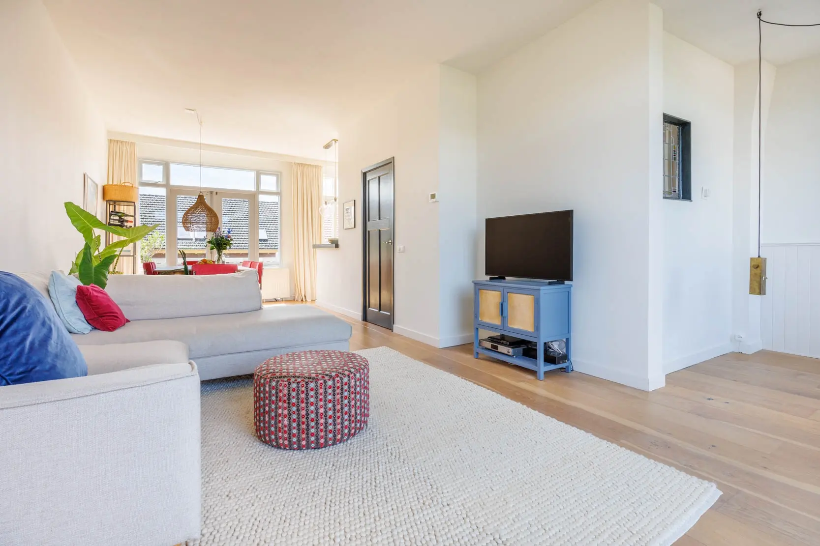 Beautiful and authentic upstairs apartment located in the charming Tuinstadwijk, featuring an atmospheric roof terrace at the rear and a lovely balcony at the front. This attractive home offers three (bed)rooms, a spacious living/dining room with French doors opening onto a generous L-shaped roof terrace, and a modern kitchen and bathroom. The large windows provide plenty of natural light and add to the home’s charm. The property is move-in ready and well-maintained. In short, a wonderful home in a beautiful location!