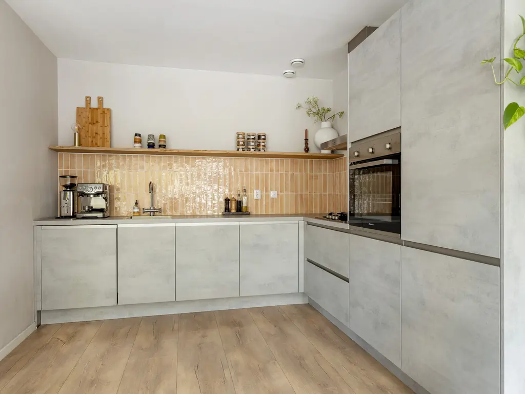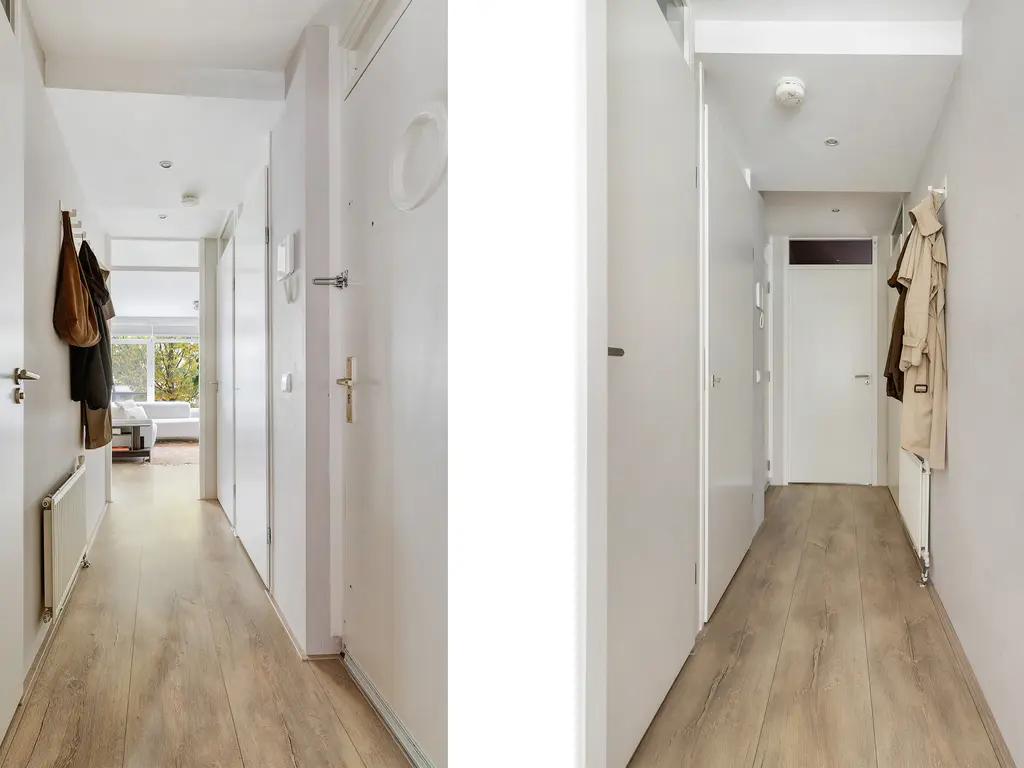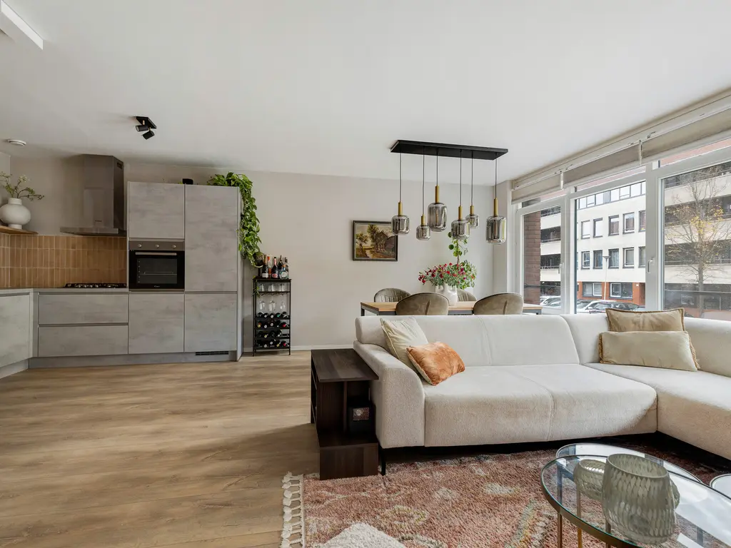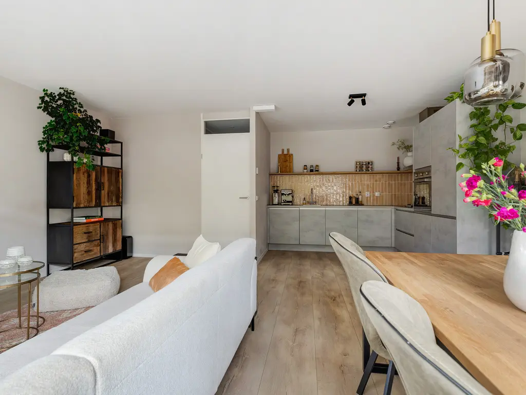 Het gehele appartement is voorzien van een doorlopende, moderne laminaatvloer, wat het geheel een strak en ruimtelijk karakter geeft.