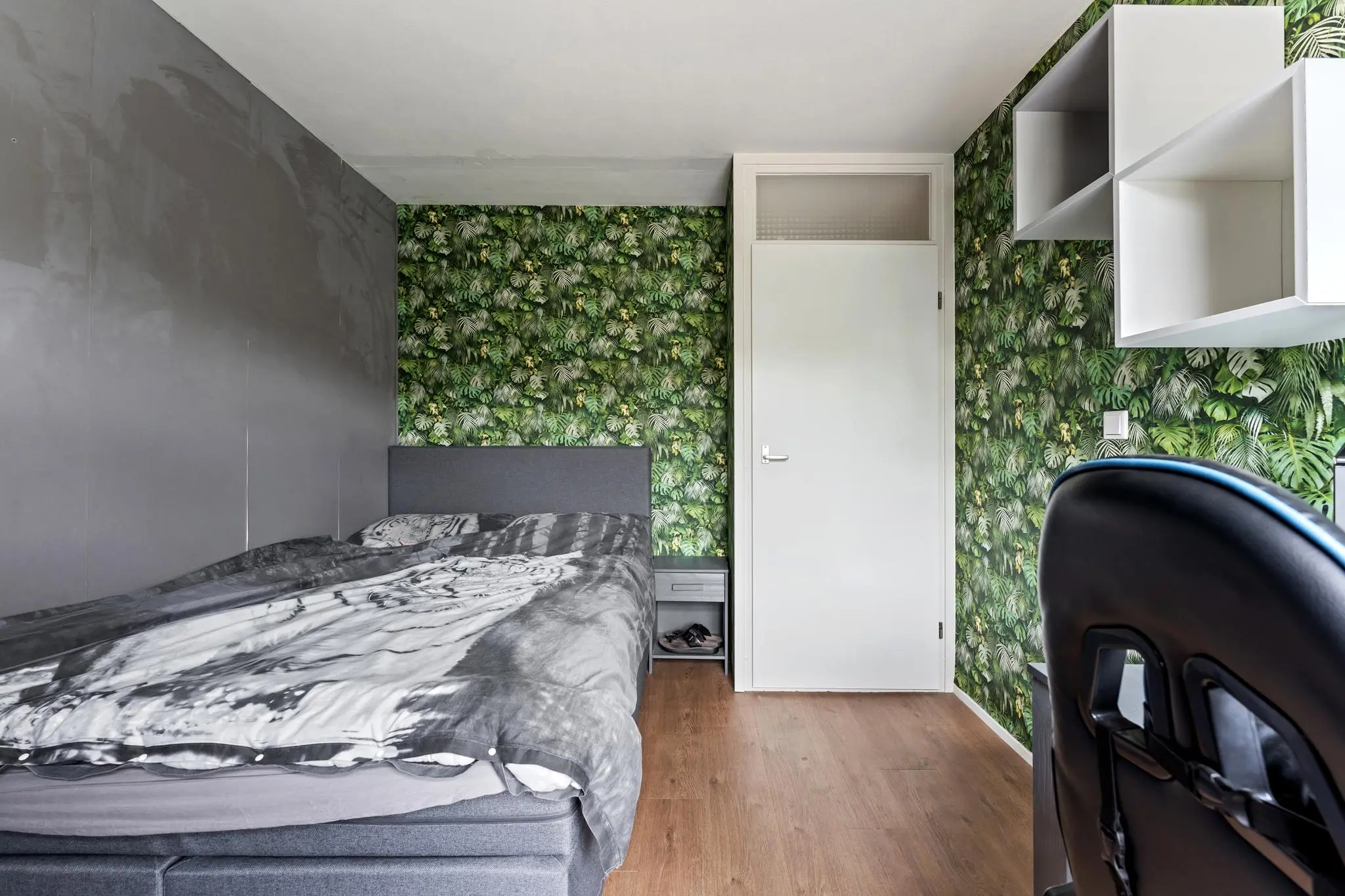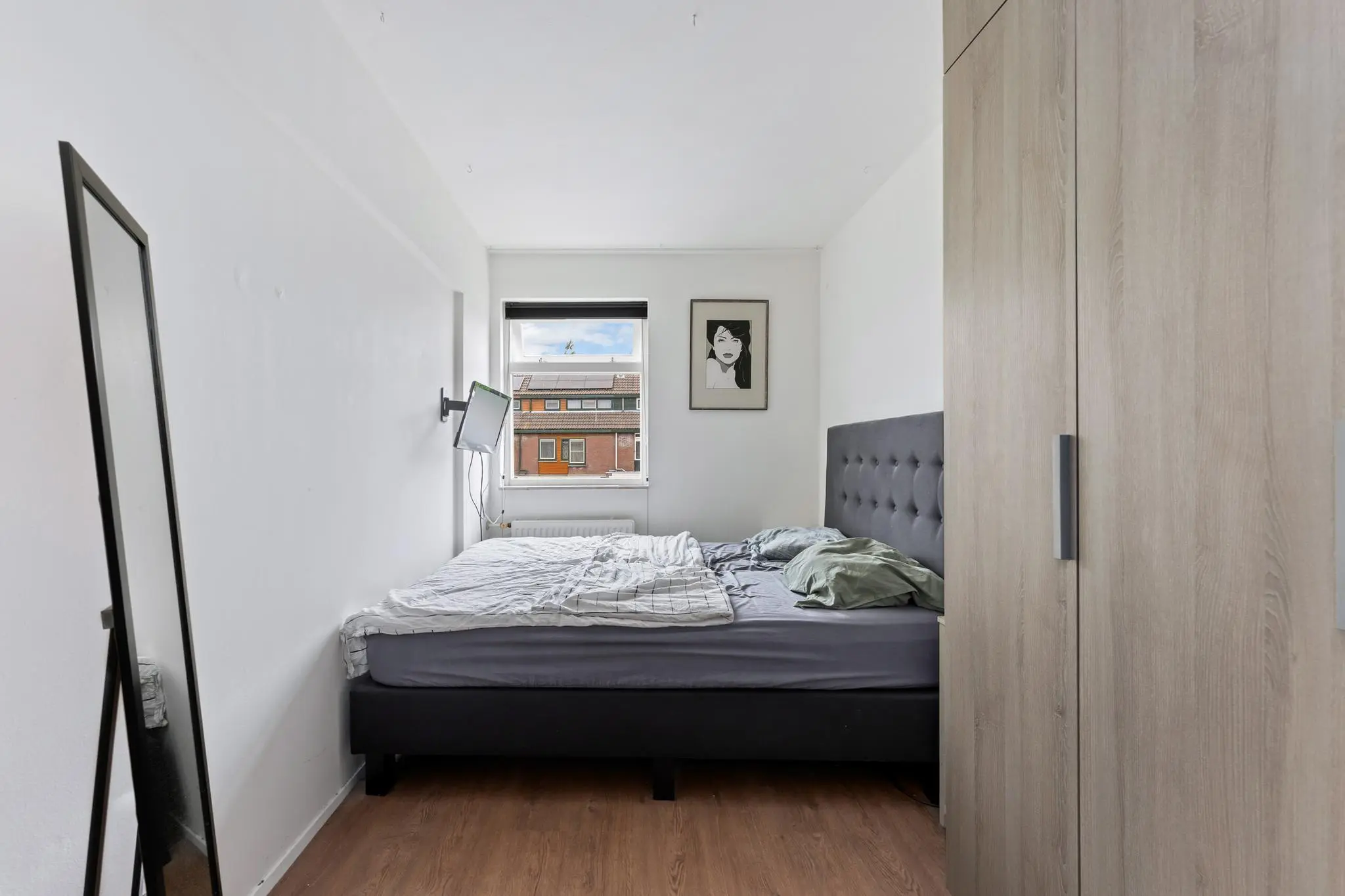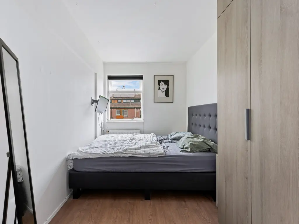 De zolderverdieping is eveneens functioneel ingericht. Op de voorzolder vind je de aansluitingen voor de wasmachine en droger, de opstelplaats van de cv-ketel en de unit voor mechanische ventilatie. Tot slot is er een vierde slaapkamer met vaste kast voor extra opbergruimte, ideaal als kinderkamer, logeerkamer of werkkamer.