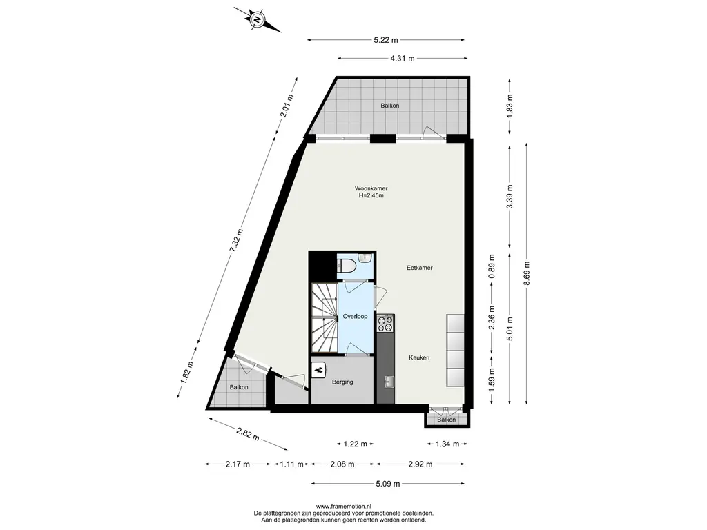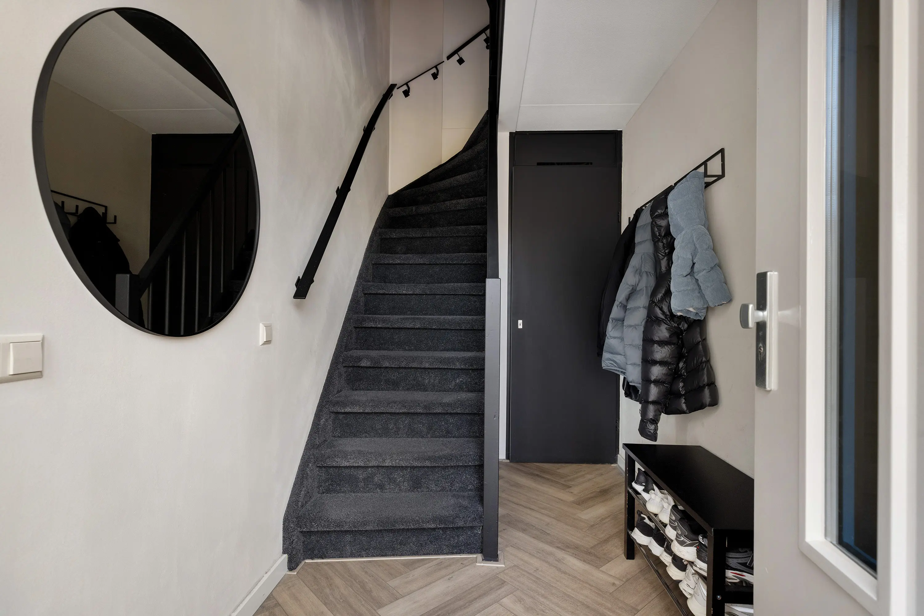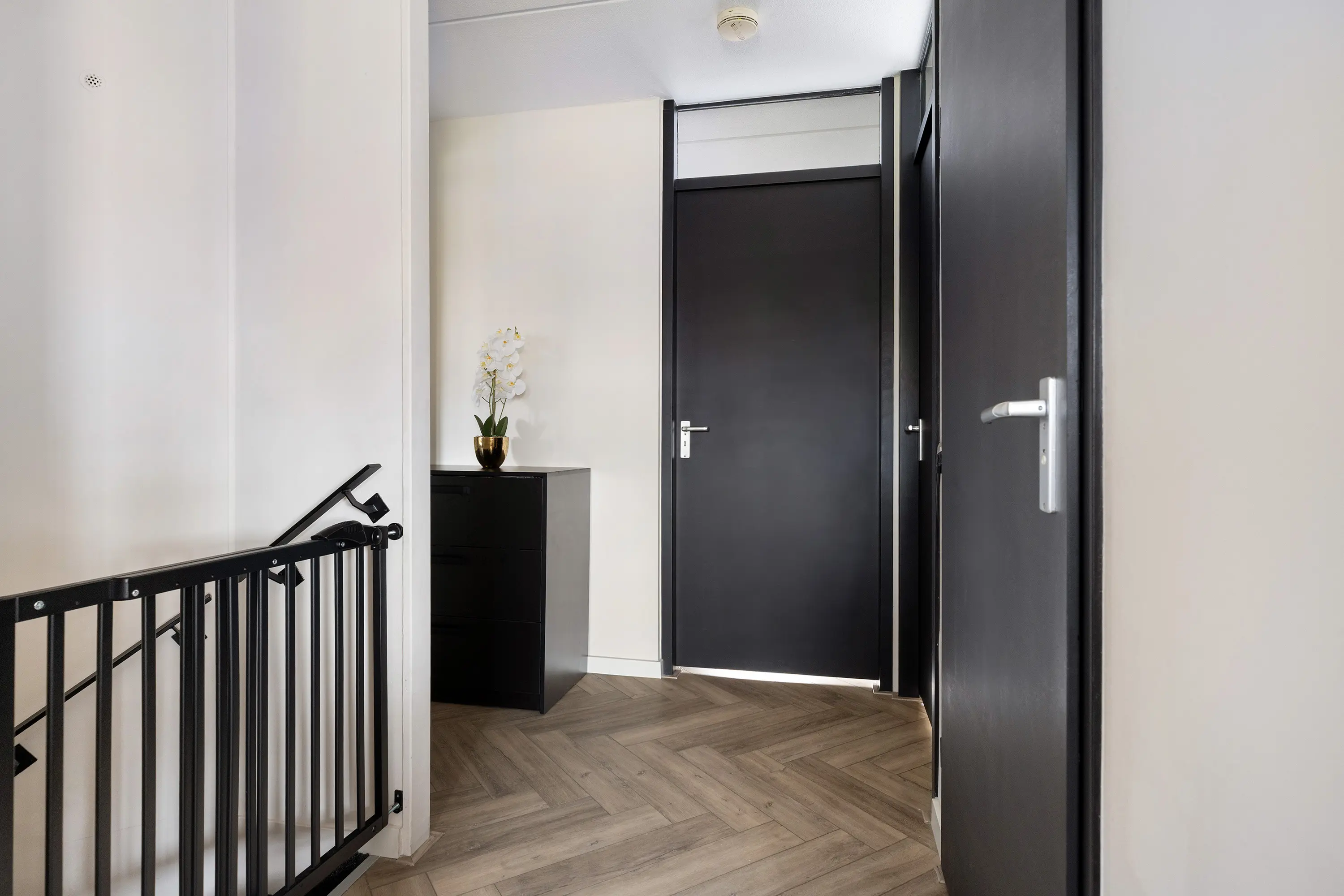 De verdiepingen zijn voorzien van moderne zwarte stalen trapleuningen wat het geheel een eigentijdse uitstraling geeft.