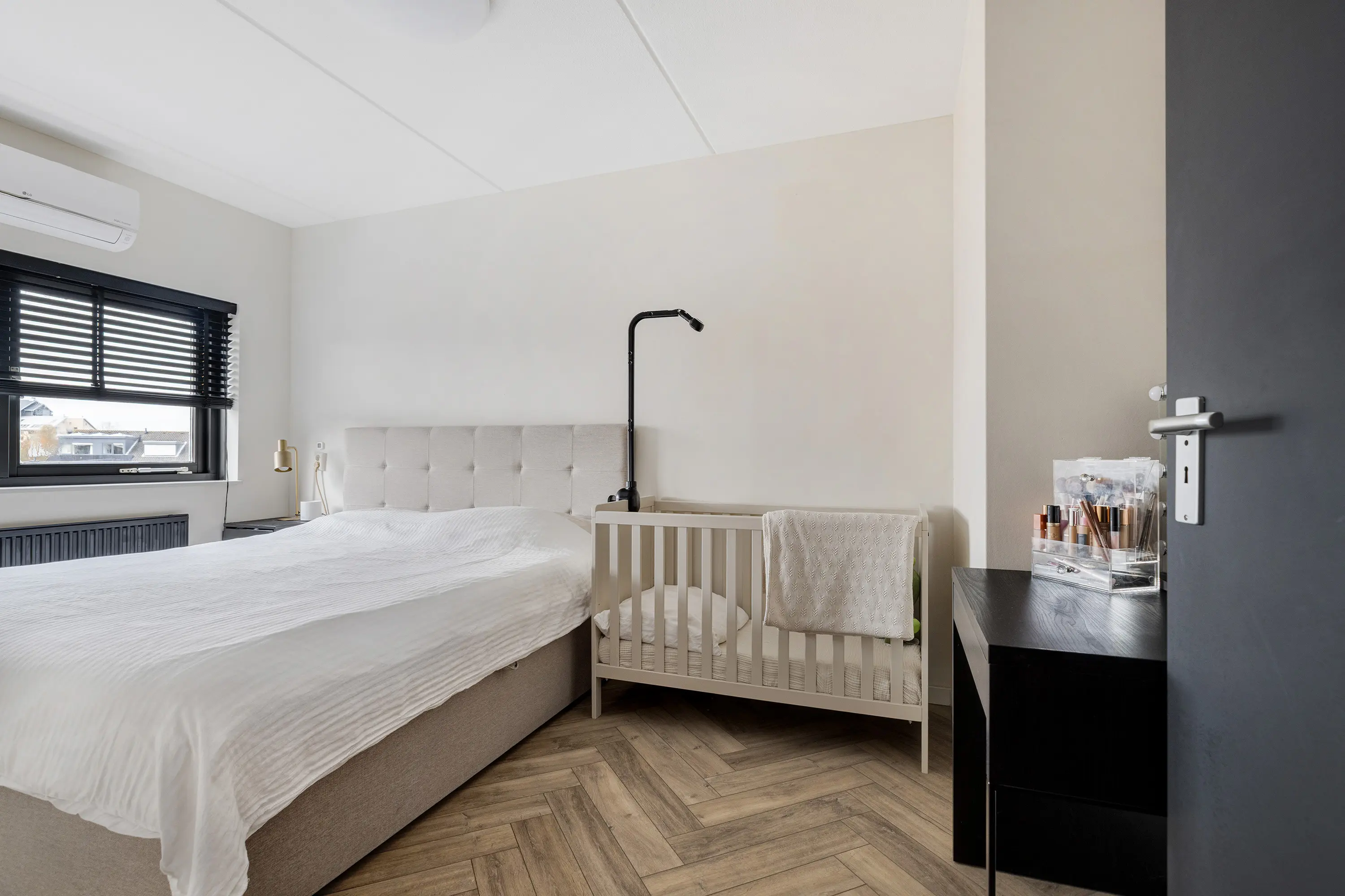 Twee slaapkamers beschikken over vaste inbouwkasten en de ouderslaapkamer heeft airconditioning.