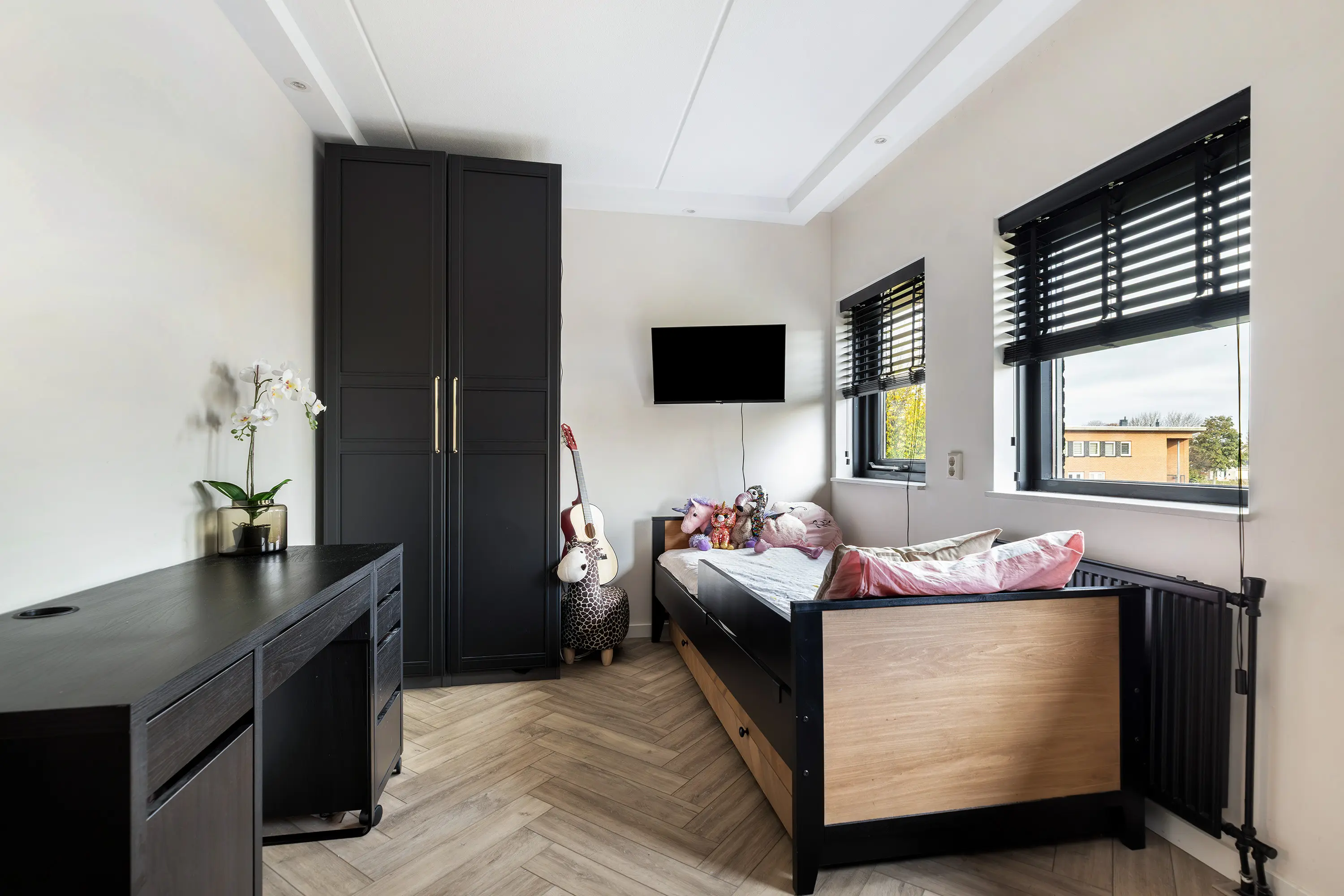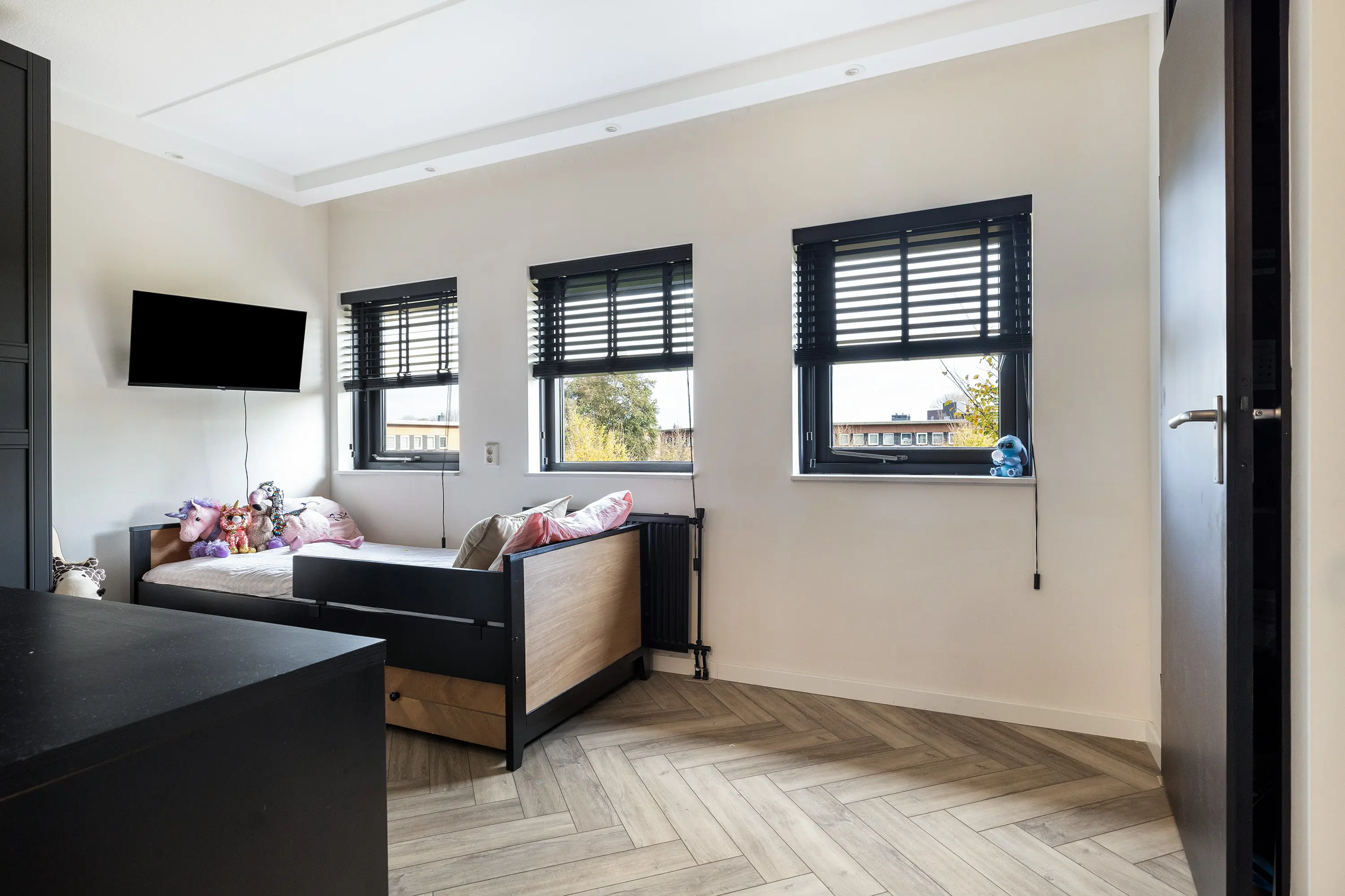 Aansluitend bevindt zich een extra multifunctionele ruimte: ideaal als speelkamer, kantoor of hobbyruimte. Deze kamer beschikt over een inbouwkast én toegang tot het balkon aan de voorzijde.