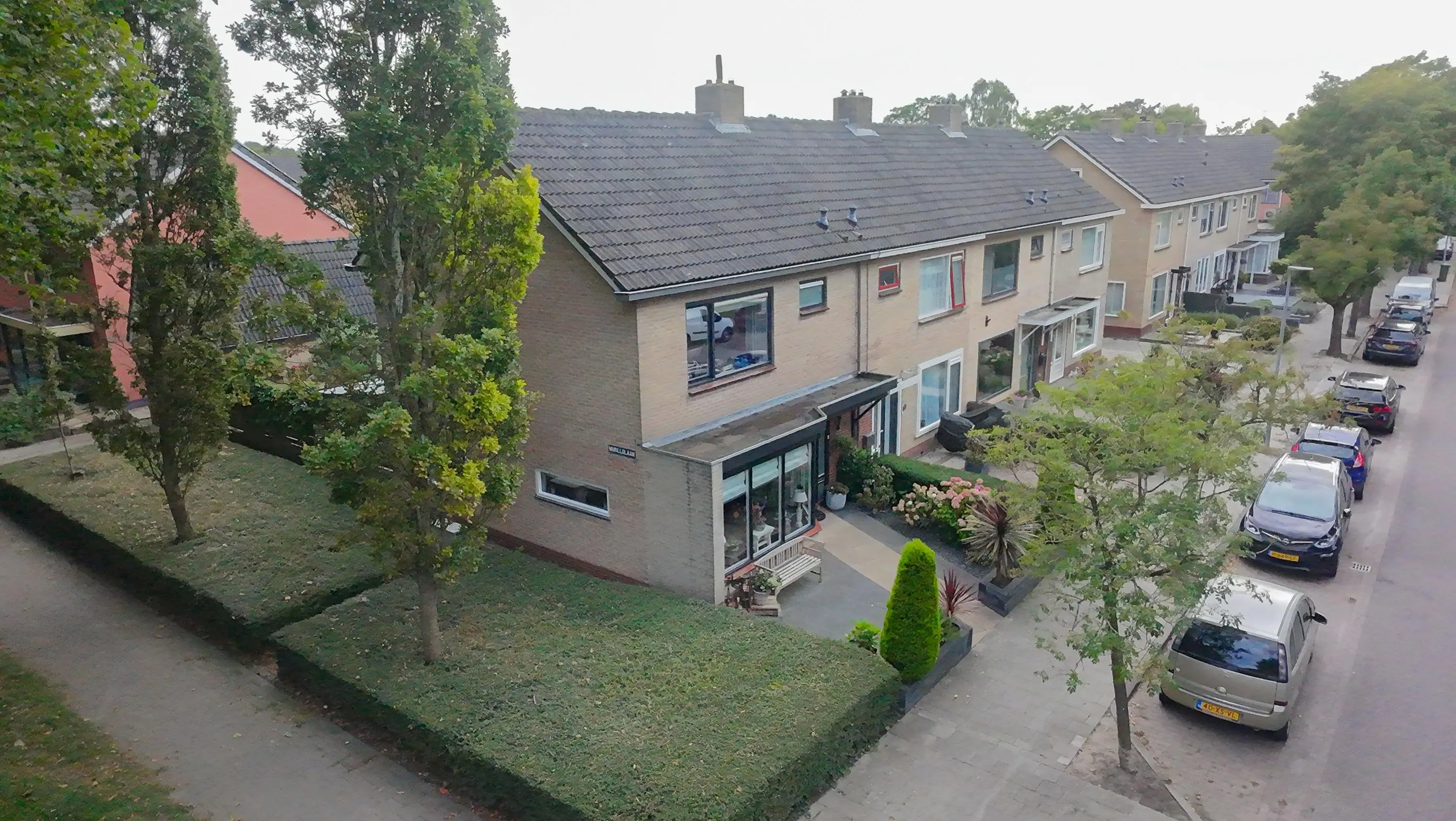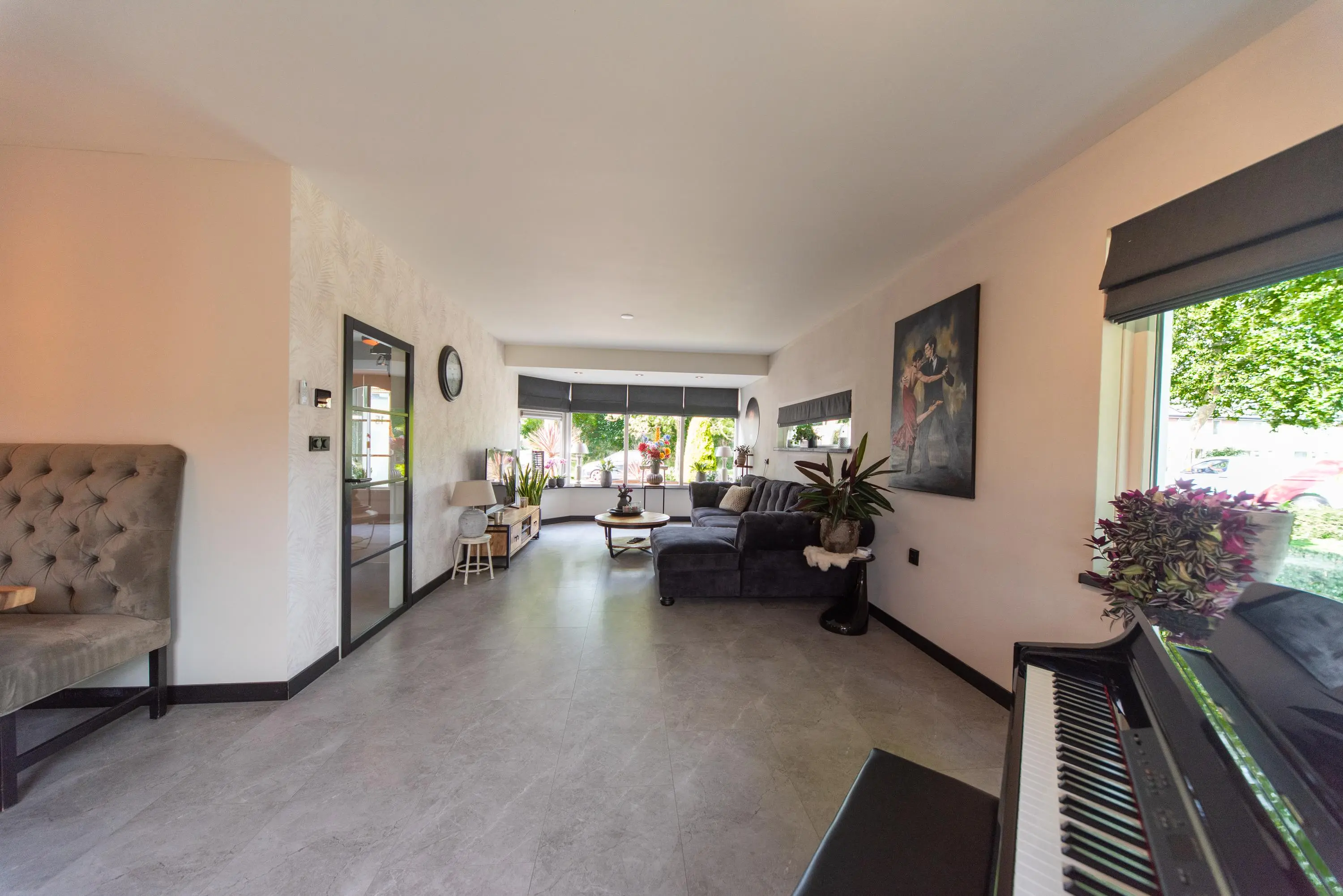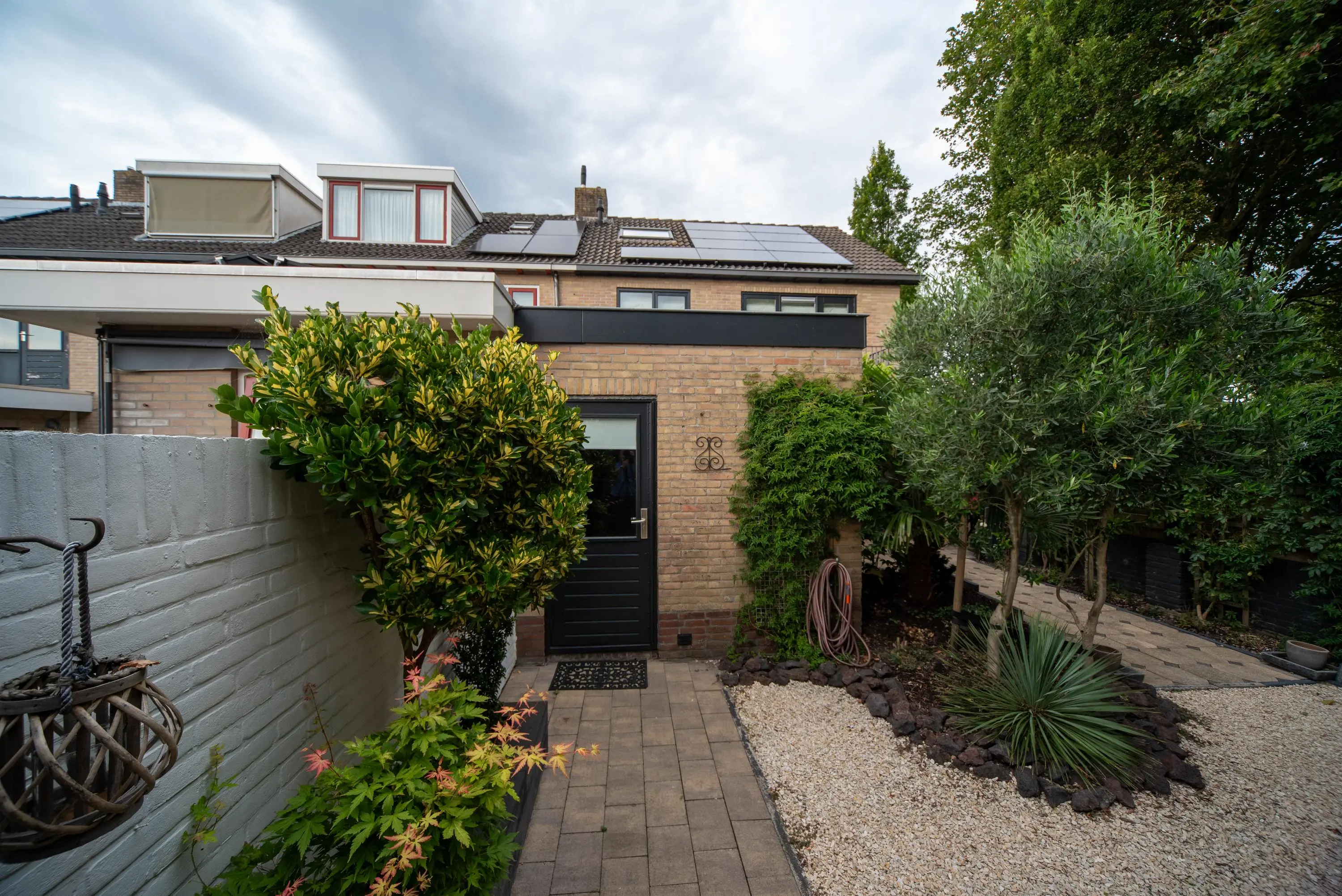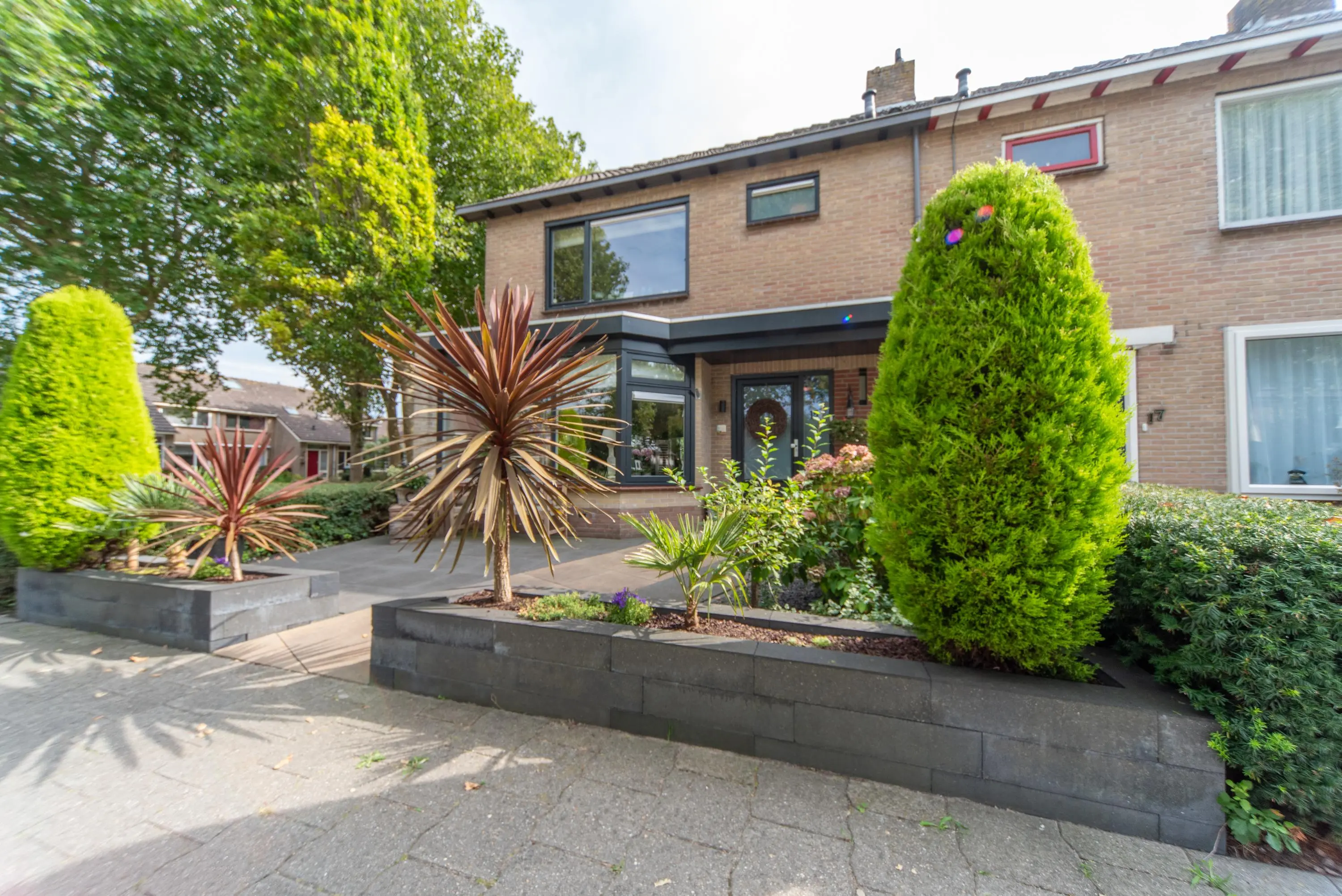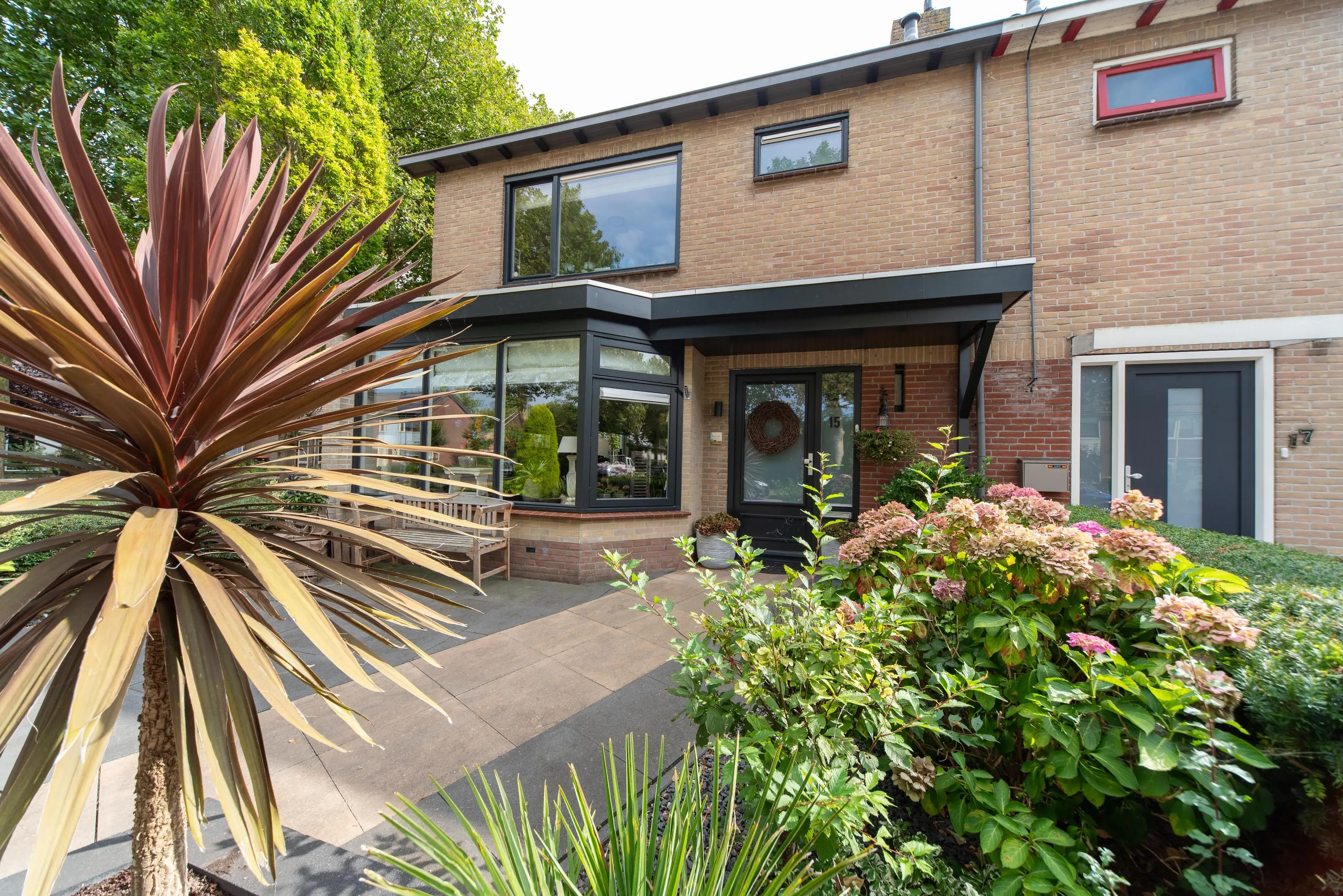 Als we de voortuin in komen lopen, valt het al gelijk op: strakke bestrating, verzorgde planten, luxe erker, dit is een woning met een hoog afwerkingsniveau. De juiste materialen zijn gebruikt en u voelt gelijk een warme, moderne, luxe sfeer die u normaal alleen in woningmagazines tegenkomt. Als we de woning betreden via de voordeur, komen we uit in een vestibule waar zich de in 2024 vernieuwde meterkast en toiletruimte met vrijhangend wandcloset en fonteintje bevindt. Vervolgens komen we uit in de grote hal met kapstok en slimme opbergplek voor alle schoenen, weggewerkt onder de trapopgang naar boven. In de hal bevindt zich ook de entree naar de zonnige doorzonwoonkamer, waar zelfs genoeg ruimte is voor de stijlvolle zwarte piano. Er valt veel licht in de woonkamer doordat er aan de voorzijde van de woning een erker geplaatst is, het een eindwoning betreft met aan de oostkant van de woning 2 ramen en aan de achterzijde hebben we nog een royale schuifpui naar de op het zuiden gelegen zonnige tuin met nieuw geplaatste aluminium overkapping waar u 's morgens heerlijk met een kopje koffie in de hand uw favoriete krantje leest.