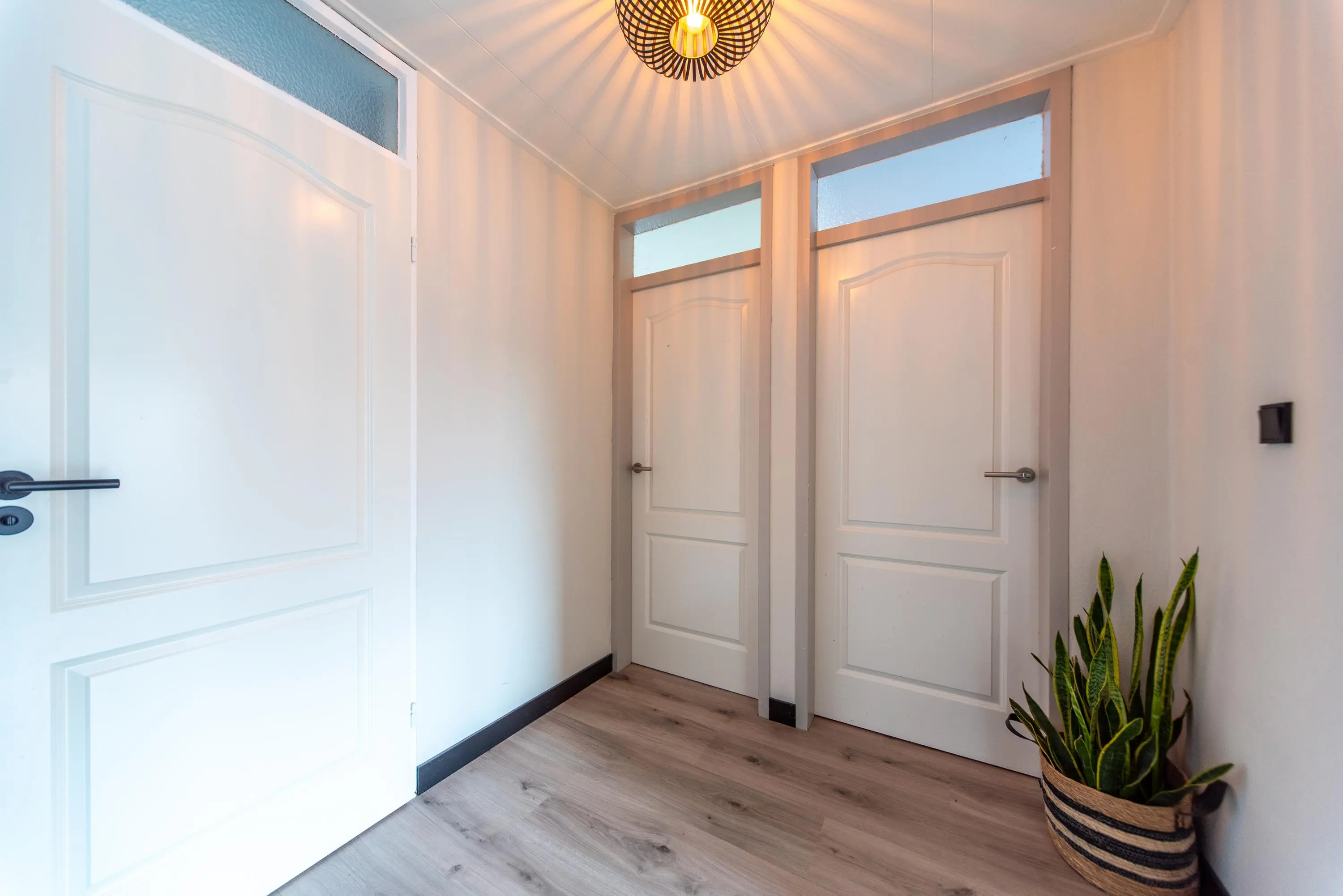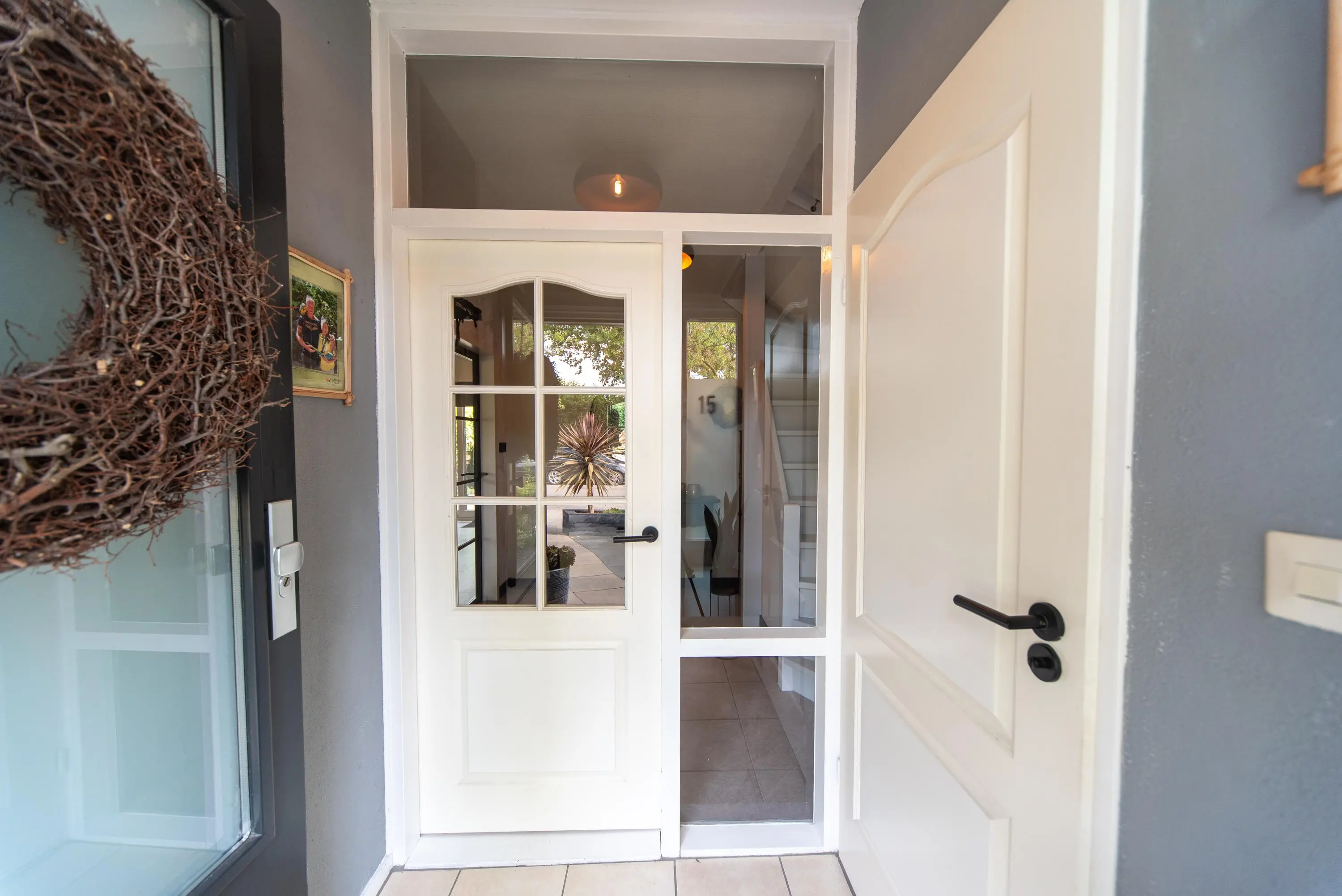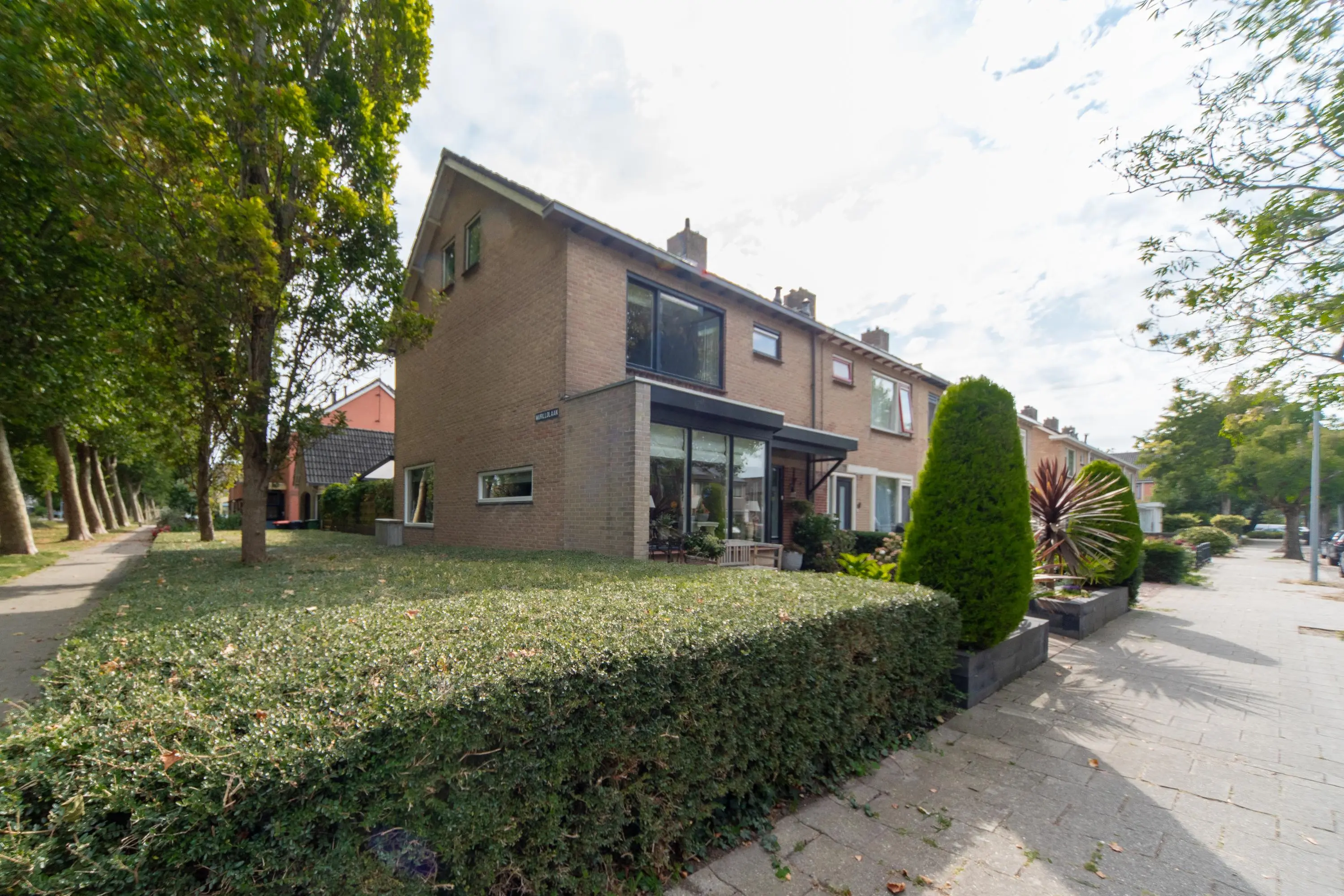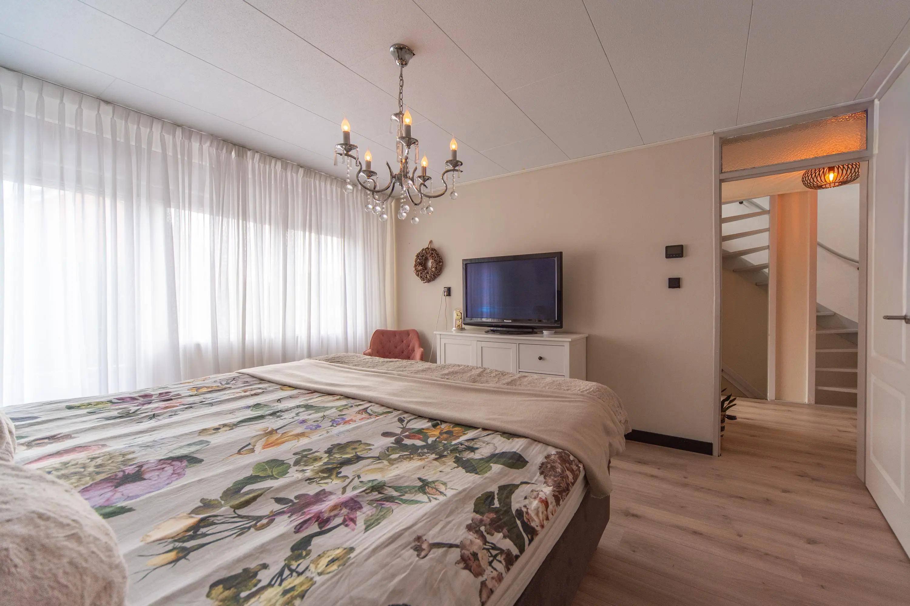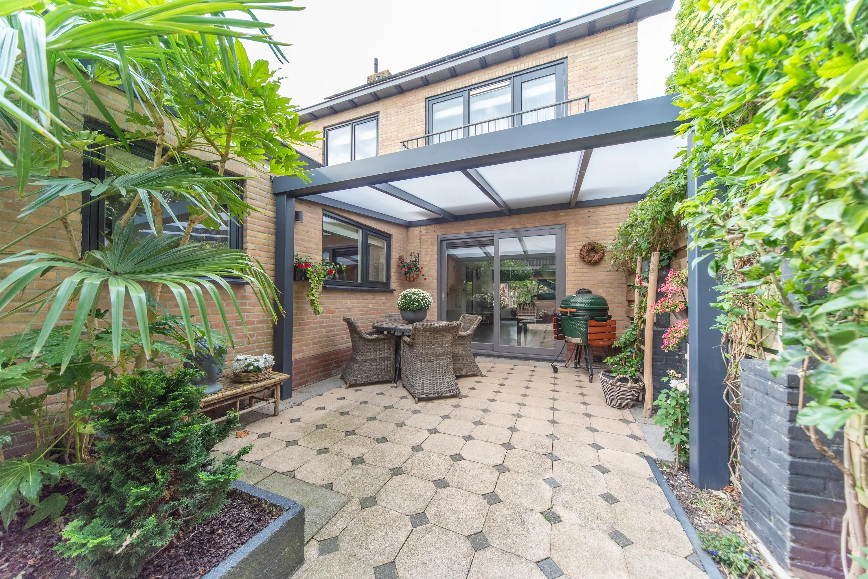 Als we de voortuin in komen lopen, valt het al gelijk op: strakke bestrating, verzorgde planten, luxe erker, dit is een woning met een hoog afwerkingsniveau. De juiste materialen zijn gebruikt en u voelt gelijk een warme, moderne, luxe sfeer die u normaal alleen in woningmagazines tegenkomt. Als we de woning betreden via de voordeur, komen we uit in een vestibule waar zich de in 2024 vernieuwde meterkast en toiletruimte met vrijhangend wandcloset en fonteintje bevindt. Vervolgens komen we uit in de grote hal met kapstok en slimme opbergplek voor alle schoenen, weggewerkt onder de trapopgang naar boven. In de hal bevindt zich ook de entree naar de zonnige doorzonwoonkamer, waar zelfs genoeg ruimte is voor de stijlvolle zwarte piano. Er valt veel licht in de woonkamer doordat er aan de voorzijde van de woning een erker geplaatst is, het een eindwoning betreft met aan de oostkant van de woning 2 ramen en aan de achterzijde hebben we nog een royale schuifpui naar de op het zuiden gelegen zonnige tuin met nieuw geplaatste aluminium overkapping waar u 's morgens heerlijk met een kopje koffie in de hand uw favoriete krantje leest.
