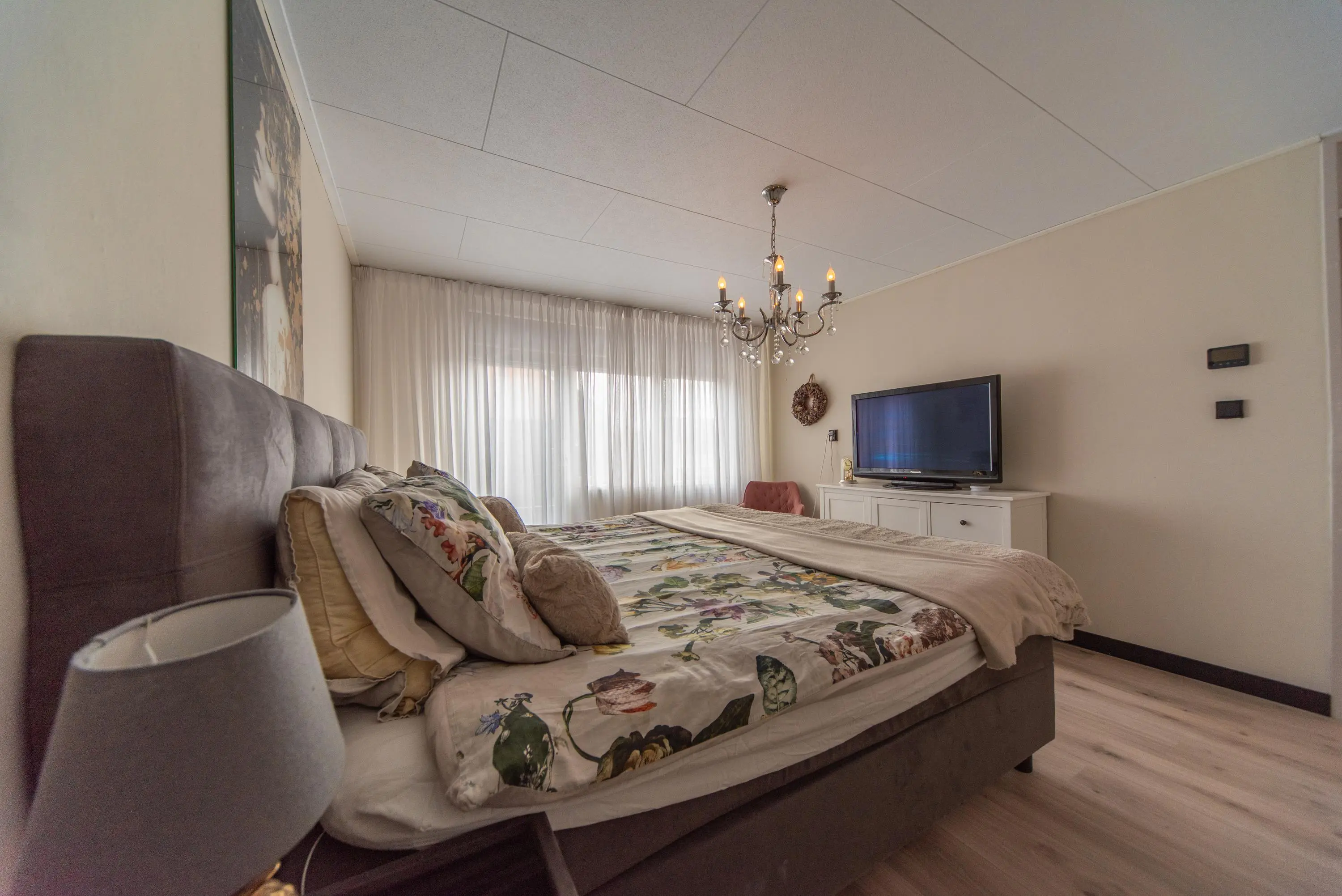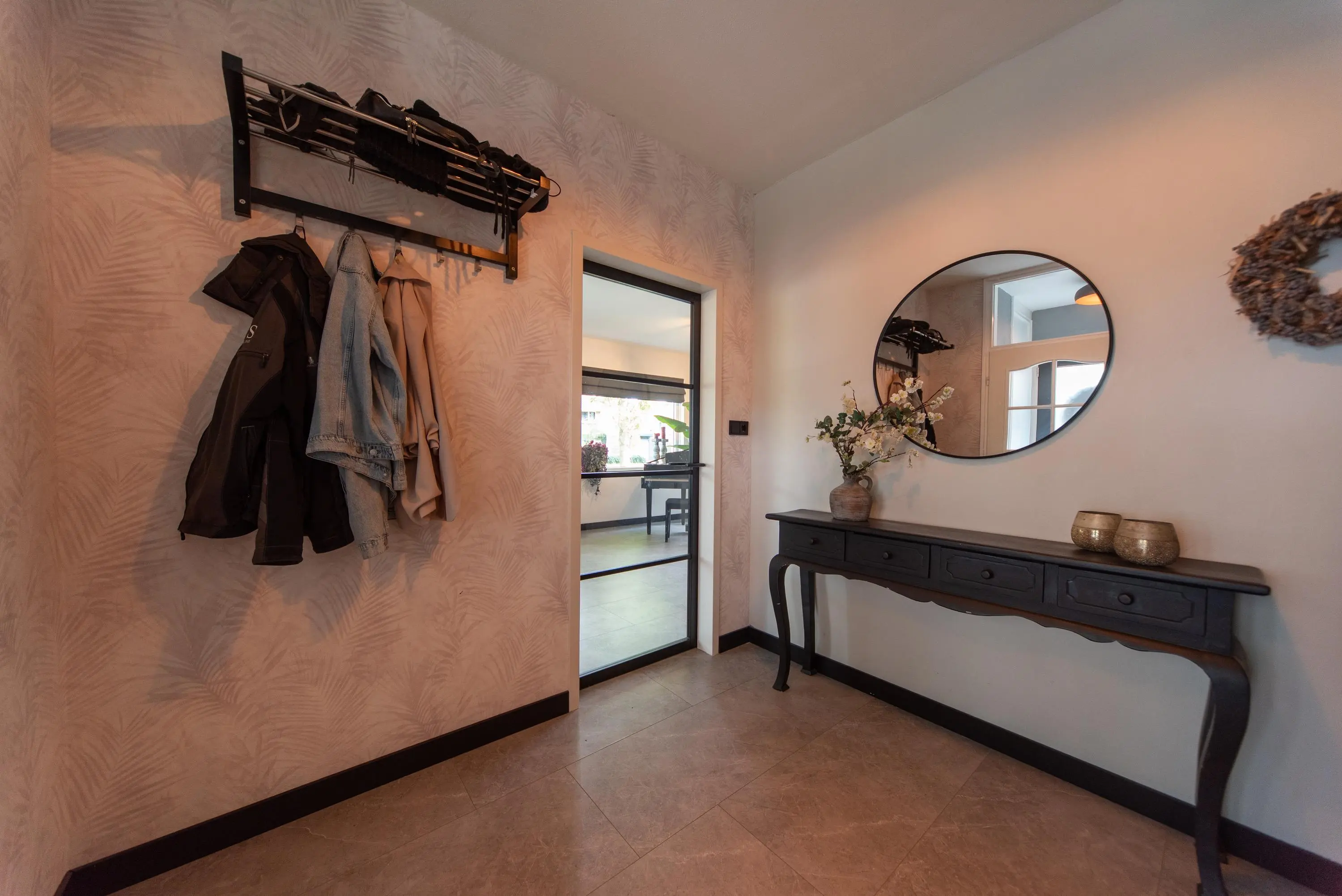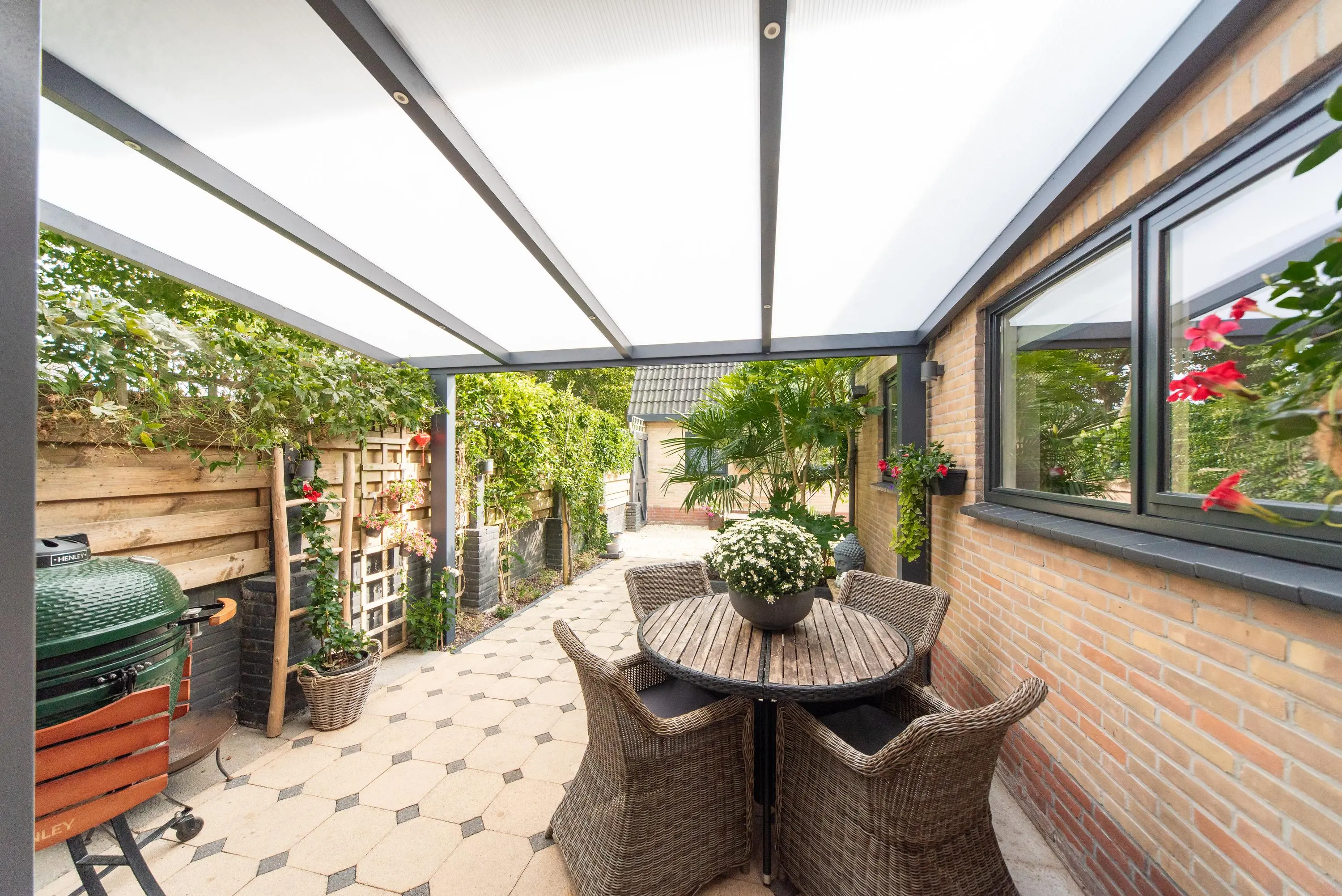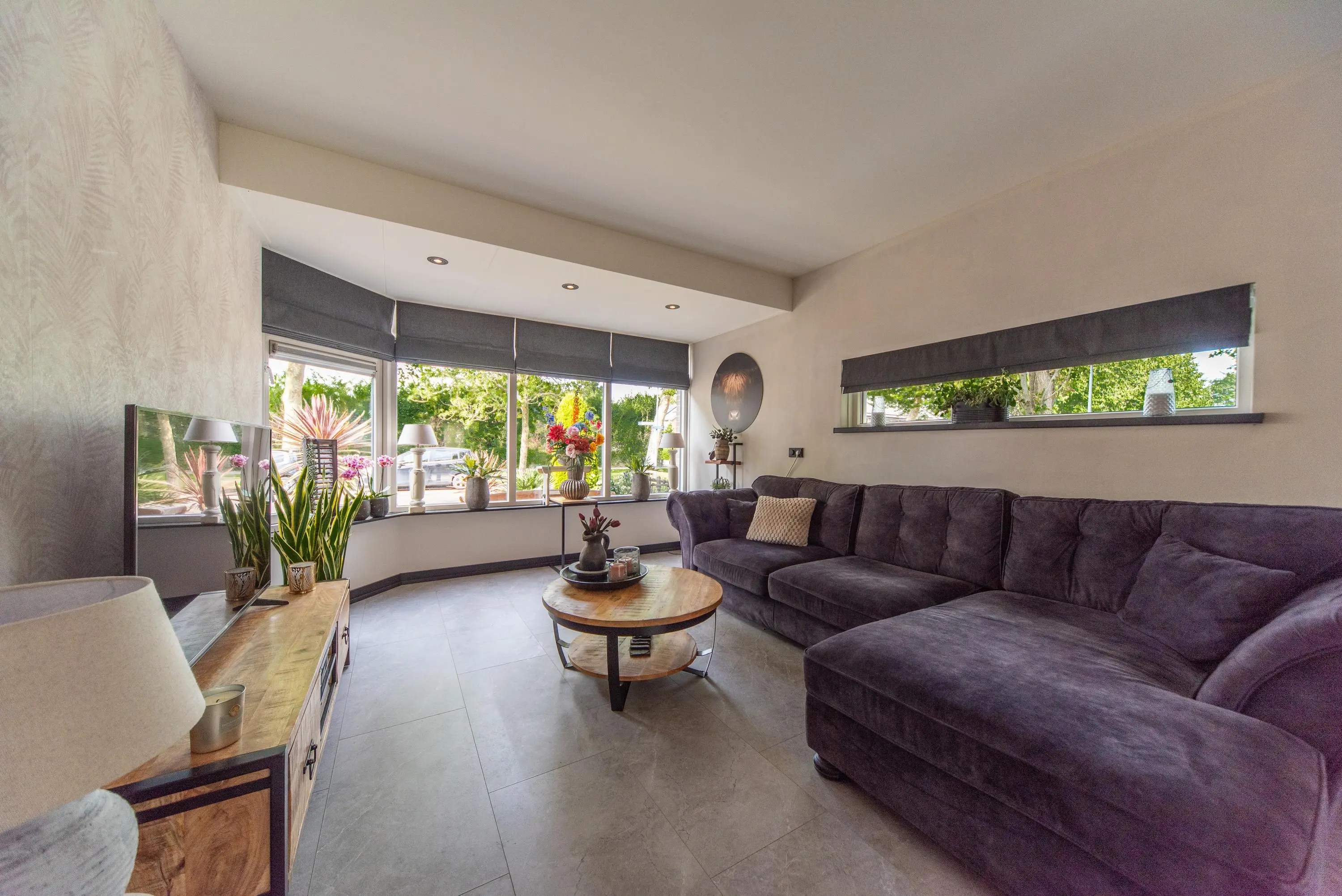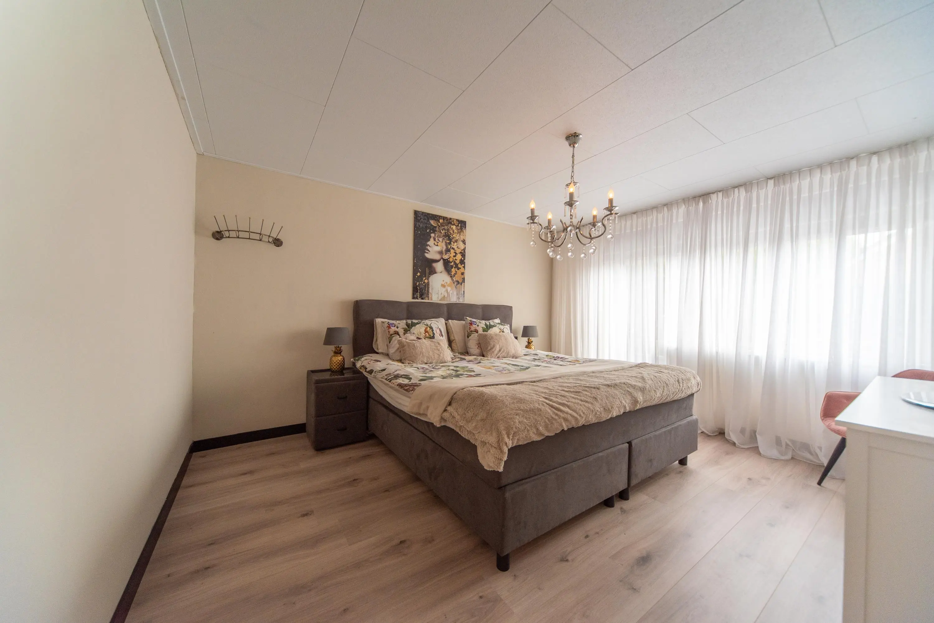 Als we de voortuin in komen lopen, valt het al gelijk op: strakke bestrating, verzorgde planten, luxe erker, dit is een woning met een hoog afwerkingsniveau. De juiste materialen zijn gebruikt en u voelt gelijk een warme, moderne, luxe sfeer die u normaal alleen in woningmagazines tegenkomt. Als we de woning betreden via de voordeur, komen we uit in een vestibule waar zich de in 2024 vernieuwde meterkast en toiletruimte met vrijhangend wandcloset en fonteintje bevindt. Vervolgens komen we uit in de grote hal met kapstok en slimme opbergplek voor alle schoenen, weggewerkt onder de trapopgang naar boven. In de hal bevindt zich ook de entree naar de zonnige doorzonwoonkamer, waar zelfs genoeg ruimte is voor de stijlvolle zwarte piano. Er valt veel licht in de woonkamer doordat er aan de voorzijde van de woning een erker geplaatst is, het een eindwoning betreft met aan de oostkant van de woning 2 ramen en aan de achterzijde hebben we nog een royale schuifpui naar de op het zuiden gelegen zonnige tuin met nieuw geplaatste aluminium overkapping waar u 's morgens heerlijk met een kopje koffie in de hand uw favoriete krantje leest.