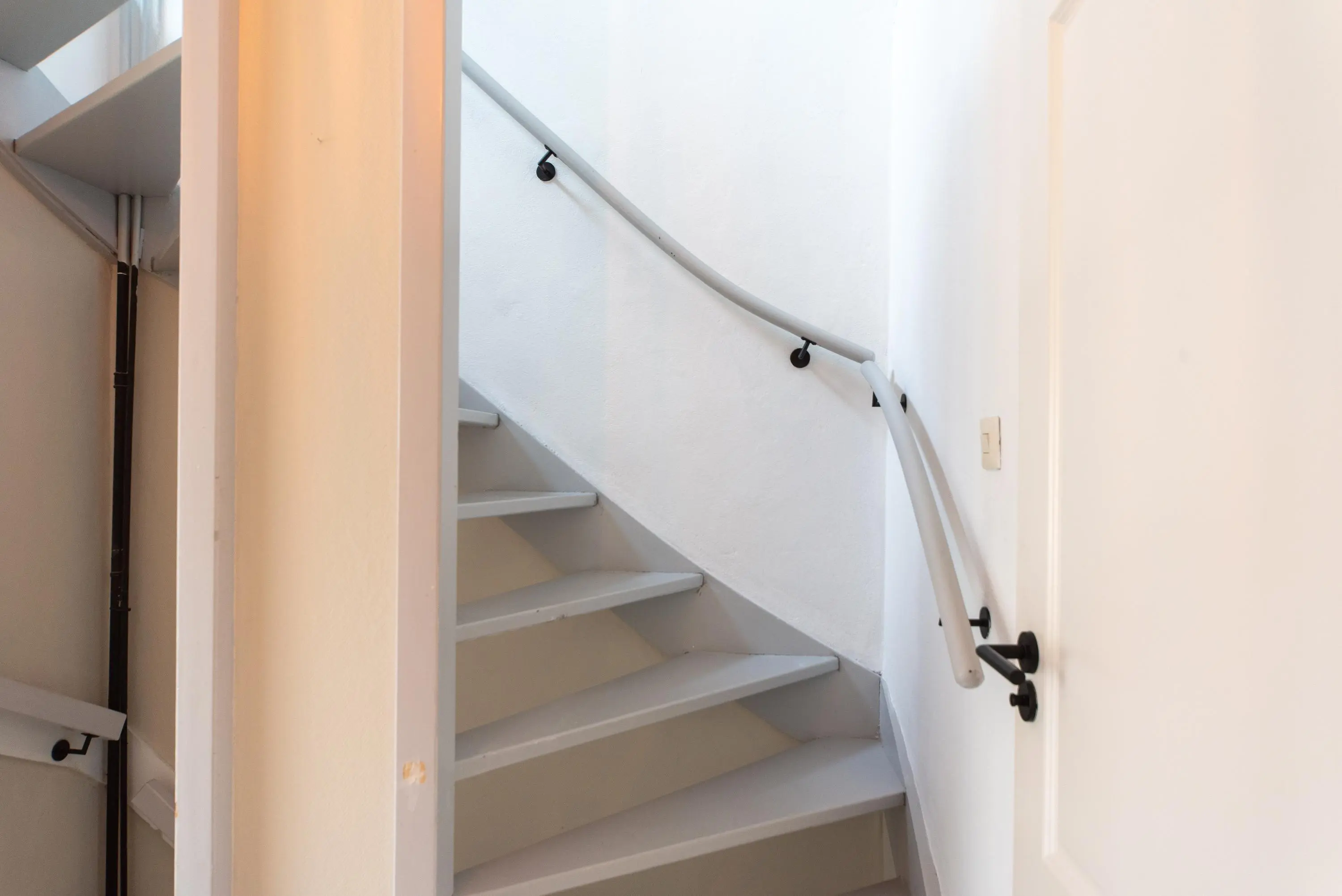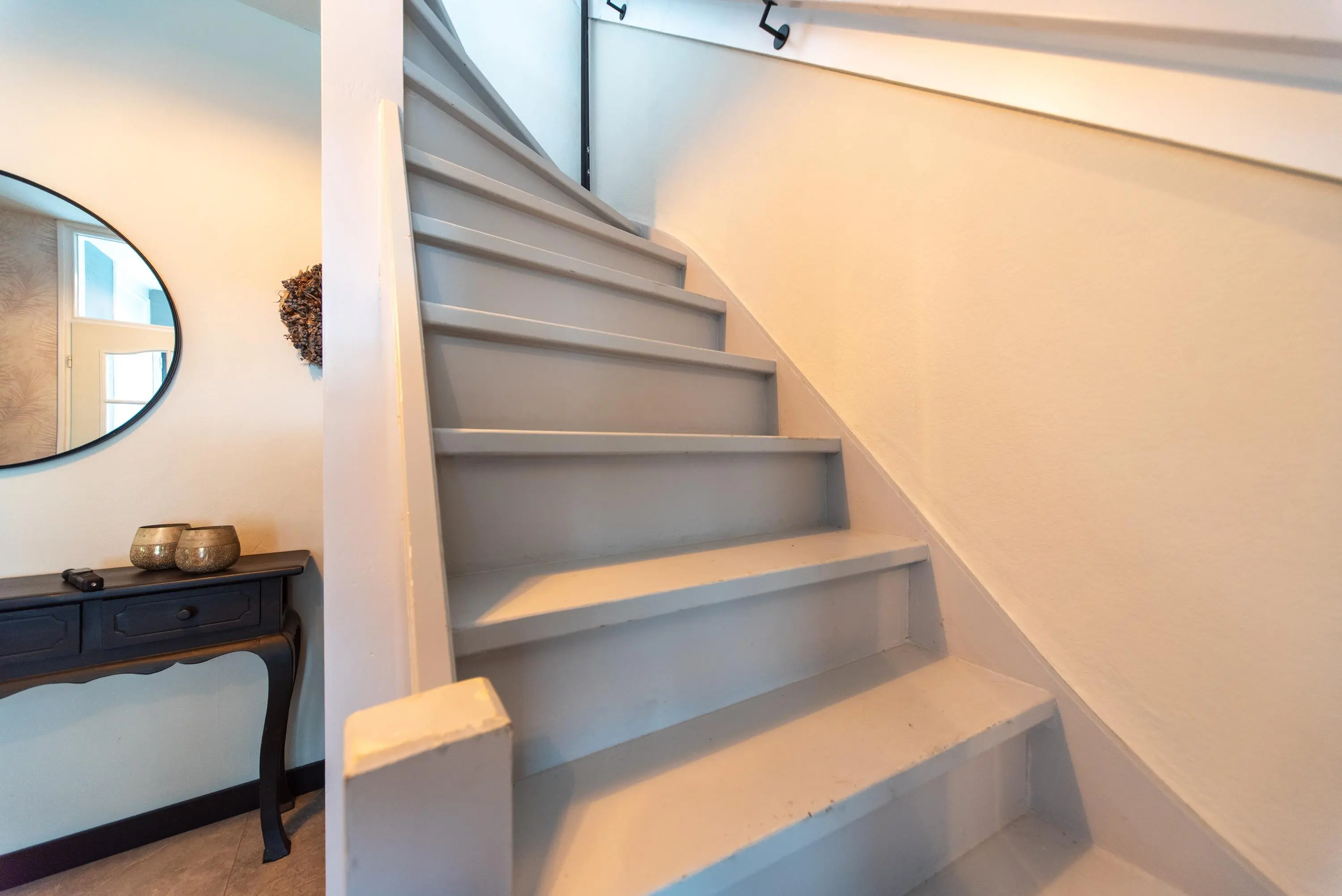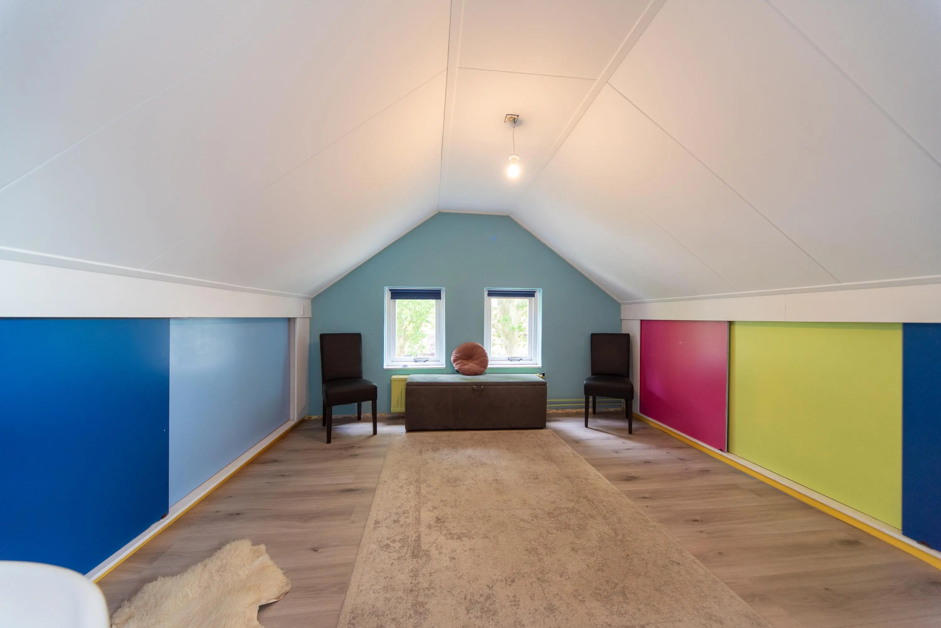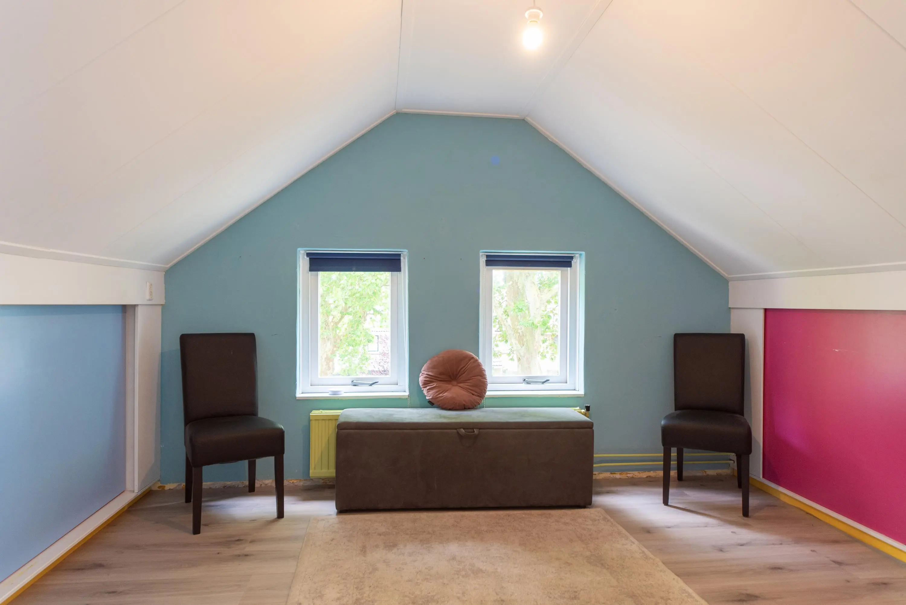 Als we de trap opgaan naar de 2e verdieping, komen we op de ruime voorzolder uit, waar u achter de knieschotten nog genoeg ruimte heeft om alle spulletjes die u weinig gebruikt uit het zicht op te ruimen.