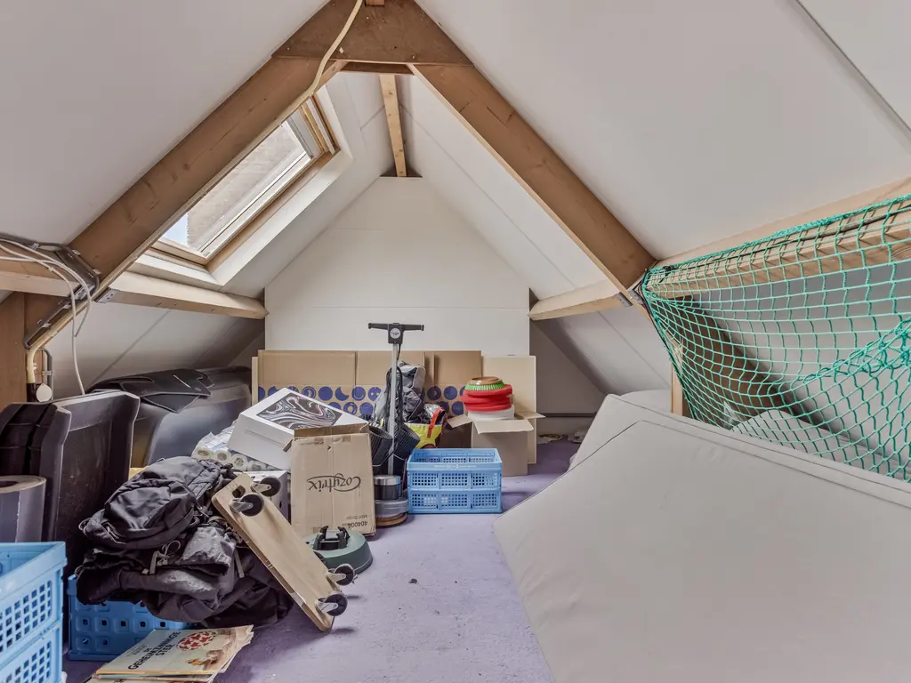 On the first floor, there are three bedrooms, including a master bedroom with air conditioning. The bathroom has a bathtub, and there is a separate second toilet. The spacious attic floor includes dormer windows at both the front and rear, offering lots of light. It currently serves as a fourth bedroom, with the option to easily create a fifth.