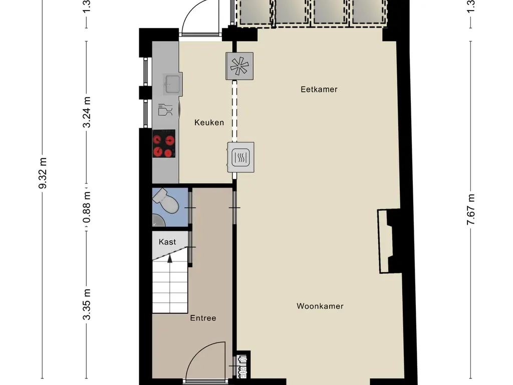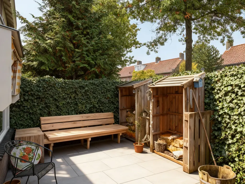 The outbuilding at Pieter de Hooghstraat 1 has its own entrance, central heating, and connections for kitchen and bathroom facilities. This makes it easy to convert into a separate living space, home office, or studio.