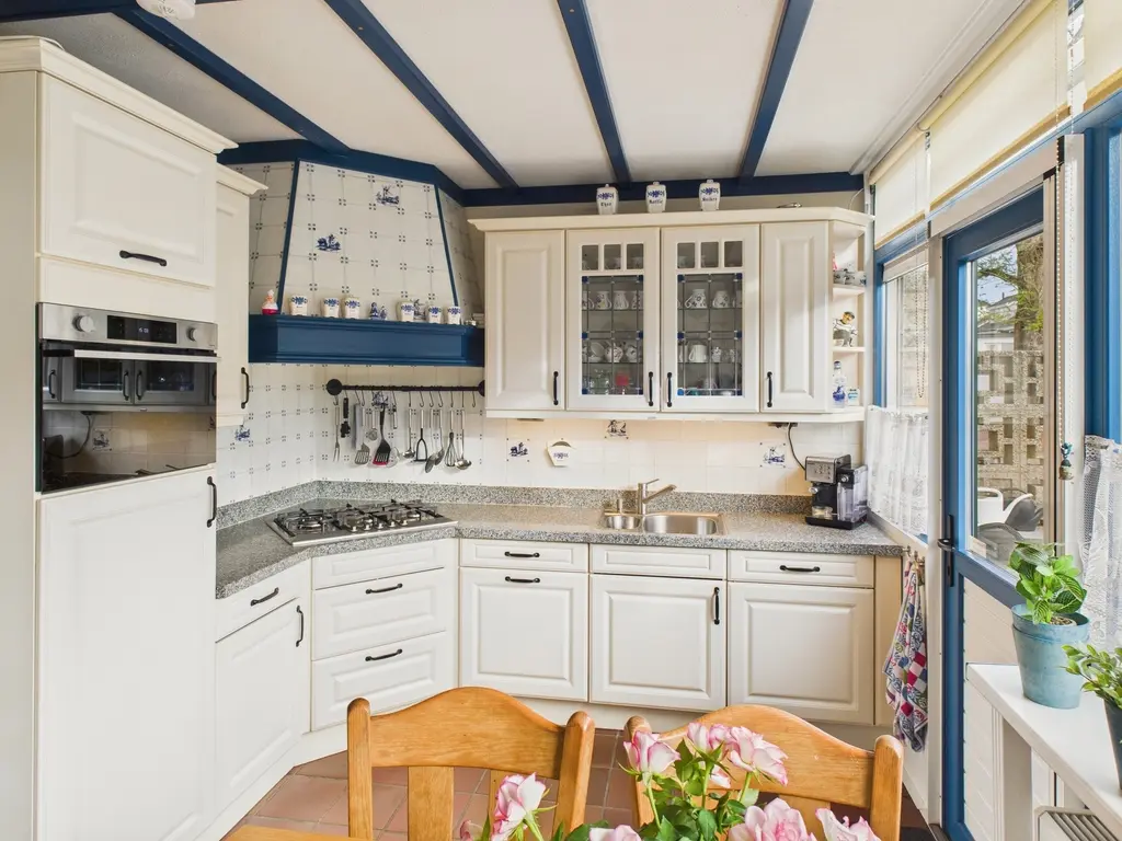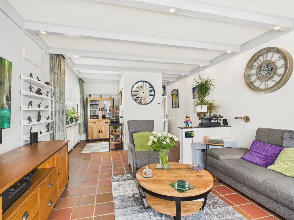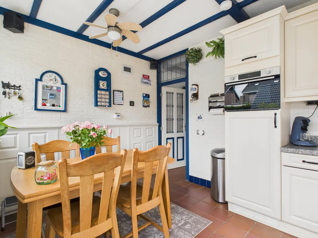 De sfeervolle woonkamer aan de voorzijde is afgewerkt met een plavuizen vloer en dankzij de grote raampartijen is er volop natuurlijk daglicht. Hier creëer je met gemak een gezellige zithoek, los van de keuken. Ook is er in de hoek van de kamer een gezellige speelruimte voor de kinderen te creëren of een eventuele werkplek. De keurige, afgesloten keuken is van alle gemakken voorzien: een 5-pits gaskookplaat, afzuigkap, combimagnetron, vaatwasser, koelkast en volop kastruimte. Er is ook voldoende plek voor een gezellige eethoek, waardoor je echt van een woonkeuken kunt spreken. Via de keuken heb je toegang tot het zonnige balkon aan de achterzijde van de woning. Met een paar treden ben je ook in de achtertuin.