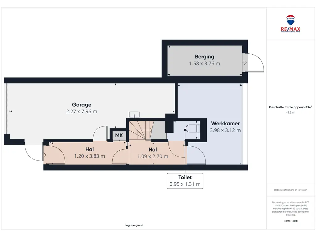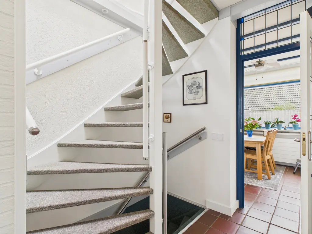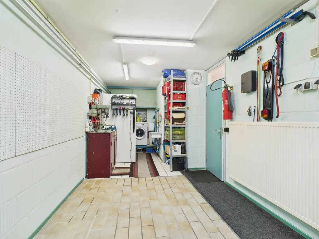 Bij binnenkomst in de hal bevinden zich hier de meterkast, toegang tot de inpandige garage/berging en via de gang het toilet en een slaap-/werkkamer. De verwarmde garage is multifunctioneel inzetbaar en beschikt ook over aansluitingen voor wasapparatuur. De kamer op de begane grond is momenteel ingericht als bijkeuken/opslag, echter kan ook ideaal als logeerkamer, werkkamer of hobbyruimte fungeren.
