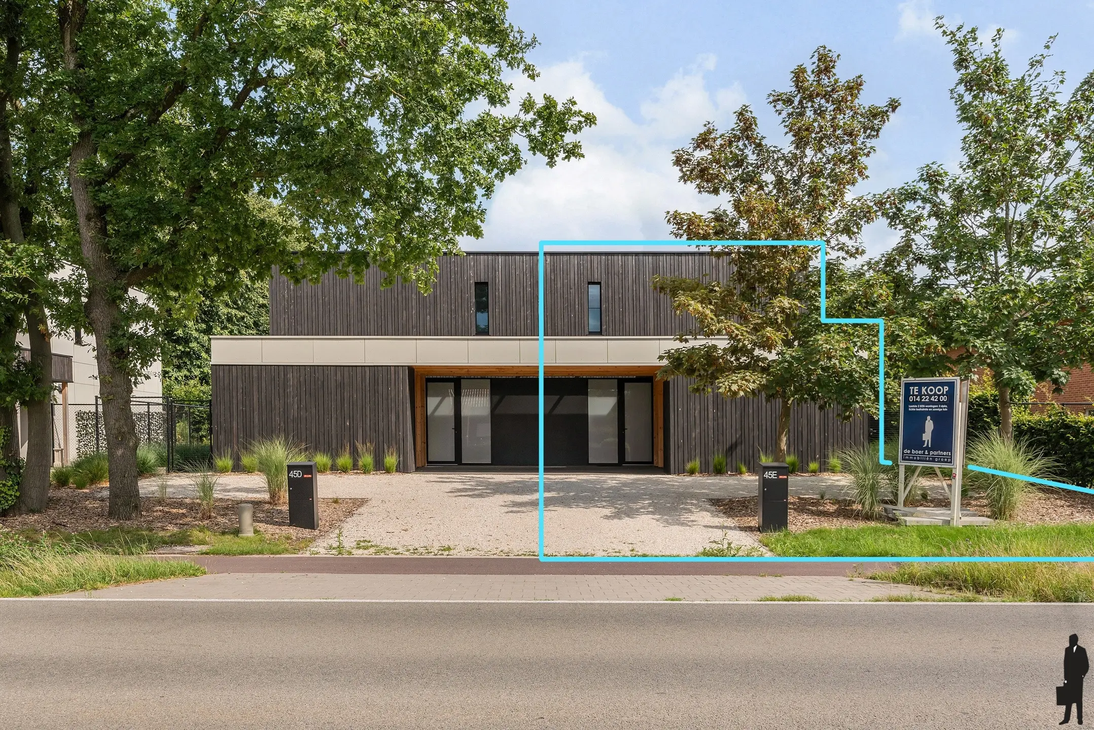 U betreedt de woning via de inkomhal met vestiaire en gastentoilet. Vervolgens stapt u binnen in de lichte en open leefruimte, waar moderne architectuur en natuurlijke (houten) elementen samenkomen.