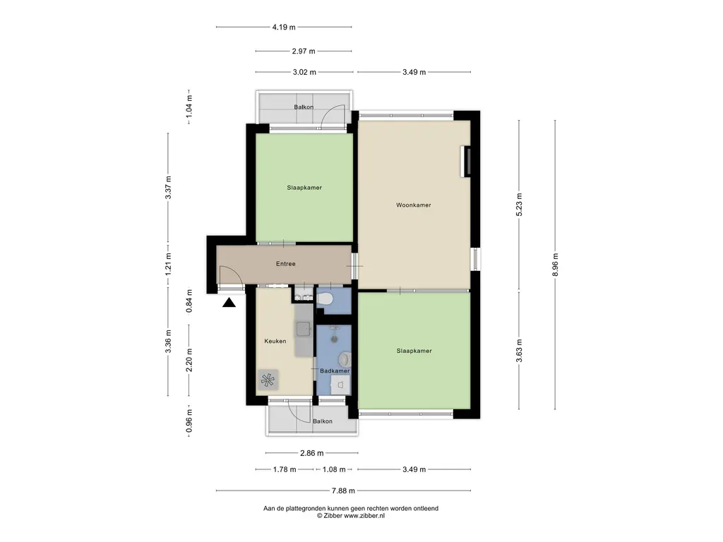 - 3 kamers, 2 slaapkamers