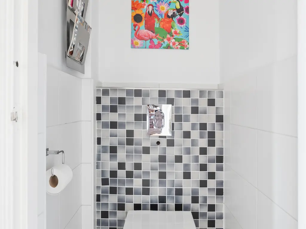Through the well-maintained, enclosed porch with mailboxes and a doorbell panel, you reach the staircase that opens onto the apartment on the fourth floor. In the basement, there are two private storage units of 7.3m² and 4m² respectively.