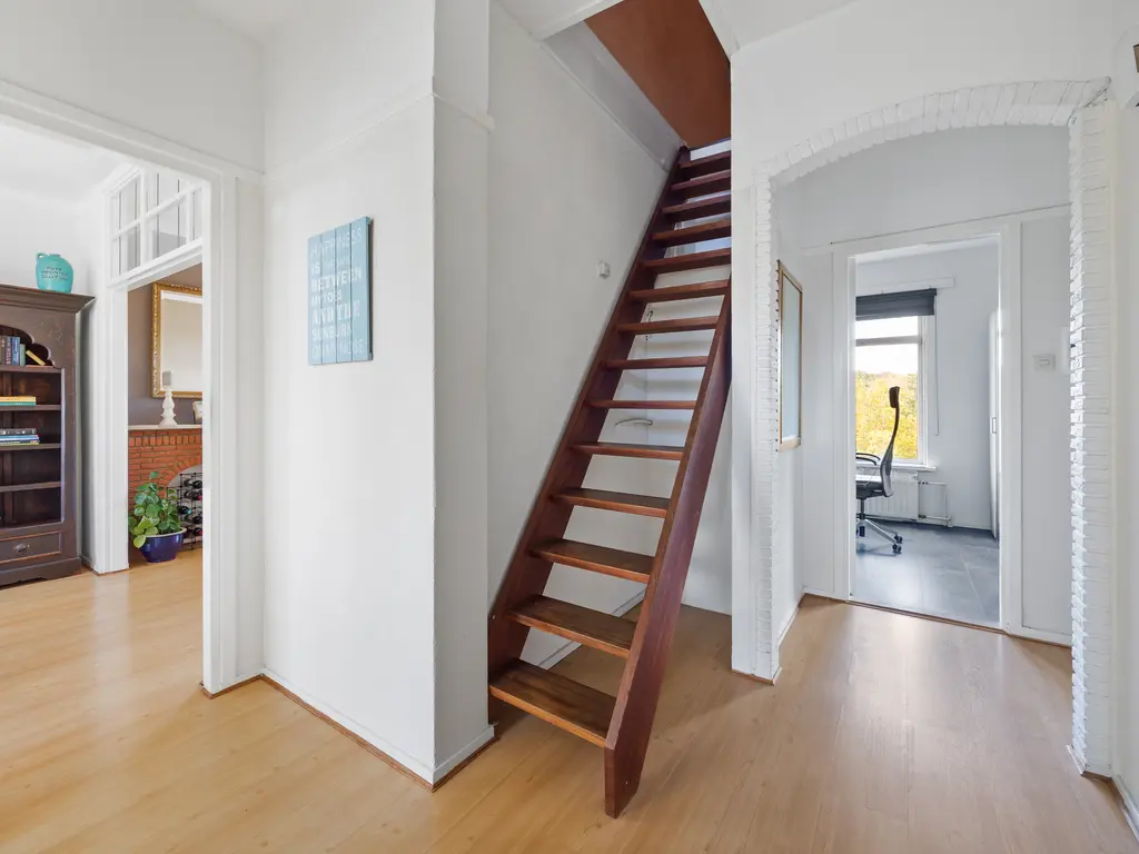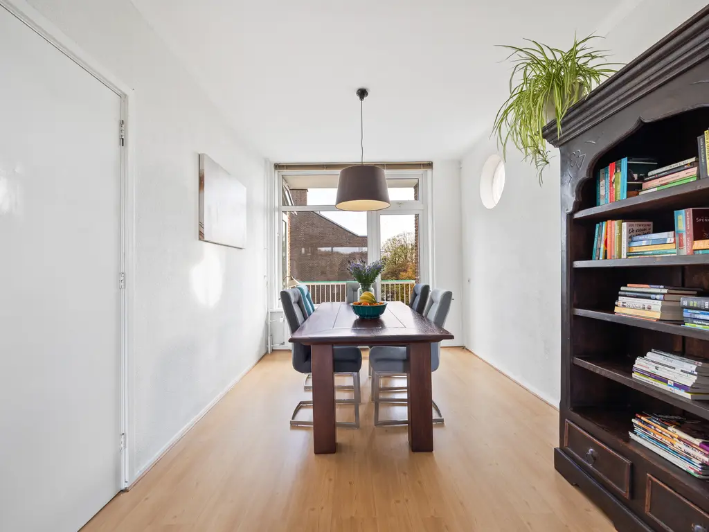 This corner apartment is located on the fourth and fifth floors of a small, well-maintained apartment complex dating from 1957. The living area is 120m², spread across the fourth floor and the attic, accessible via a staircase. The former living room en suite offers unobstructed views of the Rijswijk theater, the city hall, and greenery. Thanks to the large windows, a side window, and favorable sun exposure, this living space is exceptionally bright. The balconies at the rear and side are accessible from the living room. The two bedrooms on the fourth floor have (indoor) closet space. The rooms in the attic can be used as desired.