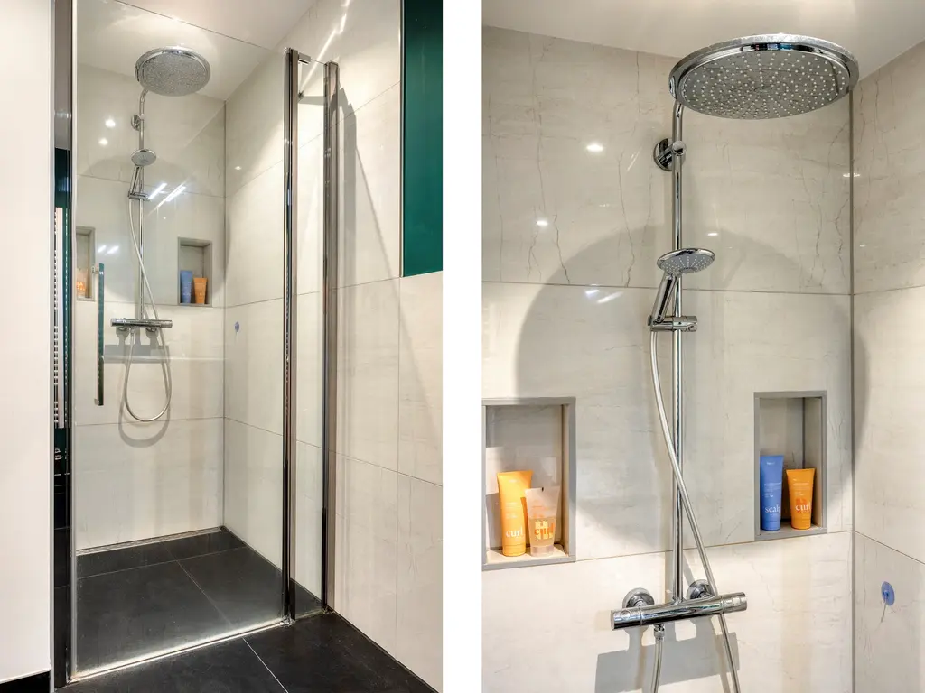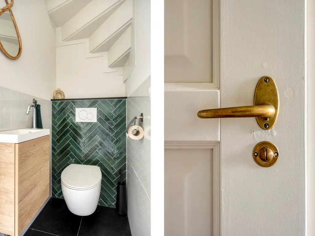 De moderne badkamer uit eind 2021 is centraal gelegen en voorzien van een royale inloopdouche, wastafel en tweede toilet. Op de overloop is een praktische wasruimte met aansluitingen voor wasmachine en droger, en tevens de cv-ketel (2022). Daarnaast is er nog een vaste bergkast aanwezig.