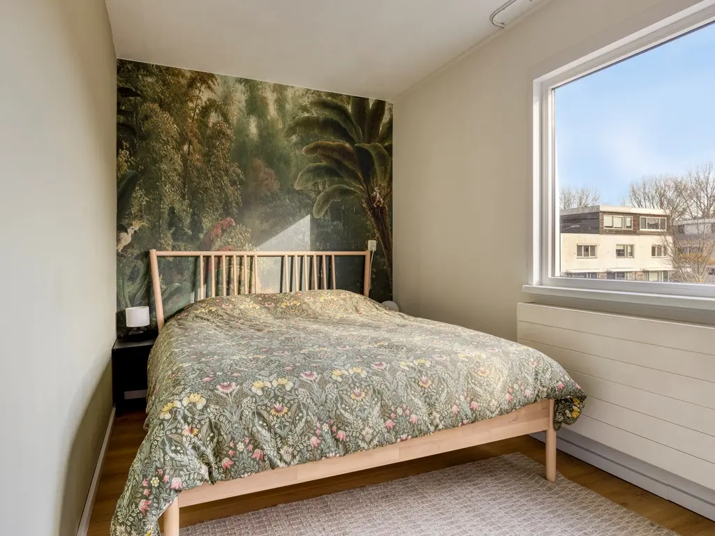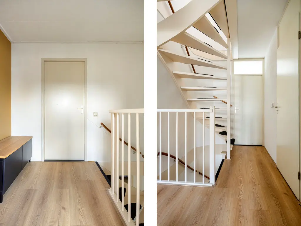 Overloop met toegang tot twee royale slaapkamers, gelegen aan de voor- en achterzijde. De hoofd(slaap)kamer bevindt zich aan de achterzijde en biedt toegang tot het zonnige dakterras op het westen – een heerlijke plek om in alle rust van de avondzon te genieten.