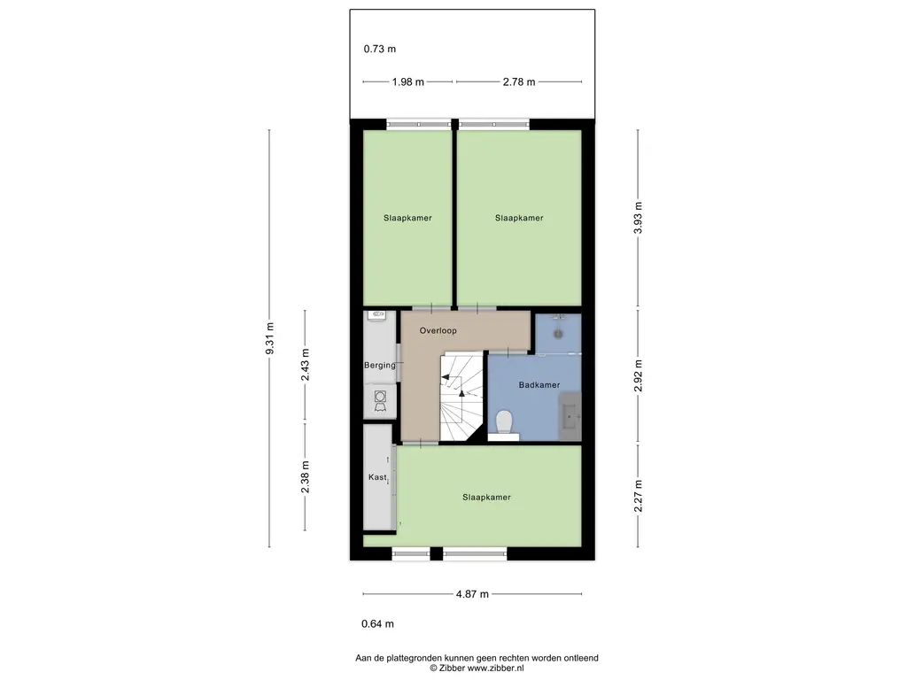 Overloop met toegang tot alle vertrekken. Aan de voorzijde ligt een ruime slaapkamer met een grote inbouwkast over de gehele breedte van de kamer. Aan de achterzijde bevinden zich nog twee prettige slaapkamers van goed formaat.