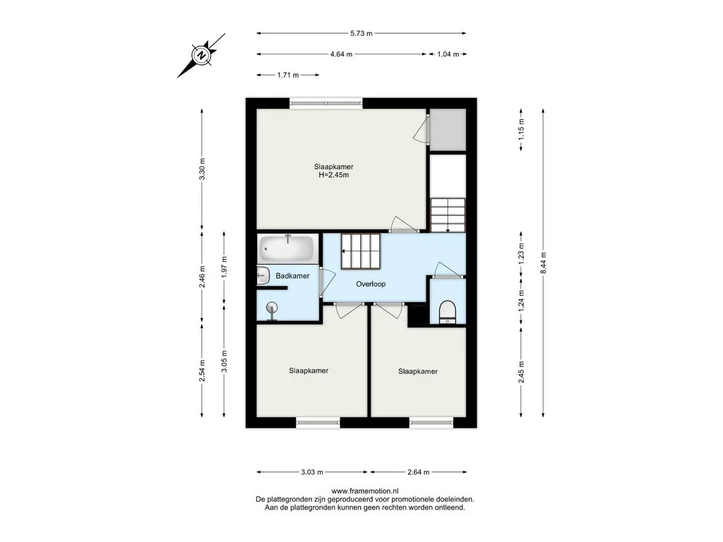 De overloop geeft toegang tot drie slaapkamers, de badkamer en een apart toilet.