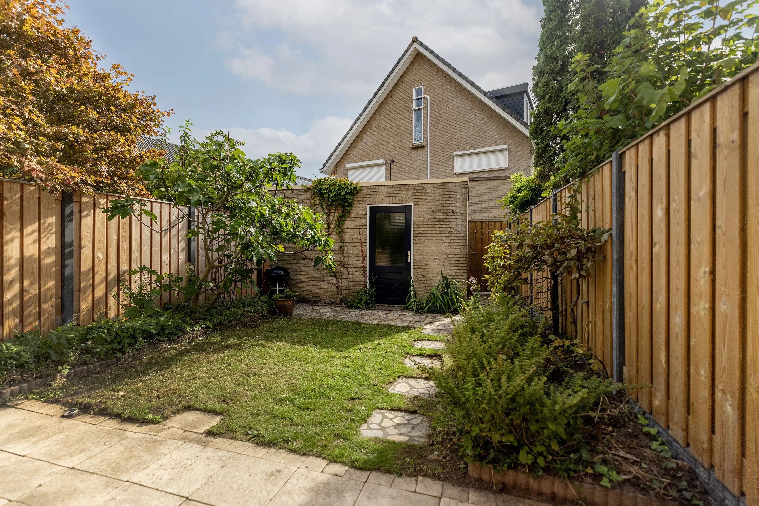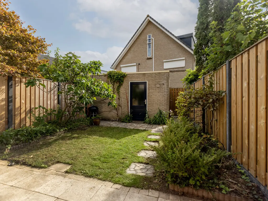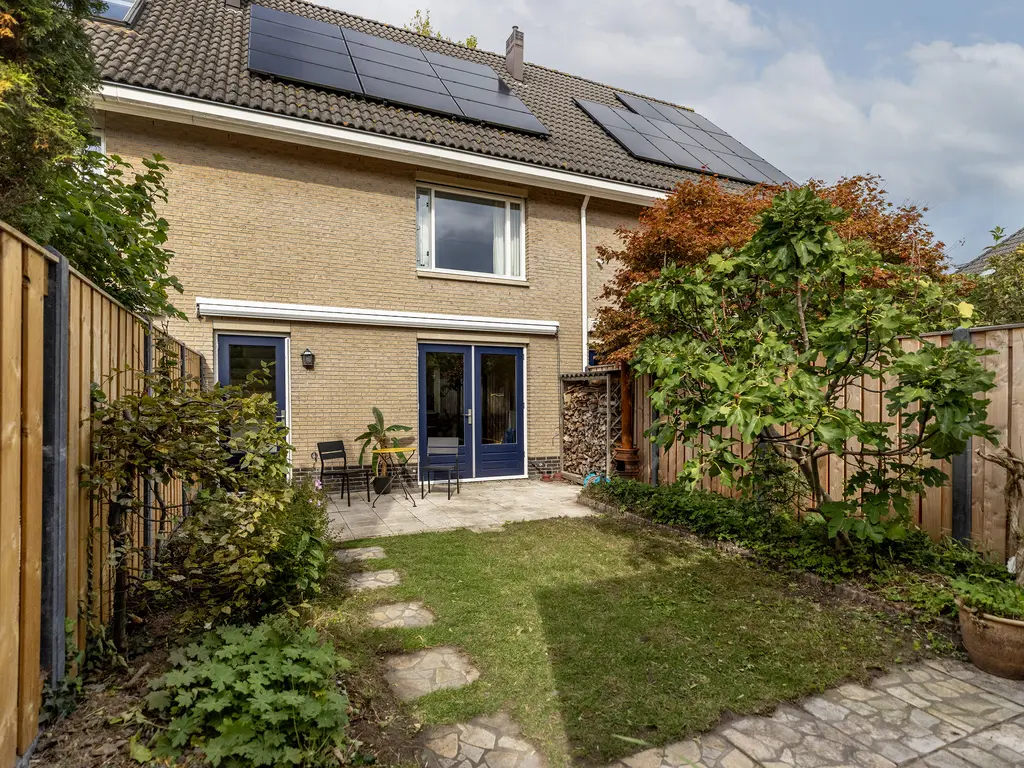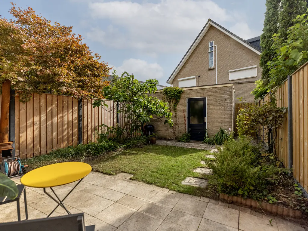 De achtertuin ligt op het zuidoosten en biedt zon van de ochtend tot in de middag. De tuin is verzorgd aangelegd met sierbeplanting, bestrating en een grasveld. Er is een handmatig bedienbaar zonnescherm aanwezig, een stenen berging achterin de tuin en een achterom voor extra gemak.