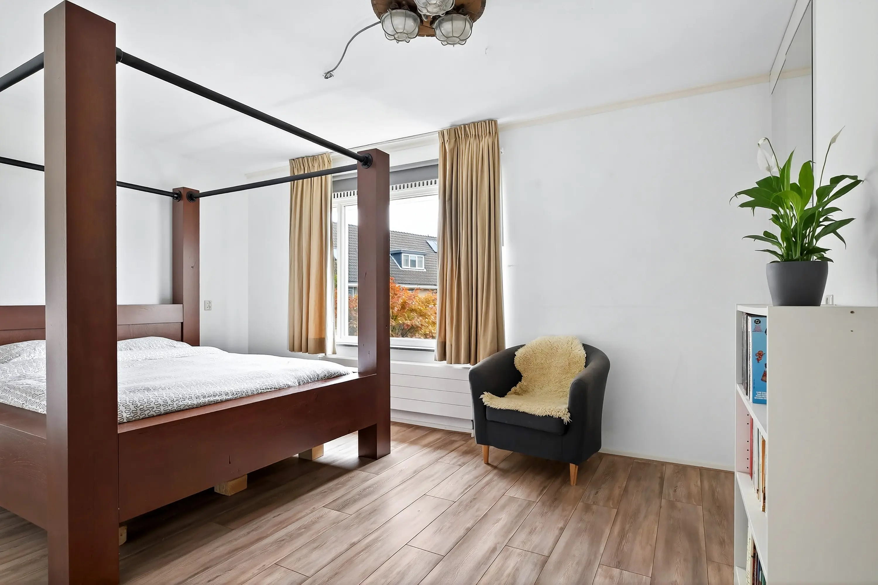 Slaapkamer 1 (ca. 16 m²) gelegen aan de achterzijde van de woning en uitgevoerd met een vast inbouwkast