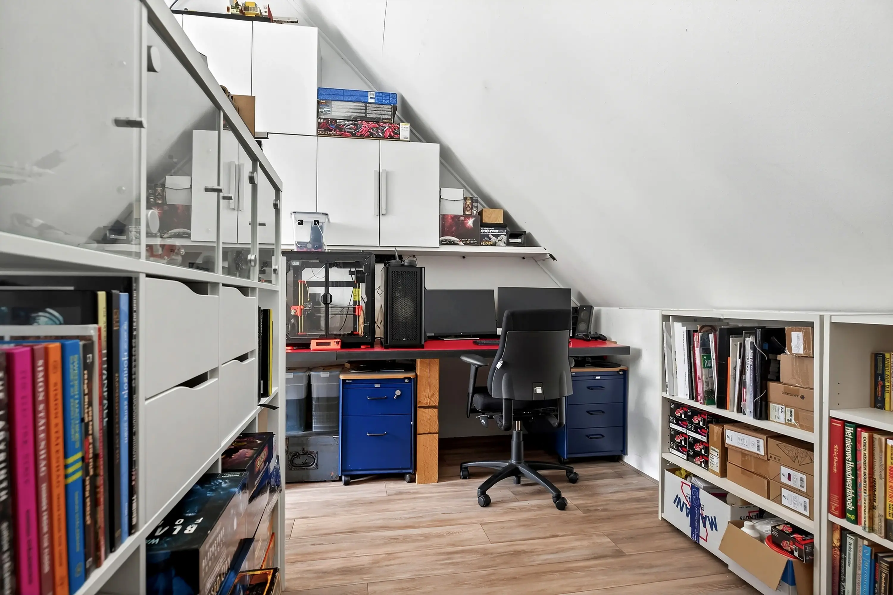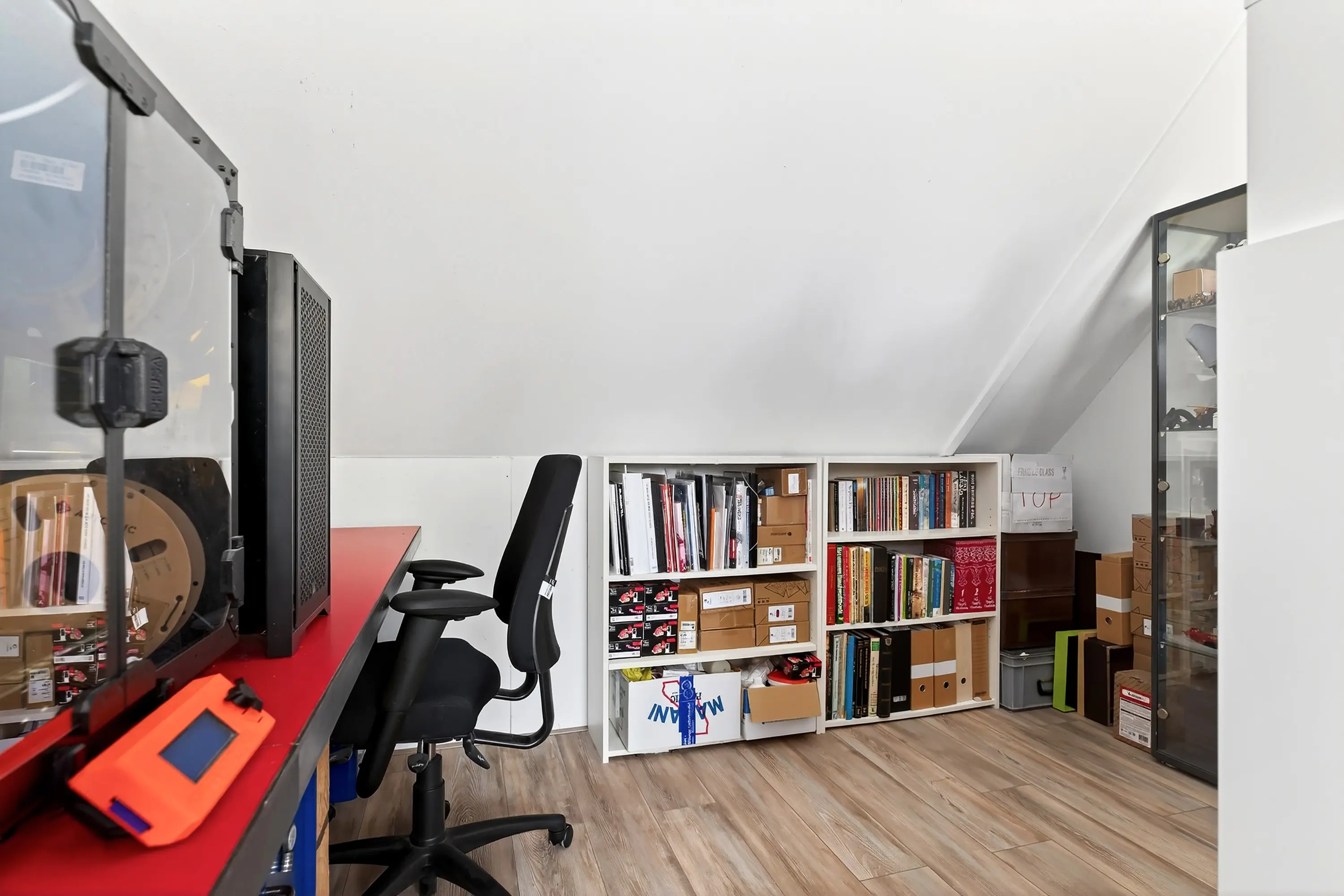 Via een vaste trap bereik je de ruime open zolderverdieping (ca. 24 m²) met dakkapel aan de voorzijde. Deze ruimte is multifunctioneel in te delen: denk aan een extra slaapkamer, werkkamer of zelfs een tweede badkamer.