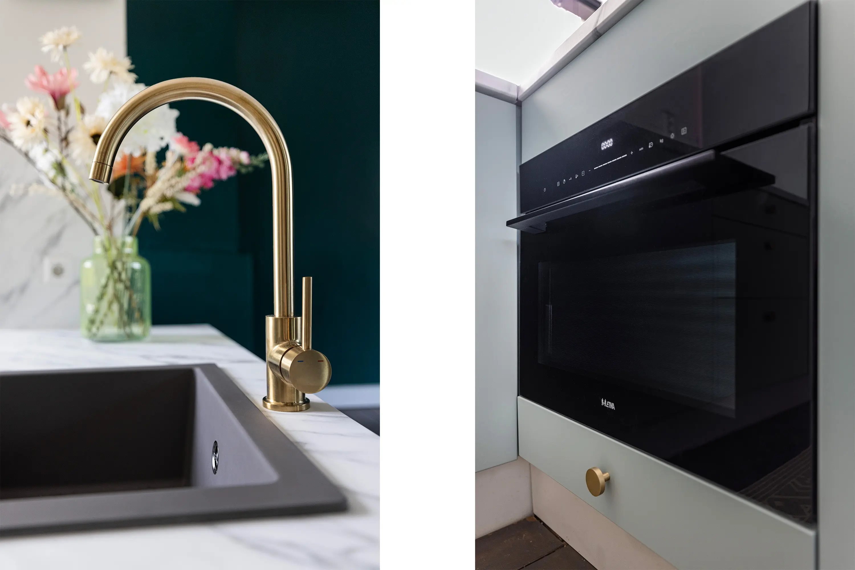 De moderne keuken heeft onlangs een renovatie gehad en sluit perfect aan bij het karakter van de woning.