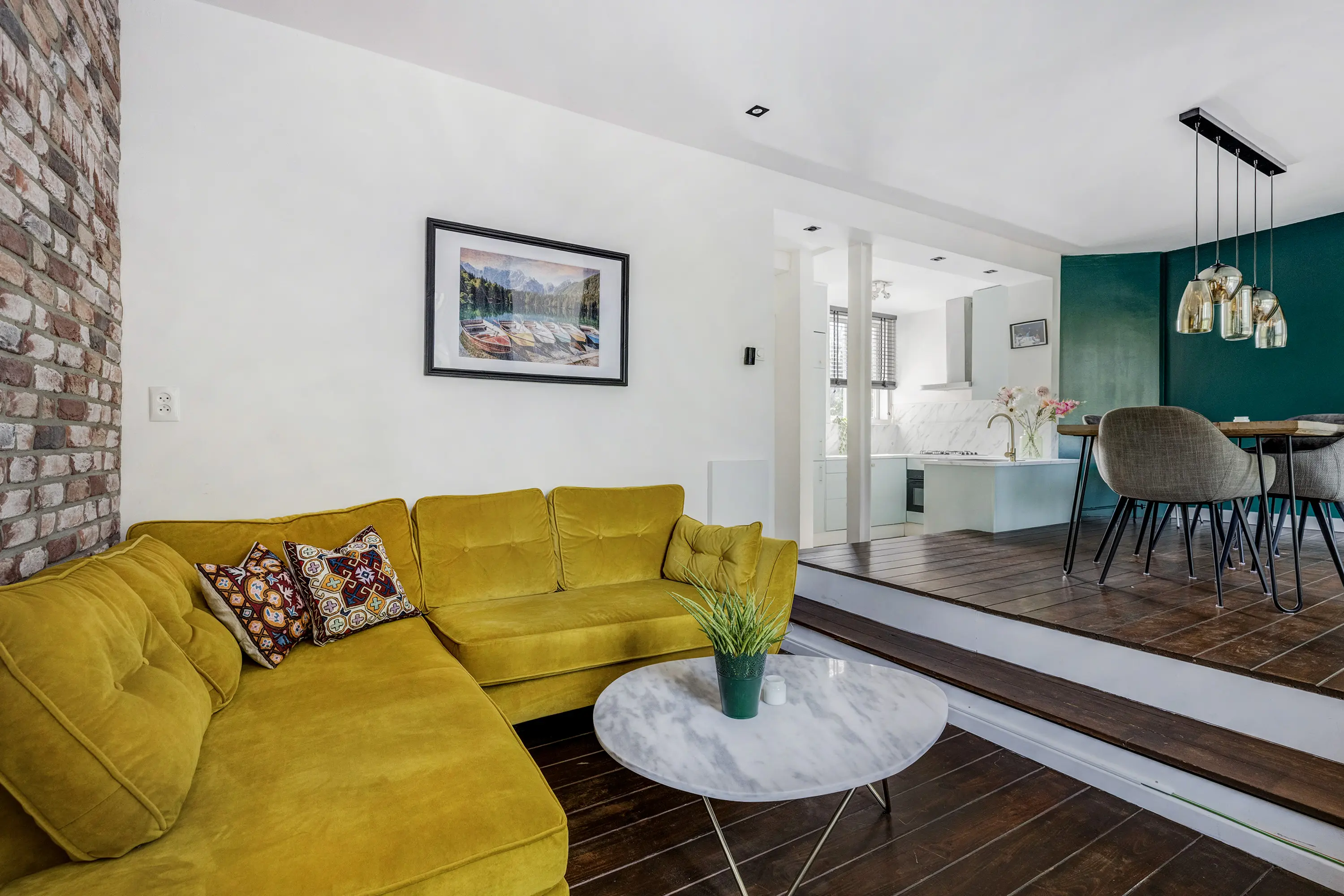 De pas gerenoveerde hippe keuken is voorzien van een nieuwe oven, nieuw keukenblad, nieuwe wastafel en kraan. Bijna de gehele verdieping is voorzien van originele houten vloeren. En laten we al het glas in lood in de ramen niet vergeten. De bakstenen muur tussen de woonkamer en slaapkamer maakt het geheel helemaal af!