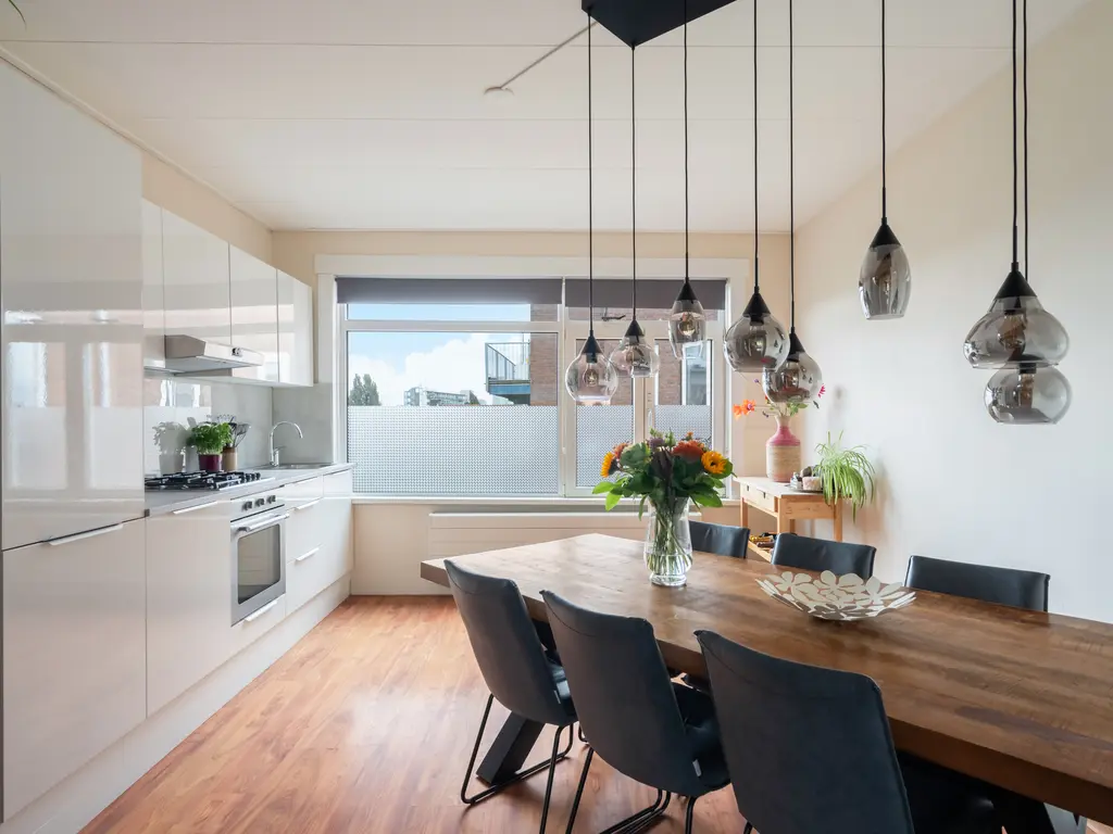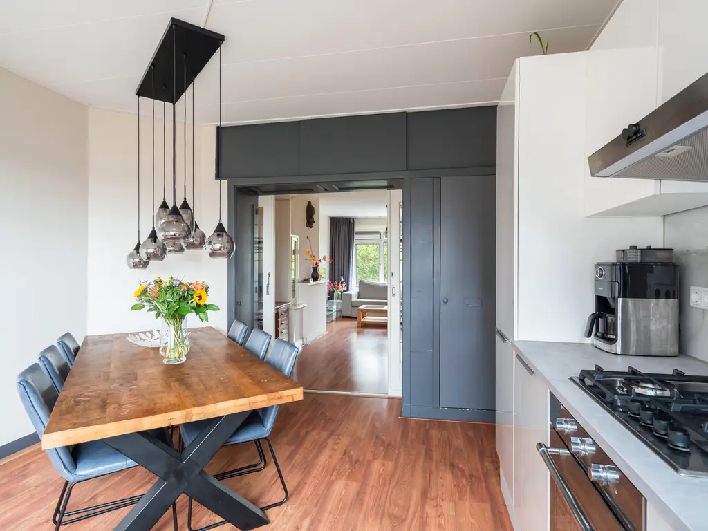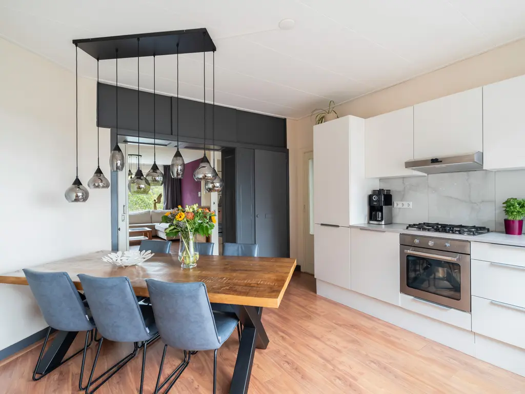 - Ruime eetkamer met woonkeuken waar je heerlijk kunt tafelen met vrienden of familie, of lekker rustig alleen met een goed glas wijn