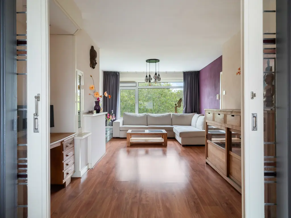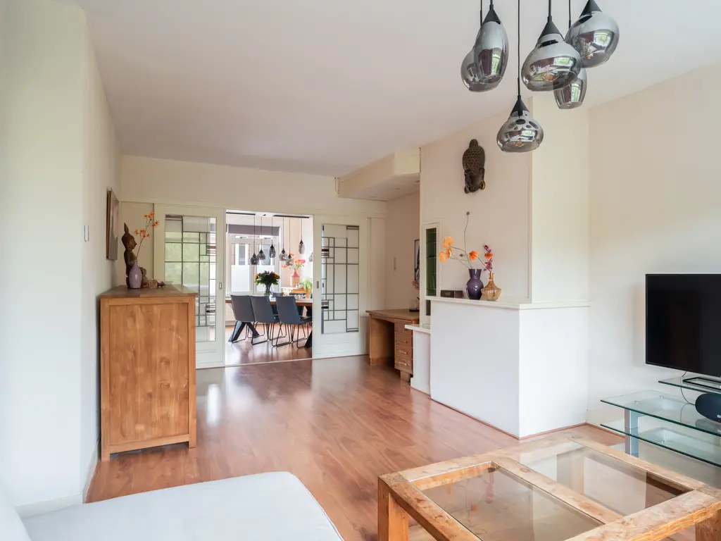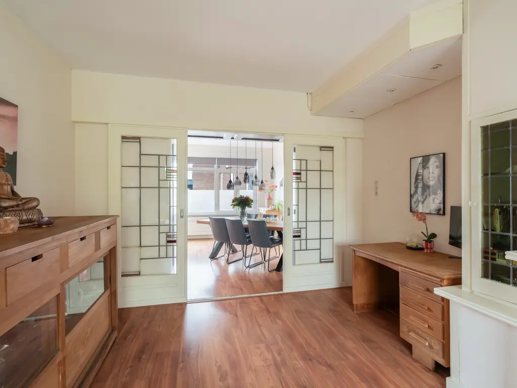 - Sfeervolle woonkamer en-suite met originele schuifdeuren, perfecte plek voor een gezellige zithoek en eventueel een werkplek