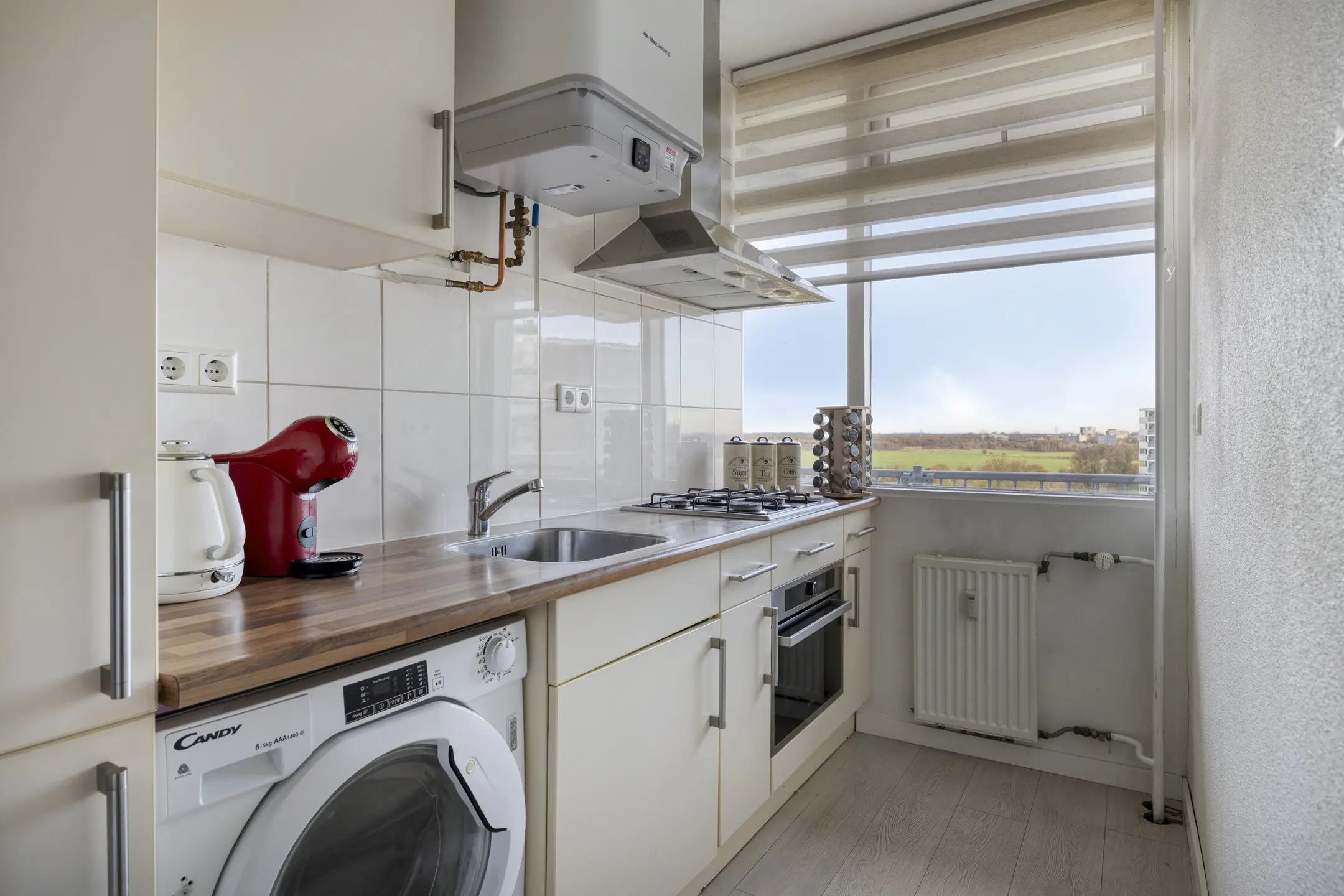 Welkom op de10e verdieping, waar het uitzicht elke dag verbluffend is. Via de centrale entree met lift bereikt je dit keurige appartement.