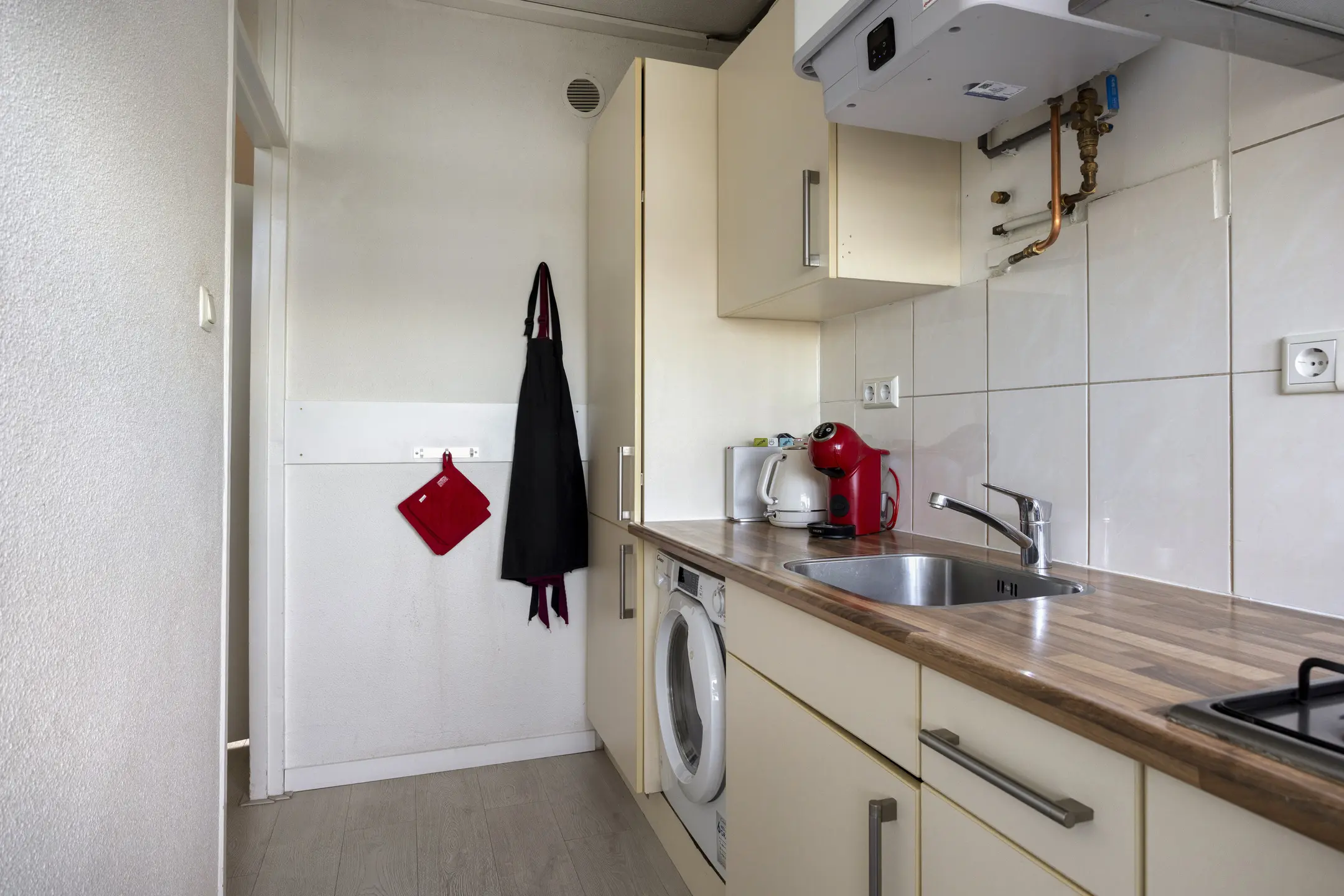De keuken is slim en modern ingericht en voorzien van diverse apparatuur en aansluiting voor de wasmachine.