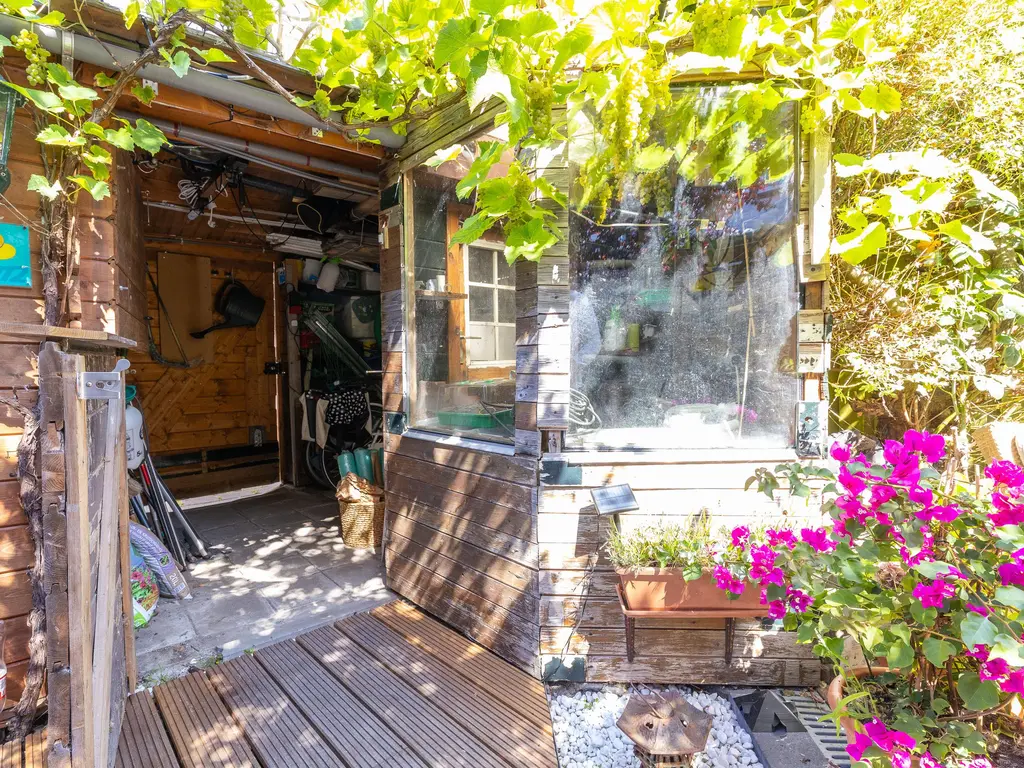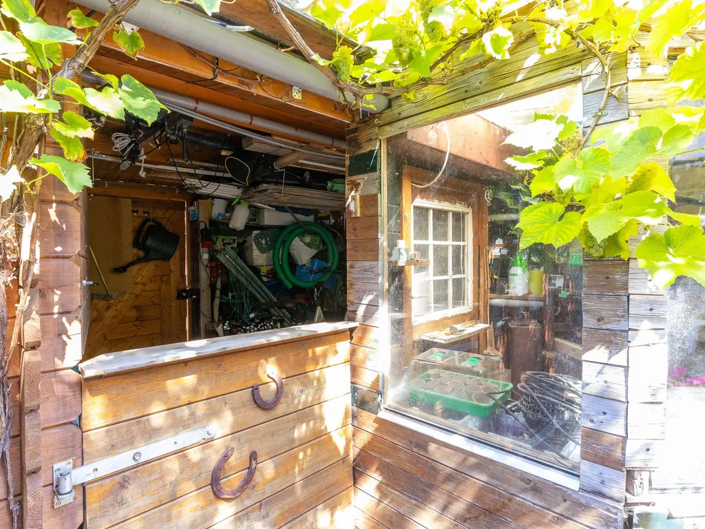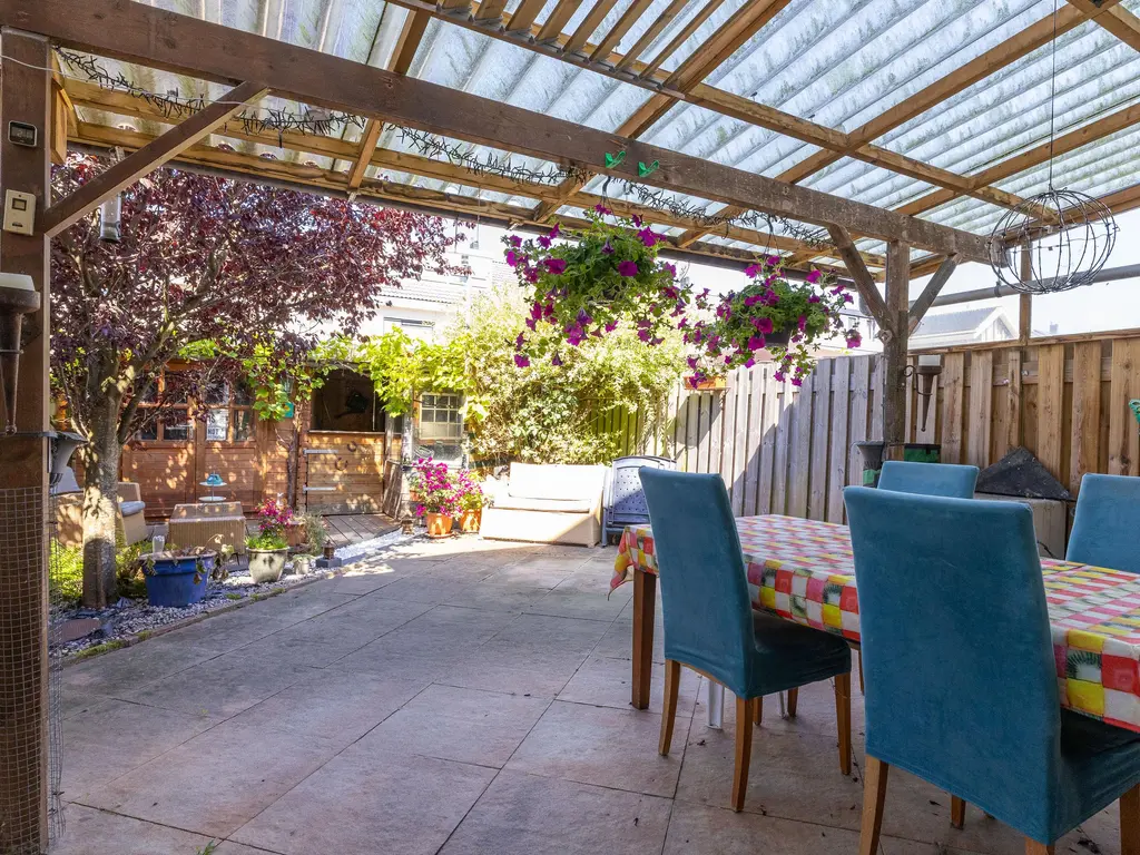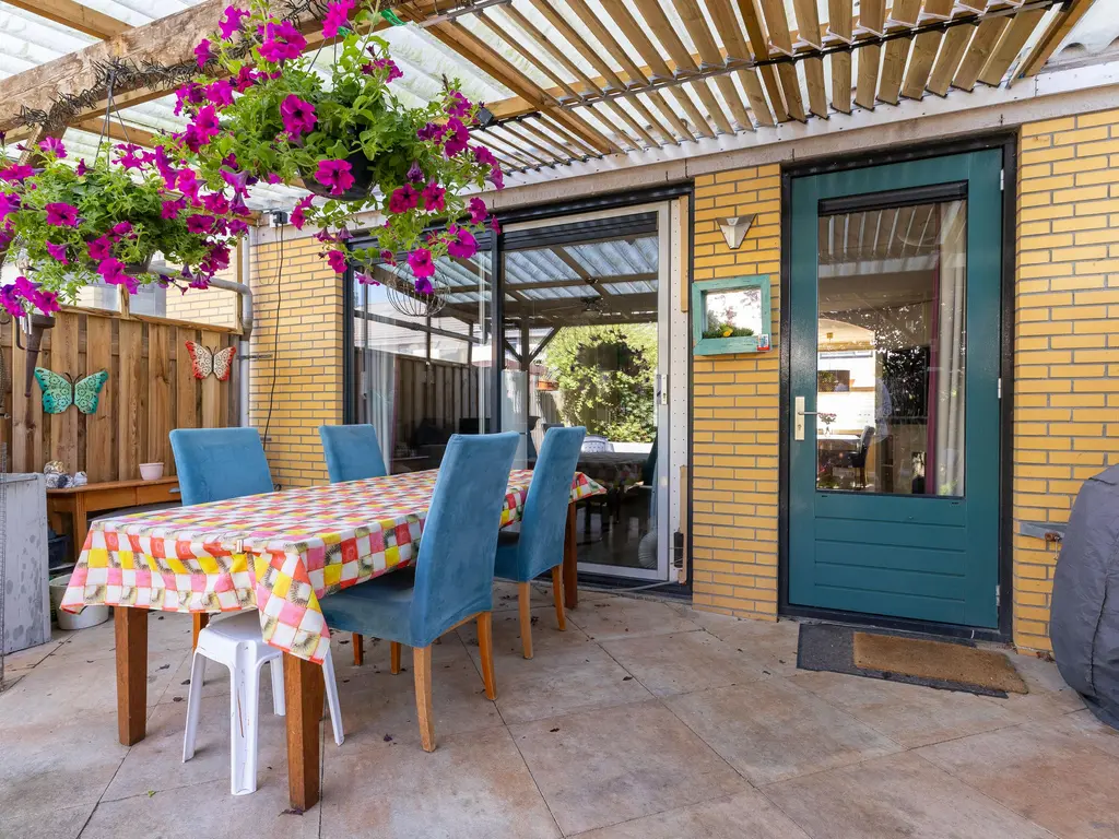De voortuin is strak betegeld en de achtertuin biedt alles voor buiten genieten. De overkapping aan de woning maakt het mogelijk om beschut buiten te zitten. Achterin vindt u een houten berging en een tweede berging met toegang tot de achtergelegen steeg, ideaal voor fietsen, scooters of tuinspullen.