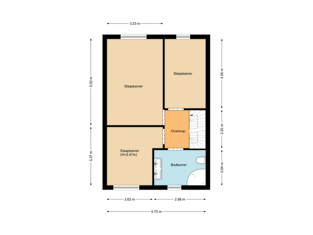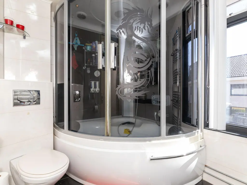 De overloop geeft toegang tot drie ruime slaapkamers, voorzien van elektrische rolluiken. Twee kamers liggen aan de achterzijde en één aan de voorzijde. De badkamer (2015) is voorzien van een whirlpool ligbad/douchecabine, dubbele wastafel, tweede toilet en een wandradiator. Compleet en comfortabel.