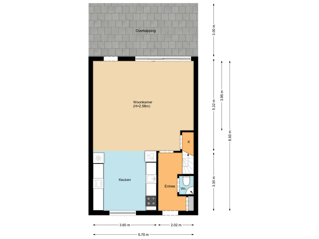 U komt binnen middels de voortuin in de hal met meterkast, toilet en trapopgang naar boven. Vanuit hier bereikt u de ruime woonkamer met vloerverwarming over de gehele verdieping. De eyecatcher is het op maat gemaakte multimediameubel met geïntegreerde elektrische haard en televisie, een sfeervolle plek waar luxe en gezelligheid samenkomen. Grote ramen en een aluminium schuifpui zorgen voor volop daglicht en een directe verbinding met de achtertuin.