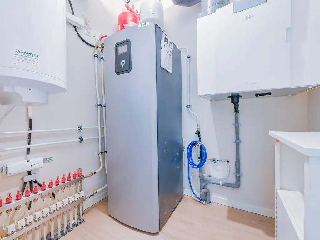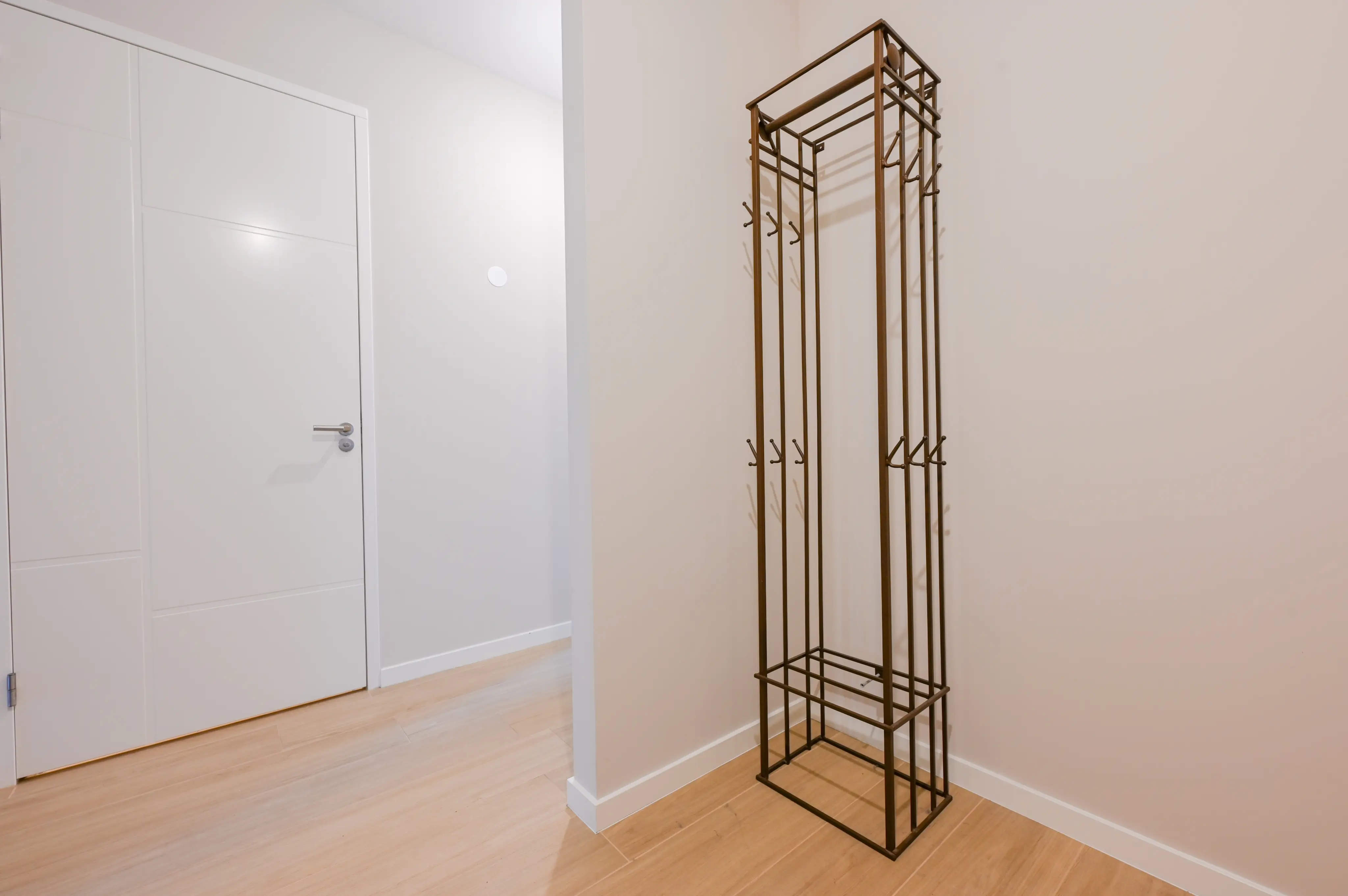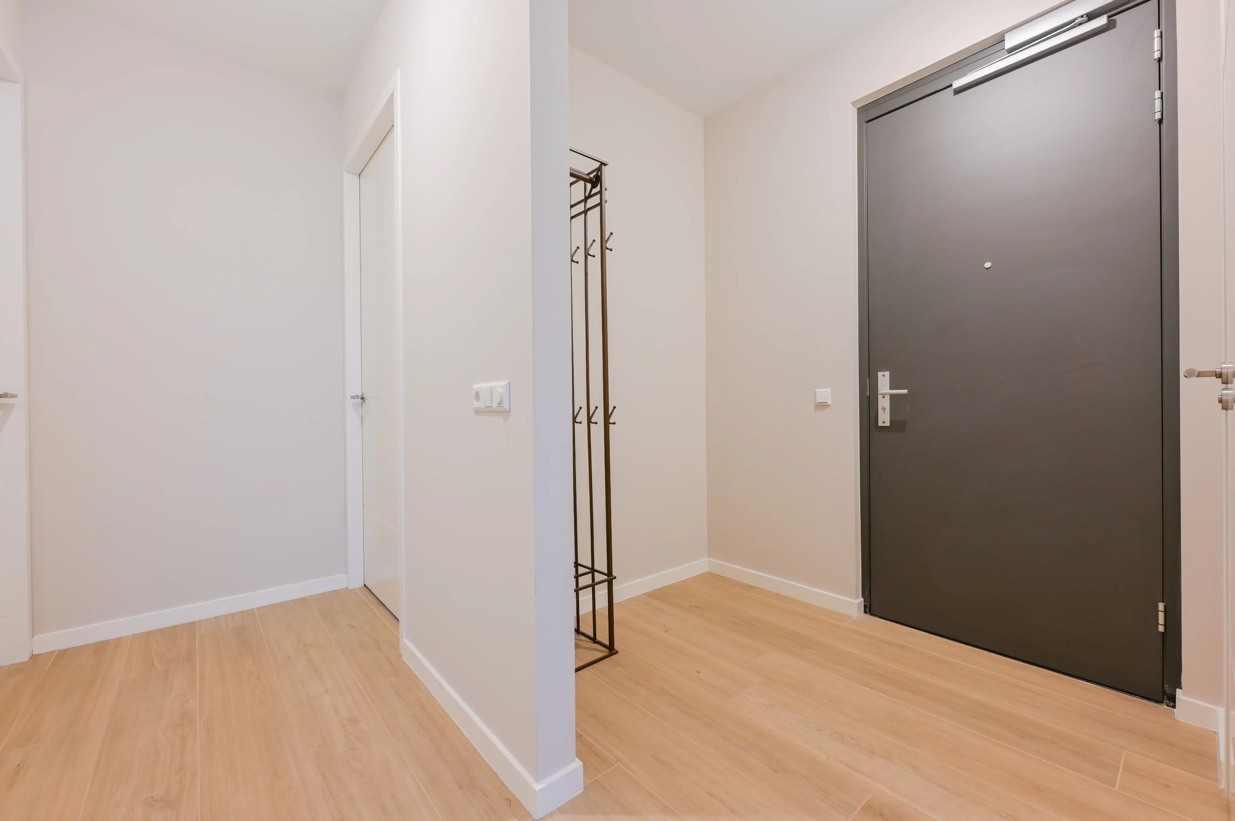 This apartment is finished to a high standard and move-in ready. The entire home features underfloor heating with elegant ceramic parquet flooring. All walls and ceilings have a sleek, smooth finish and the living room includes a modern electric fireplace.