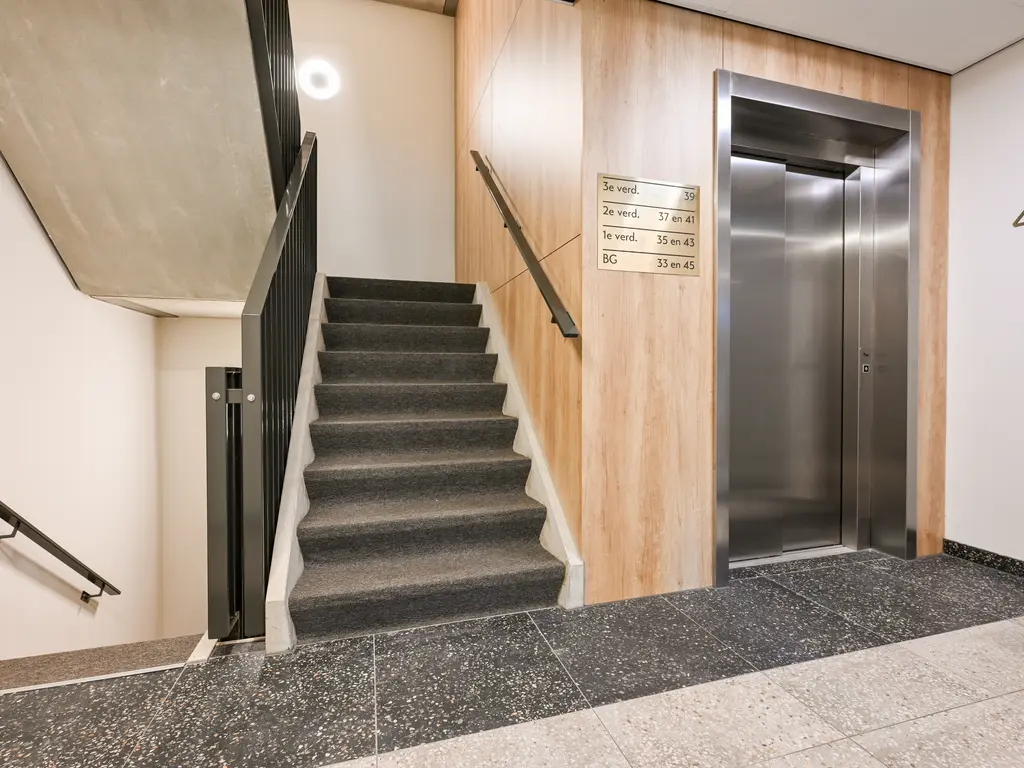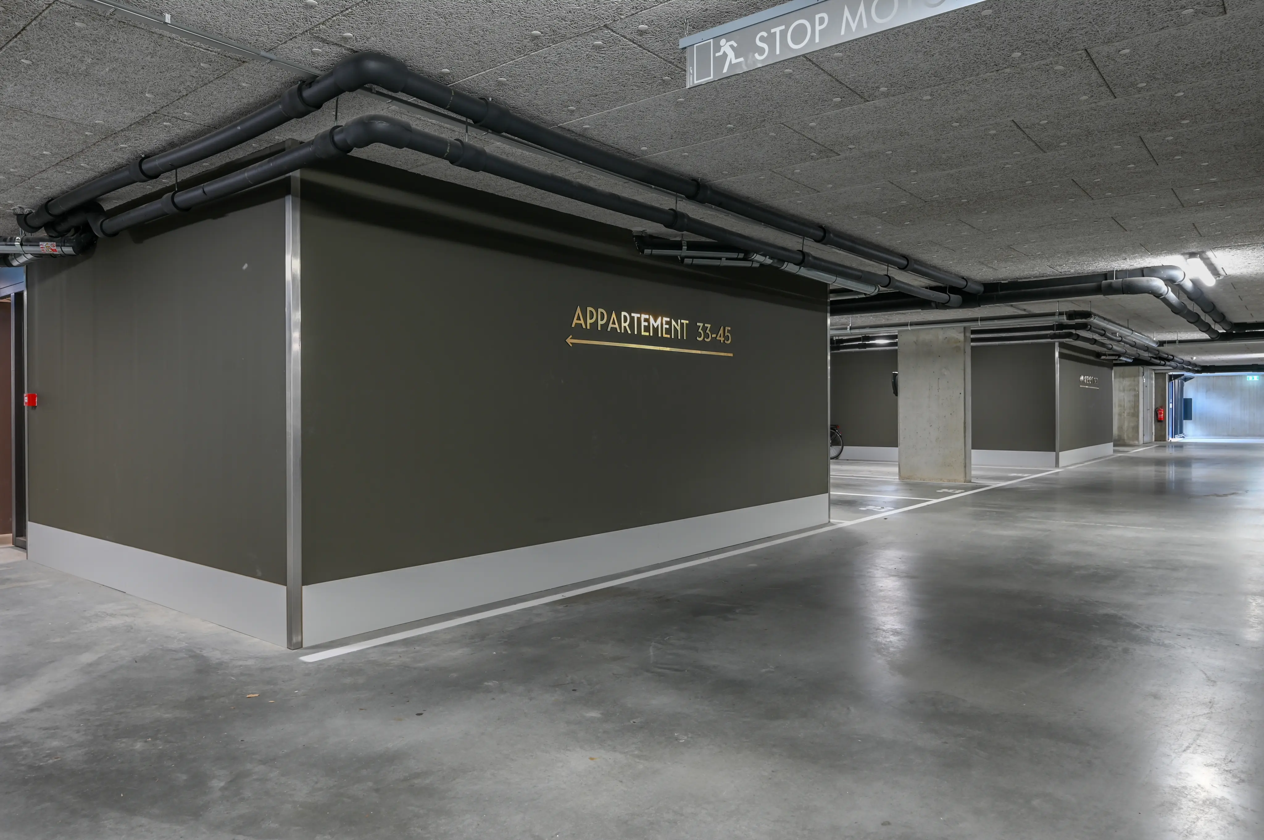 Het appartement beschikt over een parkeerplaats en een berging in de onderbouw, die tevens per lift bereikbaar zijn.