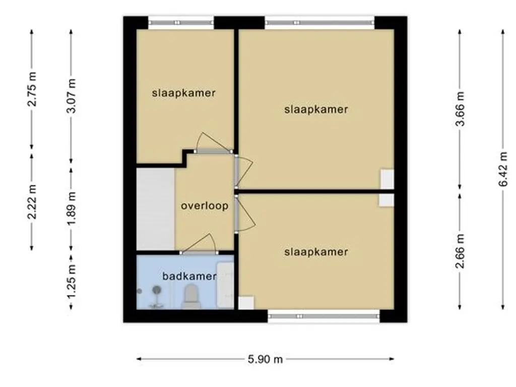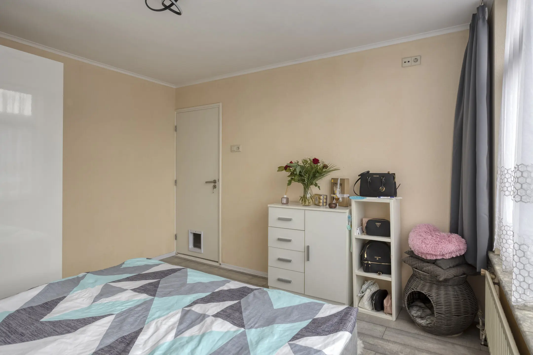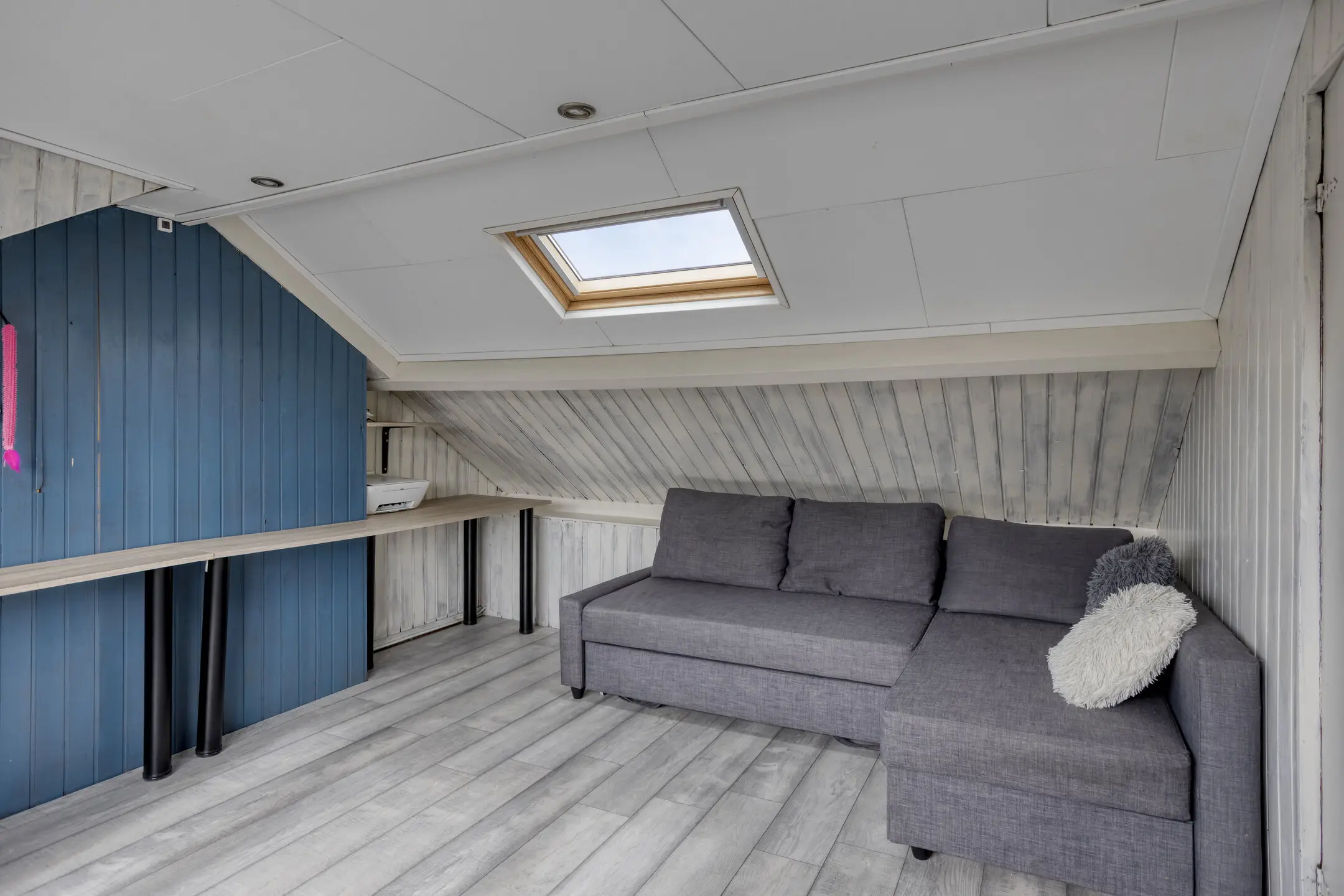 De tweede verdieping biedt een overloop met ketelopstelling en wasmachineaansluiting. De ruime slaapkamer met dakkapel over de volledige breedte zorgt voor veel lichtinval en een ruimtelijk gevoel. Perfect als tienerkamer, kantoor of hobbyruimte.