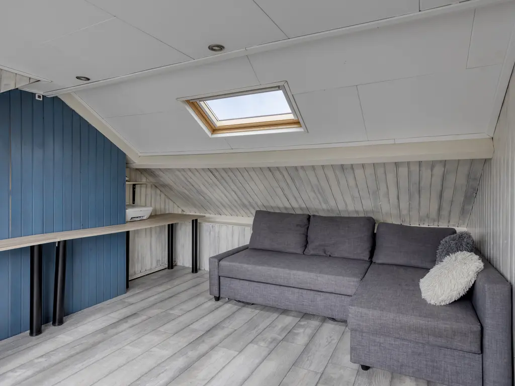 Bij binnenkomst voel je meteen de warmte van het huis. De woonkamer is ruim, voorzien van laminaatvloer, elektrische vloerverwarming en een sfeervolle houthaard. Grote raampartijen en de aluminium schuifpui naar de tuin zorgen voor veel daglicht en een prachtig uitzicht over het water.